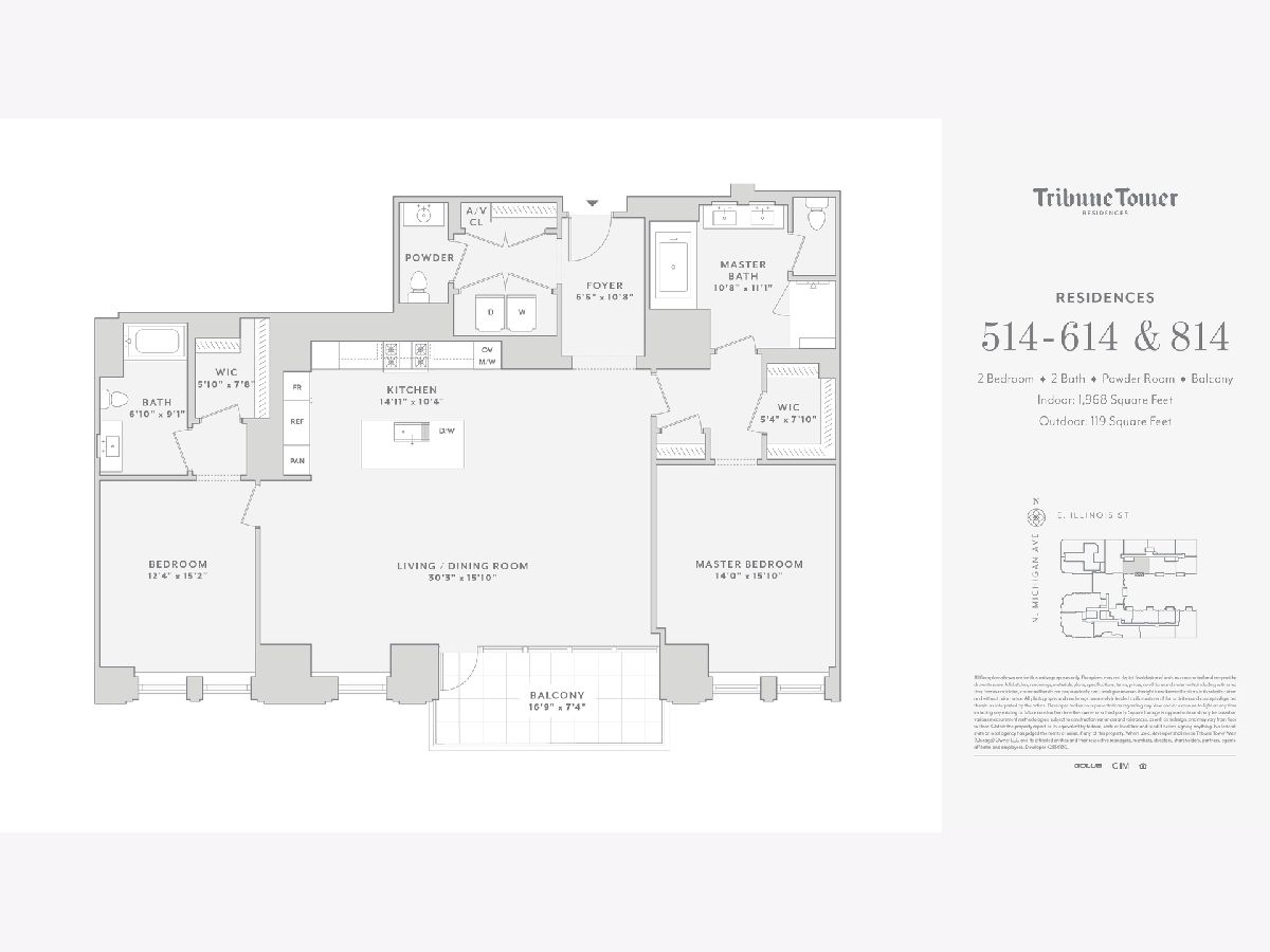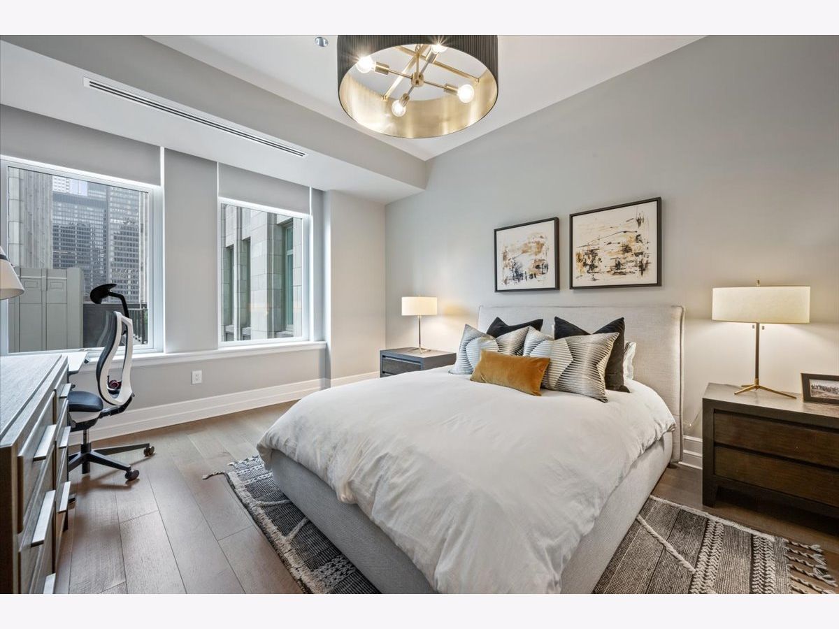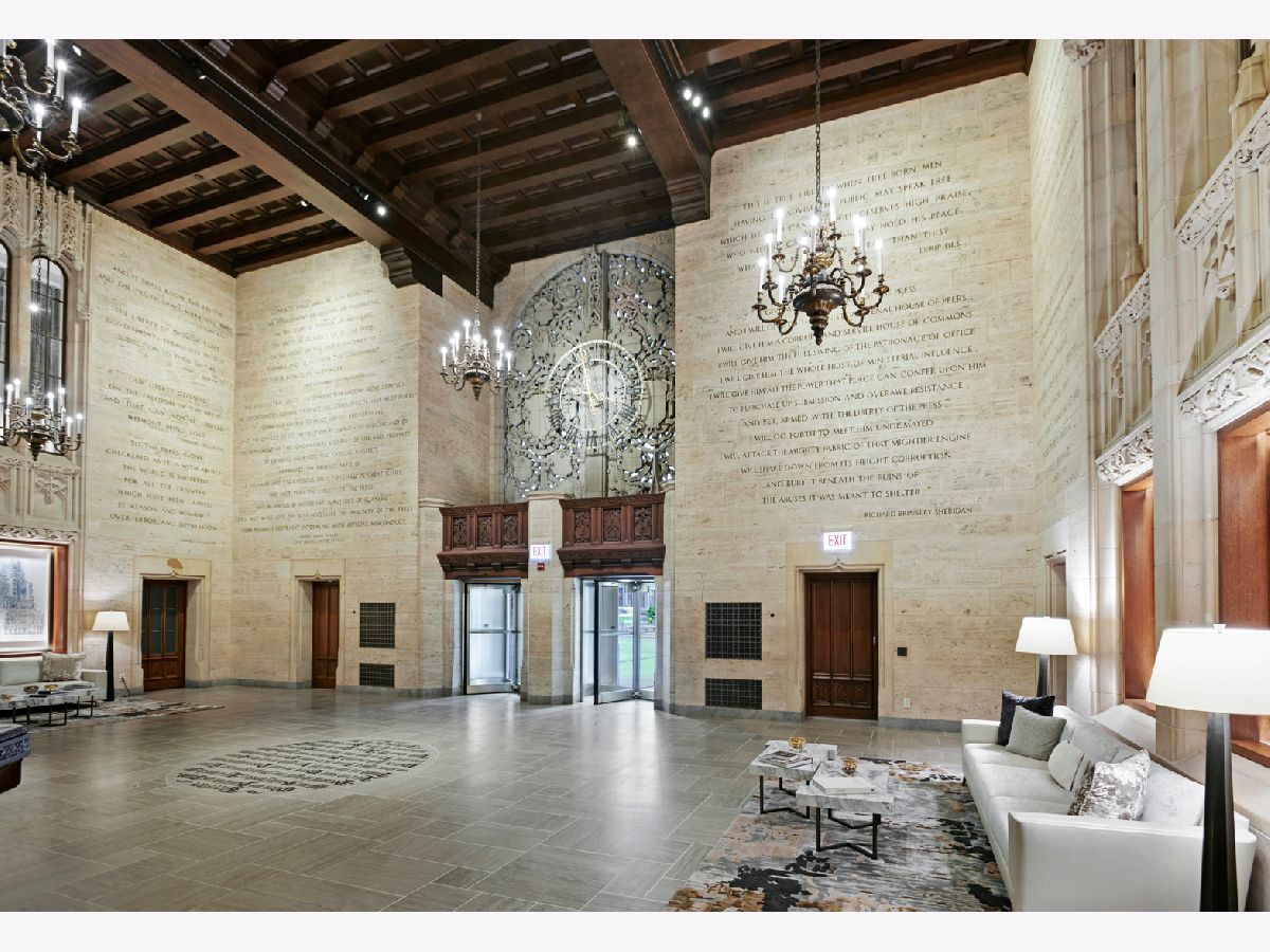 Tribune Tower Residences Unit 814 is a rare and highly desirable offering. This impressive 2,000 sq ft split 2-bedroom, 2.5 bath home features high ceilings and a thoughtfully designed layout that provides maximum privacy and comfort. With a beautiful southeast exposure, the residence overlooks the stunning courtyard and captures the architectural brilliance where the magnificently restored Tribune Tower meets Chicago's timeless Gothic elegance. The custom Bovelli kitchen cabinetry is complemented by a substantial island ideal for entertaining, along with SubZero, Wolf, and Miele appliances. Hand finished wide plank white oak flooring flows throughout, while the spa inspired marble primary bath creates a serene retreat. With only 162 residences and 56 distinct floor plans, the building offers a truly unique living experience. Residents enjoy over 55,000 sq ft of extraordinary amenities seamlessly extending your living space, including the 25th floor Crown Terrace with breathtaking panoramic views framed by dramatic flying buttresses, a 7th floor indoor pool and sundeck with grilling and lounge areas overlooking the iconic Tribune sign, a 3rd floor private park, beautifully designed work and social spaces with game rooms featuring darts and billiards, a 2nd floor state of the art fitness center, sports lounge with simulator, expansive putting green, spa treatment rooms with steam and sauna, private dog park, and 24/7 professional staff and concierge services. One parking space included.
