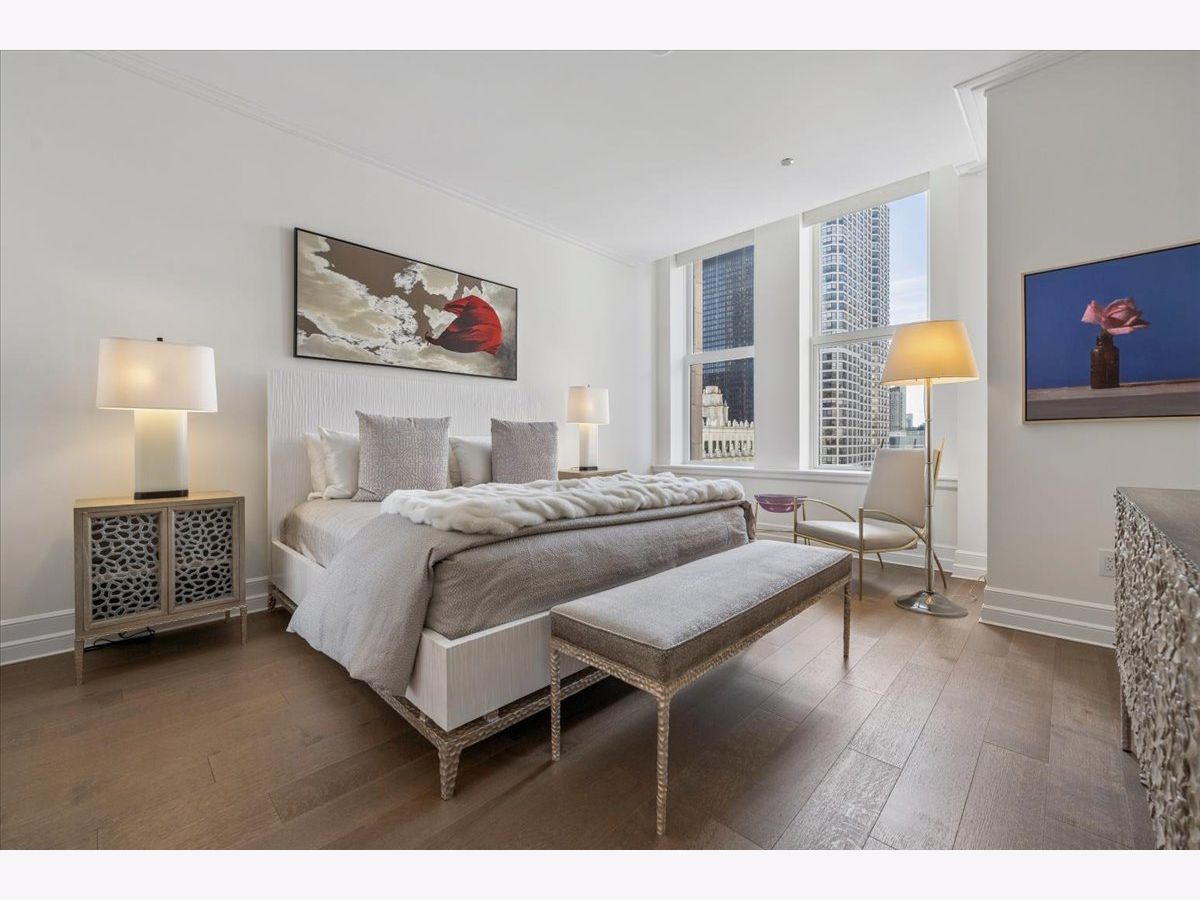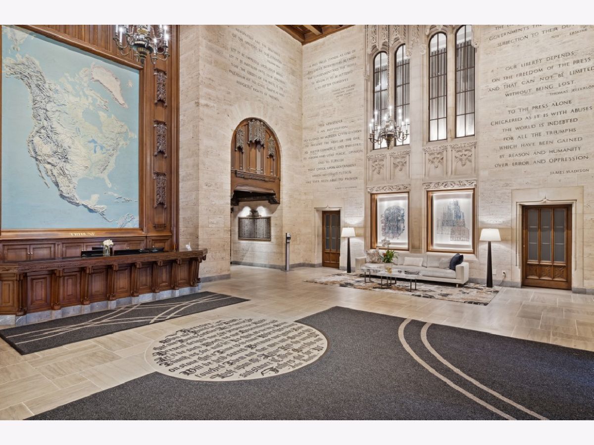 With light pouring in from oversized windows offering mesmerizing views in all directions, this expansive barely-lived-in residence perched on a high floor in the iconic Tribune Tower will take your breath away with its timeless finishes, intricate craftsmanship, and a floorplan ideal for both day-to-day living and lavish entertaining - and, best of all, the price includes prime 2-car garage parking. A formal entry hall leads to an open-concept enormous living and dining room, with enough flexibility to accommodate a myriad of groupings. An elegant island chef's kitchen is outfitted with custom cabinetry and commercial-grade Wolf/Sub-Zero/Miele appliances. Tucked away from the living space, the dreamy primary suite feels like a private sanctuary with abundant storage and a sumptuous spa bath. Two additional built-out guest suites offer additional privacy and flexibility, depending on your needs. Enjoy gleaming wide-plank white-oak flooring, motorized shades, and outfitted closets throughout...and one of life's rare simple pleasures: a fully equipped separate laundry room. This premier full-service building offers exceptional incomparable amenities spanning over 55,000 square feet: the 25th floor Crown Terrace w/panoramic views; an indoor lap pool and sundeck w/various lounging and grilling areas; a private park; billiards and gaming rooms; a golf simulator; and a fantastic fitness center w/ spa and treatment rooms. This offering presents the very best of Chicago in terms of space, location, design, lifestyle, and ease of living. It doesn't get better than this.