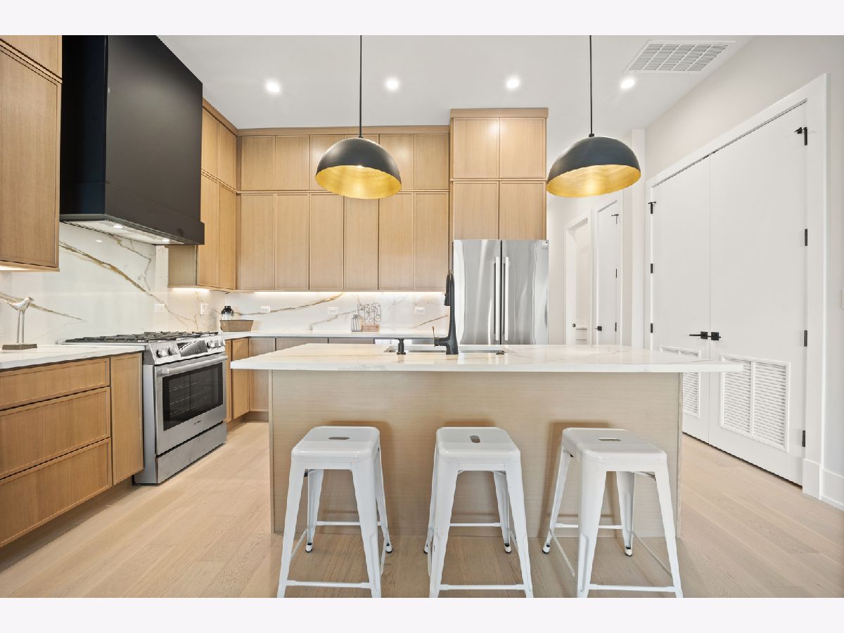 Located in Irving Park, this oversized 3-bed, 2-bath unit offers 2,000 sq. ft. of open-concept living space with 10.5 ft ceilings, 8 ft solid core doors, and hardwood floors. The spacious living room features a fireplace and sliding glass doors that lead to a large balcony with a gas line. 1700 sq foot PRIVATE roof top deck with pavers, water and natural gas line. Andersen doors and windows throughout. The chef's kitchen boasts custom cabinetry, a vented hood, quartz countertops, Bosch stainless steel appliances, and a generous island. The primary en suite includes a walk-in shower, double vanities, and plenty of closet space. 1 garage parking spot included. Ideally situated just steps from the Brown Line, Chicago Riverwalk, and Horner Park's 57 acres of recreational space. VARIETY OF FLOOR PLANS. Delivery July / August 2026.