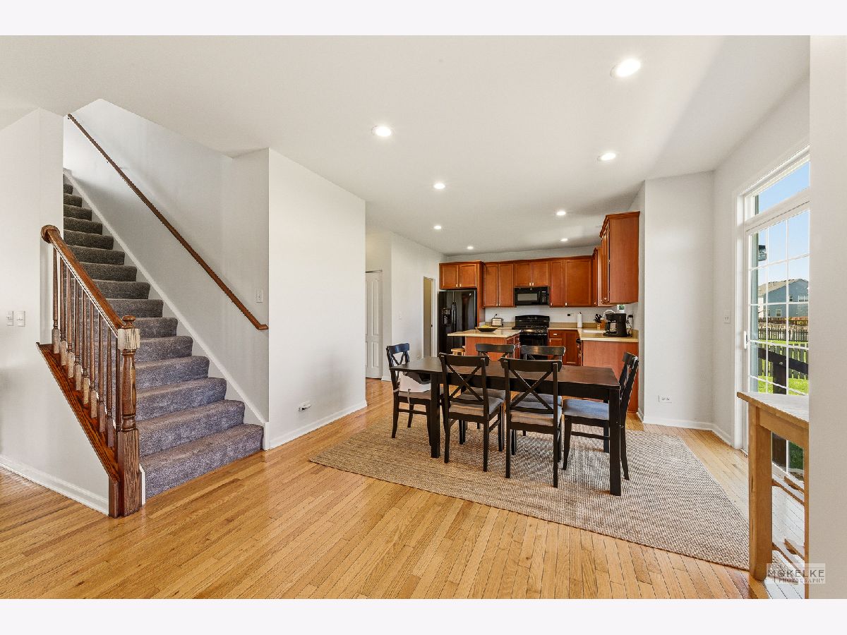 Welcome to this stylish, move-in ready 4 bedroom, 2.5 bath home located in the highly sought after Hunt Club community of Oswego! This one owner, custom built home offers nearly 2,700 sq. ft of thoughtfully designed living space and features numerous upgrades that blend modern comfort with everyday functionality. The spacious open living and dining room combination creates a versatile space perfect for entertaining or relaxing, while the inviting first floor family room, with built-in speakers is ideal for a cozy movie night in and open to the adjoining breakfast bay and kitchen. The kitchen is both stylish and practical, featuring upgraded 42-inch cabinets with crown molding and roll out trays, recessed lighting, a island with seating, solid surface countertops and a 4' x 7' walk-in pantry. The charming breakfast bay, with recessed lighting, expands your dining space and the sliding glass door fills the room with natural light. Don't miss the nearby powder room with upgraded Kohler fixtures and the large, well designed closet space just off the garage designed by Closets by Design. On the way upstairs take note of the lovely newer carpeting underfoot and of the beautiful upgraded oak railings that line the 2nd floor loft. Once upstairs, you'll find four generous bedrooms, all with newer carpeting including a spacious, freshly painted primary suite with a large private bath featuring a double-bowl vanity, step-in shower, tile flooring, and a truly massive 12' x 12' walk-in closet! The second floor loft, also with newer carpeting, adds comfortable flexible living space ideal for a playroom, media area, or a home office. Your daily laundry chores will be a breeze in the convenient, well lighted 2nd floor laundry room, complete with washer & dryer and base cabinetry for storage with pull out shelving. There is even a large linen closet just outside the laundry room for all those clean linens! Each additional bedroom offers ample closet space with custom closet organizers, ensuring everyone has room to spread out and store their stuff! One bedroom was just freshly painted, and another bedroom even features built-in speakers! The 2nd full bath, also with upgraded fixtures and tile flooring, is located just off the loft and only steps from each of the bedrooms. Once you head back downstairs you will really notice the spaciousness of breakfast bay upgrade that offers significantly more space for a large table and chairs, and the sliding glass door that leads outdoors. Step outside onto the 10 x 12 concrete patio and enjoy the spring weather in the fully fenced quarter acre yard, perfect for entertaining, pets, or playtime! This home features 9' first floor ceilings, beautiful hardwood flooring, and upgraded white doors and trim. Rounding out the home is a finished two-car garage that's insulated for energy efficiency, drywalled, and painted. The garage has an insulated garage door and a key pad entry for convenience. There is even a ring doorbell that will stay! This home truly checks all the boxes with space, style, and location, so come see it for yourself! Popular Hunt Club is a pool and clubhouse community with walking paths and playgrounds, and an on site neighborhood Elementary School! Hunt Club is conveniently located near shopping and dining along either the Orchard Rd corridor or the Rt 34 and close to the charming downtown area of Oswego and the Fox River! Easy access to I-88 off Orchard Rd is a plus!!