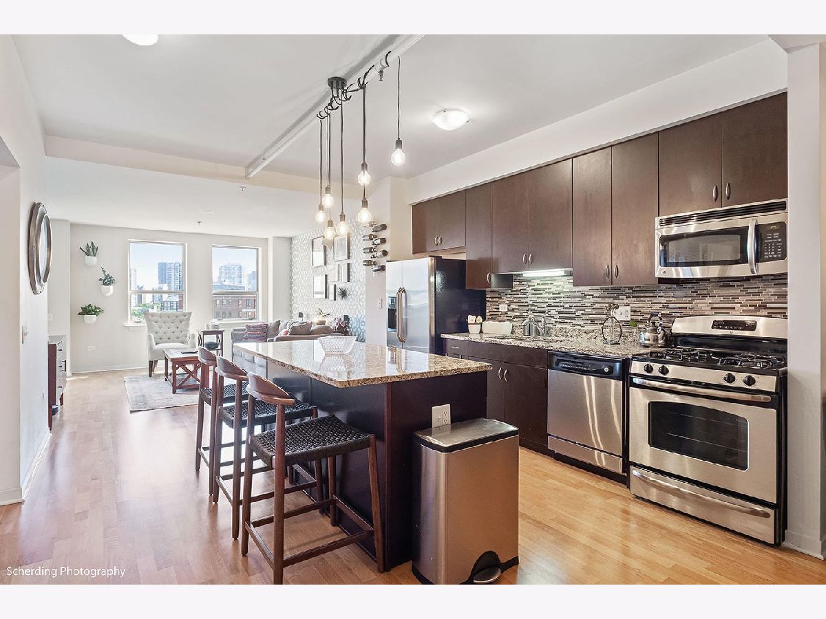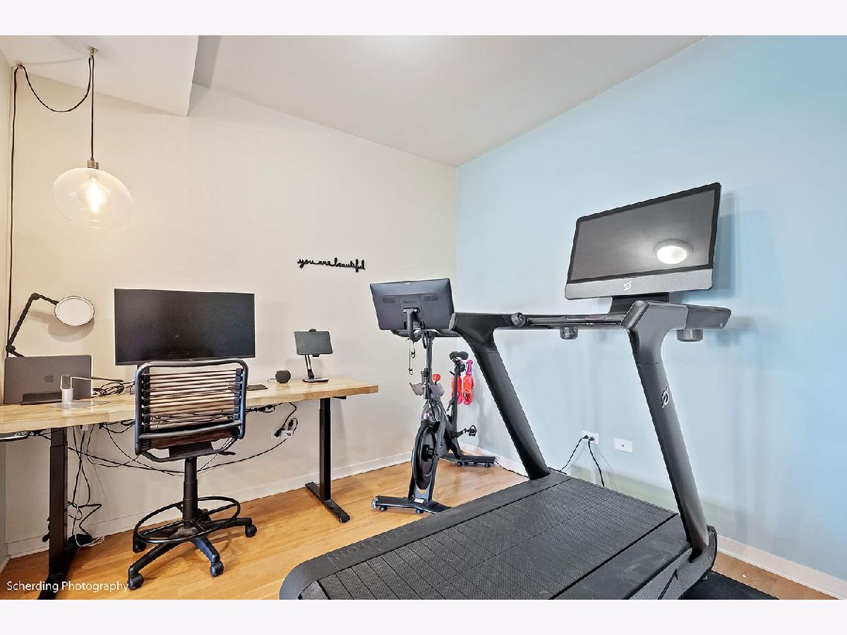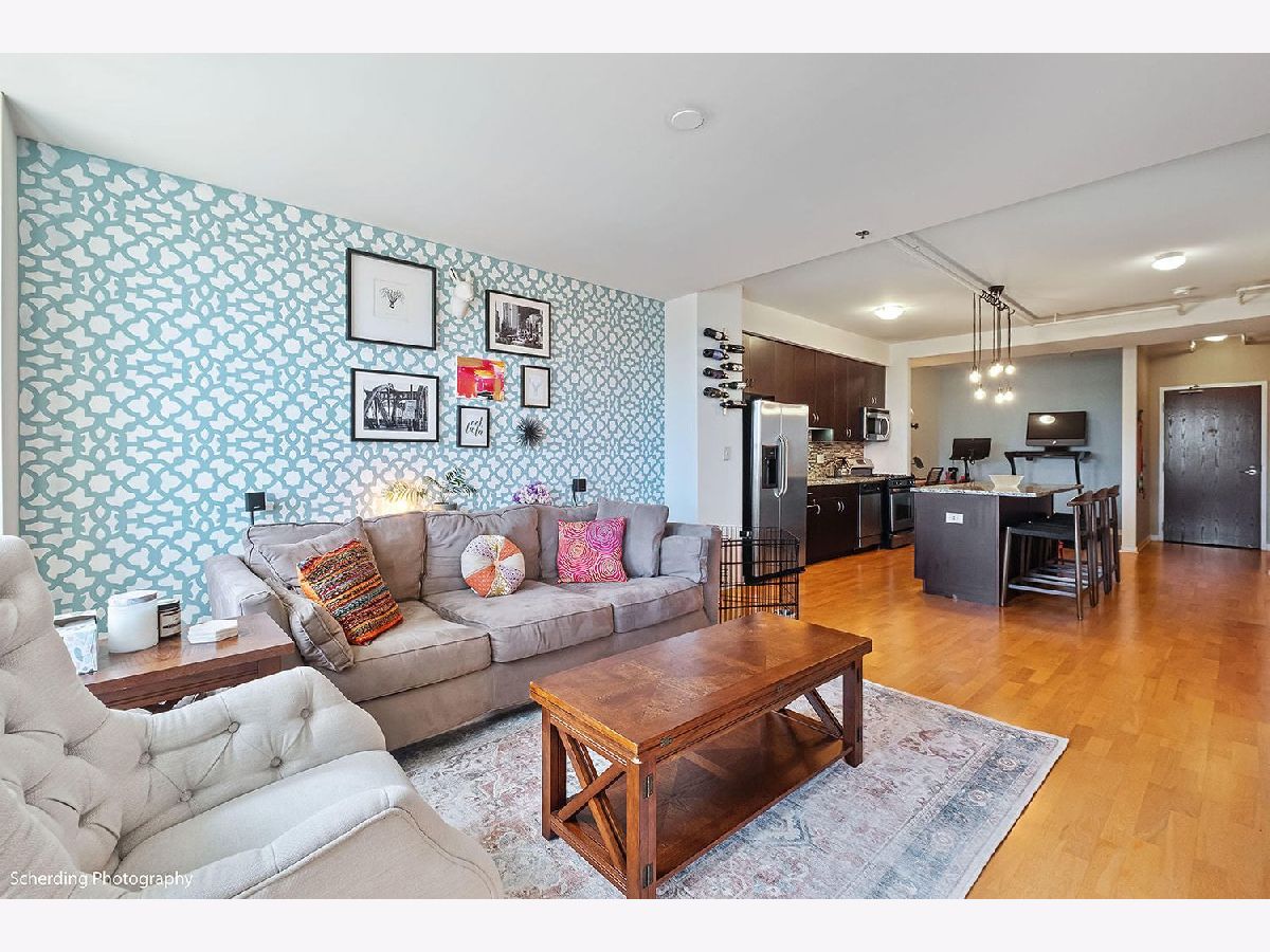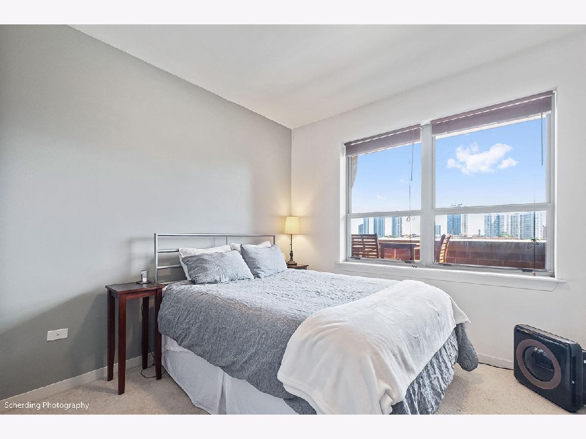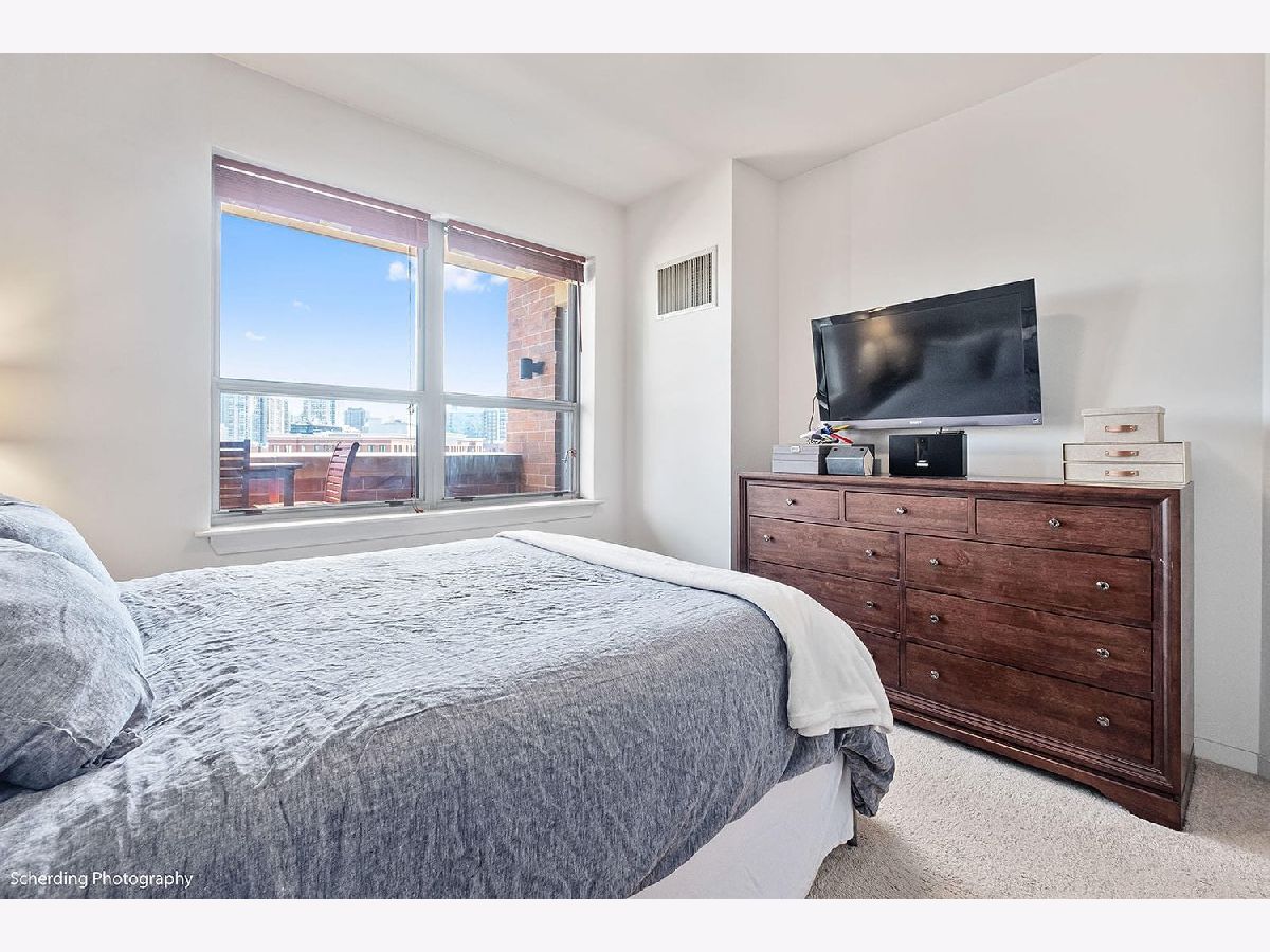 In Old Town! This loft offers impressive views to the East, North, and West, including tree tops, historic buildings, and lakefront high-rises. It's conveniently close to Wells Street, within minutes of the Gold Coast, Streeterville, Lincoln Park, and Wicker Park. The building is relatively new, featuring high concrete ceilings for the loft effect, with fully enclosed walls for privacy and noise control, including an exterior window in the bedroom. The unit has hardwood floors, central air conditioning and in-unit laundry. The floor plan is open, with a large kitchen island that's great for day-to-day living and entertaining. A separate den can be used as an office, dining room, guest room, or other flexible space, according to your needs. The private deck is large and set back for more privacy and less exposure to noise and wind, and you're allowed to have a grill. The price includes one garage parking space. Surrounded by amenities, including grocery stores like Jewel, Aldi's, Target, and the new Dom's Market, coffee shops like Starbucks, Philz, La Colombe, Dollop, and many restaurants, pubs, and shops. It's next to Sewer Park and near the lakefront beaches, bike and running trails. Public transport is readily accessible with the Red Line (Clark/Division), Brown Line (Sedgwick & Chicago Ave), multiple bus lines, and Divvy bike stations nearby. A solid choice in the heart of the city. Solid building with strong reserves, investor friendly building with no rental cap or rental restrictions.