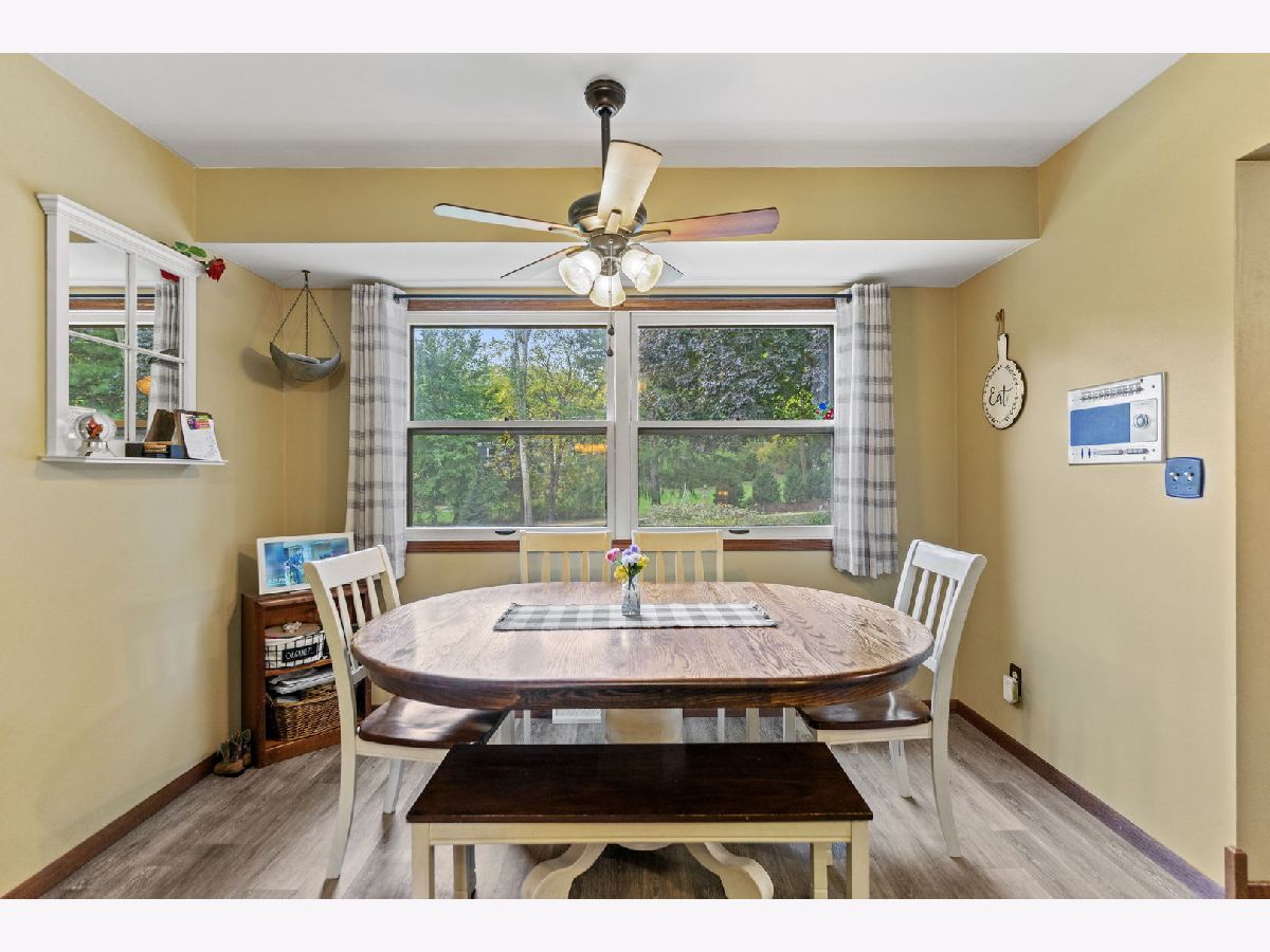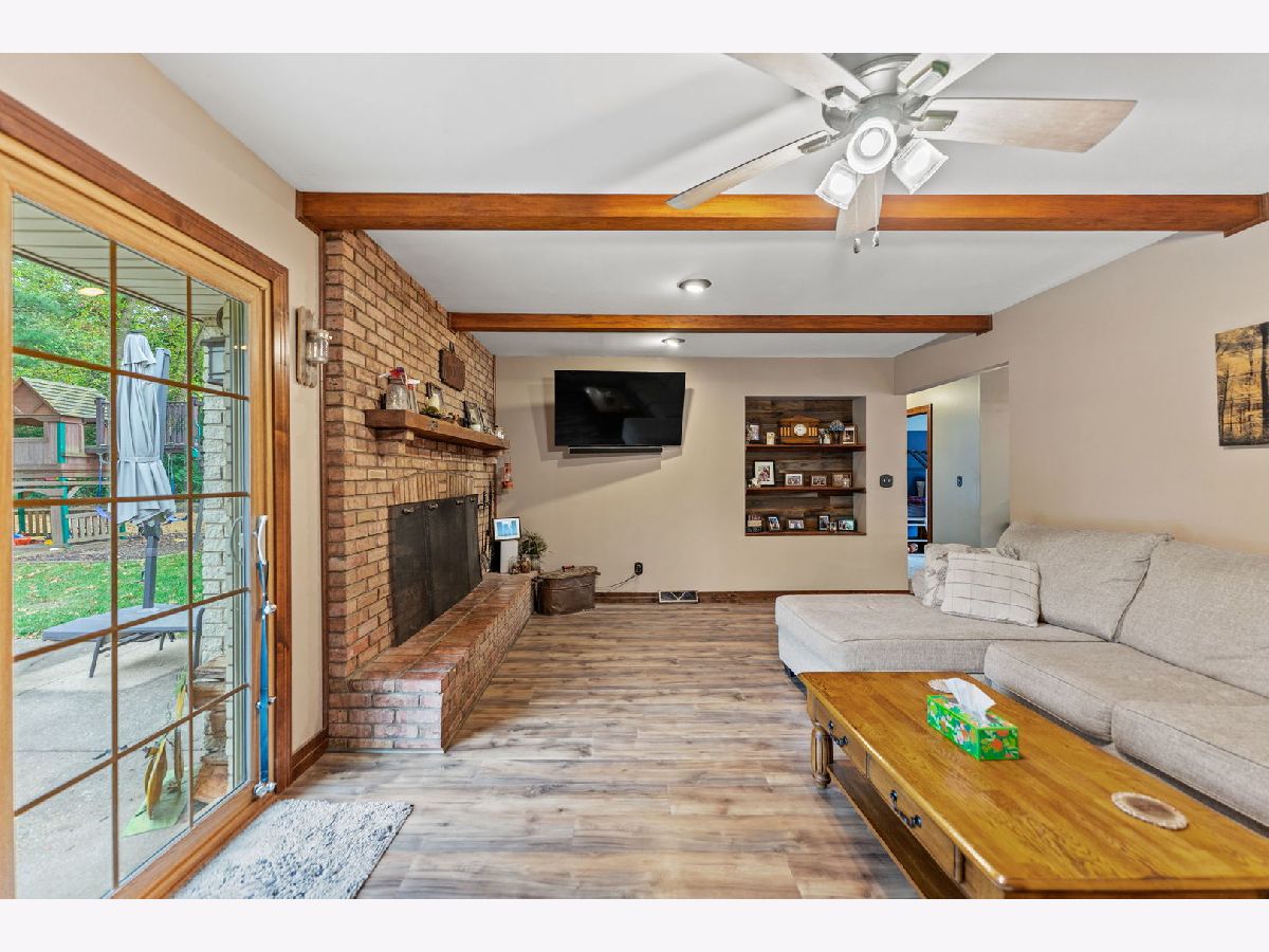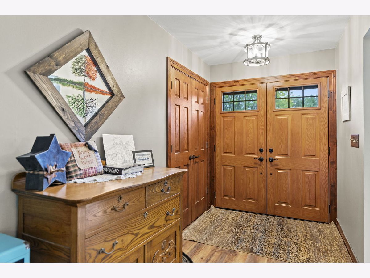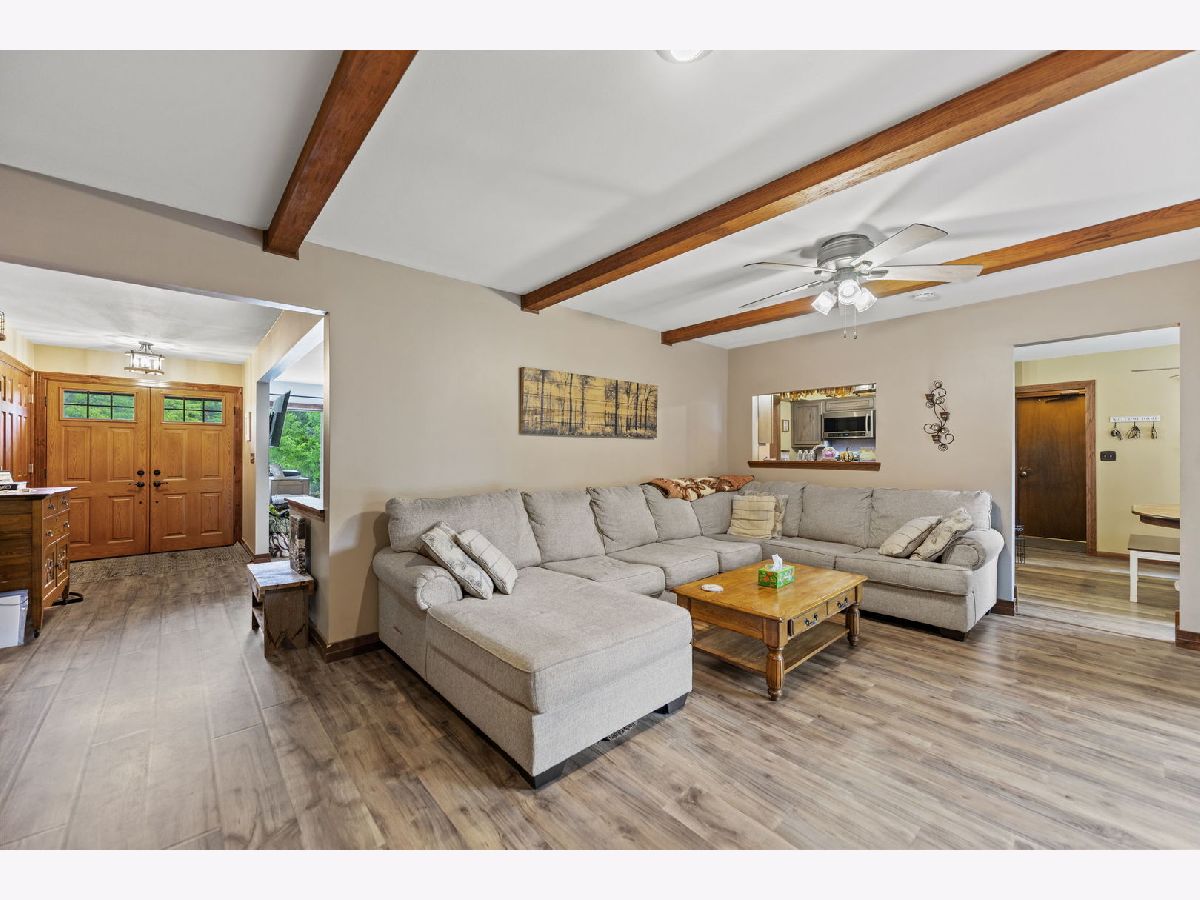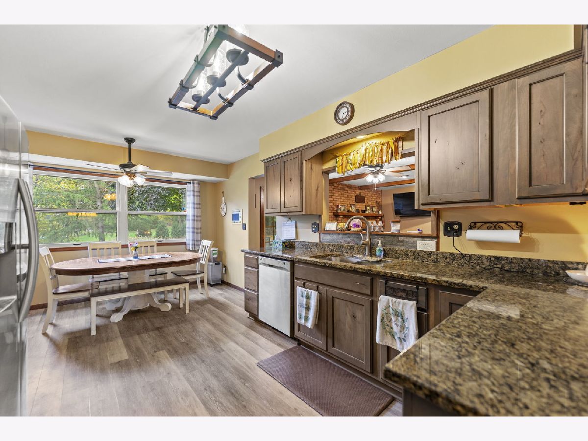 Welcome to this meticulously maintained 2,800 sq. ft. brick ranch, perfectly situated on a wooded, level lot in a peaceful country setting between Belvidere and Rockford. This home sits high in the subdivision with a circle driveway and beautiful views. Step into a spacious entryway that opens into a large combined living and dining area, ideal for entertaining and family gatherings. The cozy family room features a wood-burning fireplace with firewood ready to go, and a sliding door that opens to the backyard, offering scenic views year-round. The outdoor space is perfect for hosting with a fire pit, playset, and room to relax or play. The large eat-in kitchen provides ample space for cooking, dining, and conversation. Oak hardwood floors add warmth and charm to the bedrooms. The full basement is designed for fun and functionality, featuring a pool table, foosball table, office space, a workshop area, and abundant storage. This home is a true example of pride of ownership and has been lovingly cared for inside and out. Don't miss this rare opportunity to own a move-in ready ranch in a serene yet convenient location.