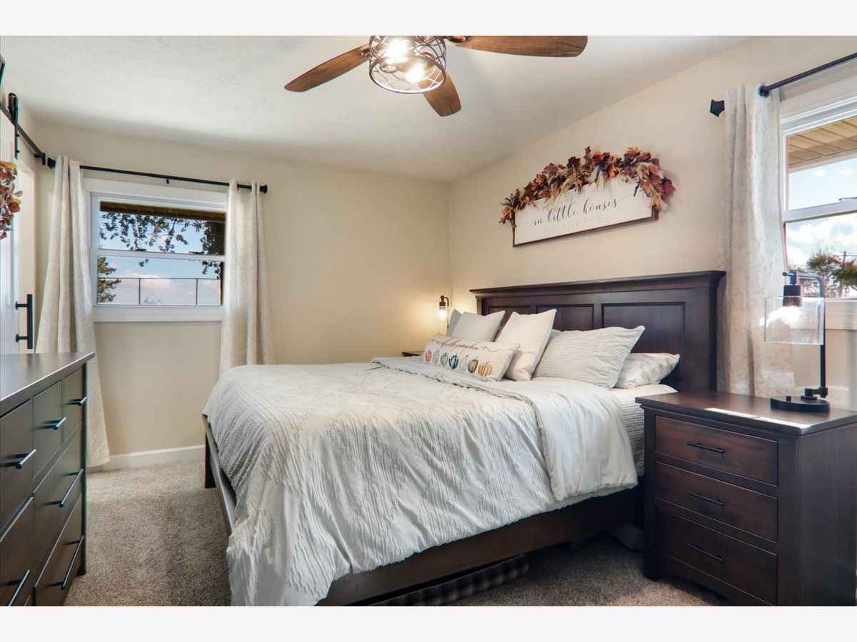 This beautifully updated home in Bloomington is the perfect blend of style, function, and peace of mind-with every major upgrade already done for you! Step inside and immediately notice the fresh, inviting feel throughout. The remodeled kitchen is a true showstopper, featuring a stunning herringbone backsplash, under-cabinet lighting, and newer stainless-steel appliances (refrigerator, dishwasher, and microwave all new in 2023). The open-concept living area shines with new laminate flooring and a custom shiplap media wall complete with a handmade mantle drawer for hidden storage and a custom fireplace that anchors the space beautifully. Retreat to the remodeled primary suite with its built-in closet system and sleek, updated bath. The hall bath and laundry room have also been completely reimagined, continuing the home's modern and cohesive design. Practical updates bring even more value: new 6-panel interior doors, a new front door, and a new sliding glass door with internal blinds; new electrical panel with updated wiring throughout; new water heater and whole-house filter; and a heated, oversized two-car garage with a belt-driven opener and new rollers. Outdoor living is just as impressive! Enjoy a brand-new concrete patio, no backyard neighbors, and a 14x16 storage shed for all your extras. Major systems are in great shape-furnace & A/C, roof, windows, septic-and the Hicks water softener is conveniently rented. Every inch of this home has been thoughtfully improved, offering the perfect balance of comfort and style. All you need to do is move in and enjoy!