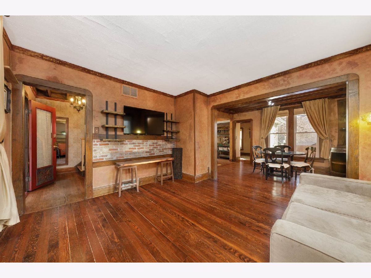 Return to Tuscany in the heart of Forest Park. This exceptional custom remodel offers 3 bedrooms, 3 full baths, and over $135,000 in high-end upgrades, seamlessly blending Old-World elegance with modern sophistication. An oversized, enclosed screened porch welcomes you-an ideal space for relaxed evenings and stylish entertaining. Inside, the dramatic foyer features soaring ceilings and a statement chandelier, setting a refined tone throughout the home. The living room showcases beautifully refinished hardwood floors, a striking brick accent wall, custom built-in media cabinetry, crown molding, original 5" baseboards, designer paint, and curated lighting.The adjacent dining room impresses with exposed ceilings, rich hardwood flooring, crown molding, and timeless brick detailing-perfect for hosting elegant dinners. The Tuscan-inspired kitchen is a true centerpiece, featuring custom soft-close cabinetry, warm wood countertops, brass accents, stainless steel appliances, a rustic coffee bar, built-in shelving, and dramatic brick and wood accent walls. A charming side porch with trellis offers fresh summer grapes and a private European-style retreat. A first-floor bedroom with walk-in closet and full bath provides flexible luxury living for guests or extended family. Upstairs, three generously sized bedrooms feature hardwood floors and crown molding. The spa-like remodeled bath includes marble tile flooring, an expanded tiled shower, new vanity and mirror, and a thoughtfully designed laundry area with folding counter. A hallway nook offers a serene space for a home office or reading lounge.The private backyard is fully fenced and includes a spacious patio, shed, and an additional one-car parking space with private access. A partially finished basement with full bath offers endless potential for future living or entertaining space.Major updates include a complete New Roof , Gutters, & Leaf Guards(2014), Hot Water Heater (2016), New A/C and Electrical Panel (2018), New Furnace (2021), Windows, Screened in Porch, Siding, Exterior Shutters, Storm Door, Camera System, Lighting, Window Treatments, Crown Molding, Attic Fan, Full Kitchen tear down Remodel,Hardwood Flooring, Basement Bath, & Built in shelving, Patio, Fence, & Carport 2022-2025. Unmatched character, quality craftsmanship, and walk-to-everything convenience-this is refined living at its finest.Welcome Home!
