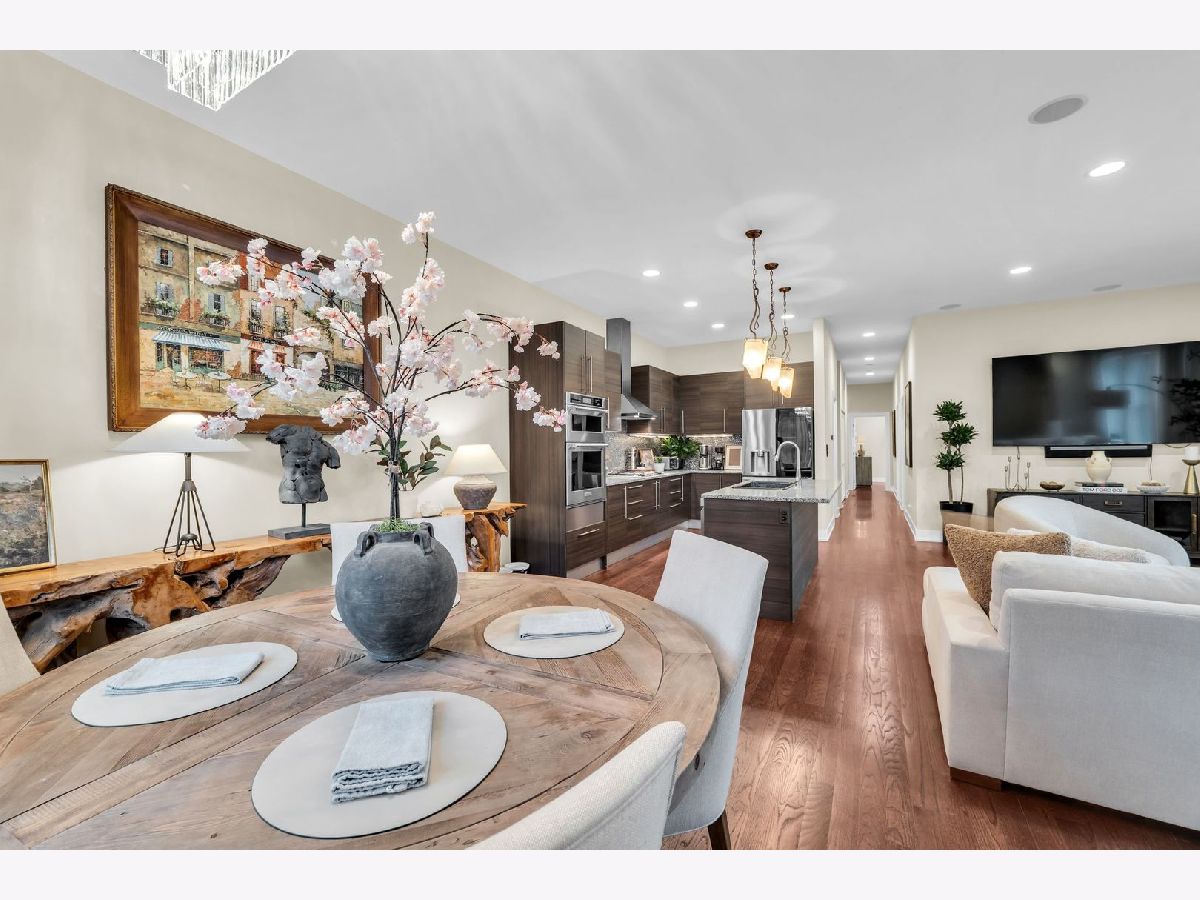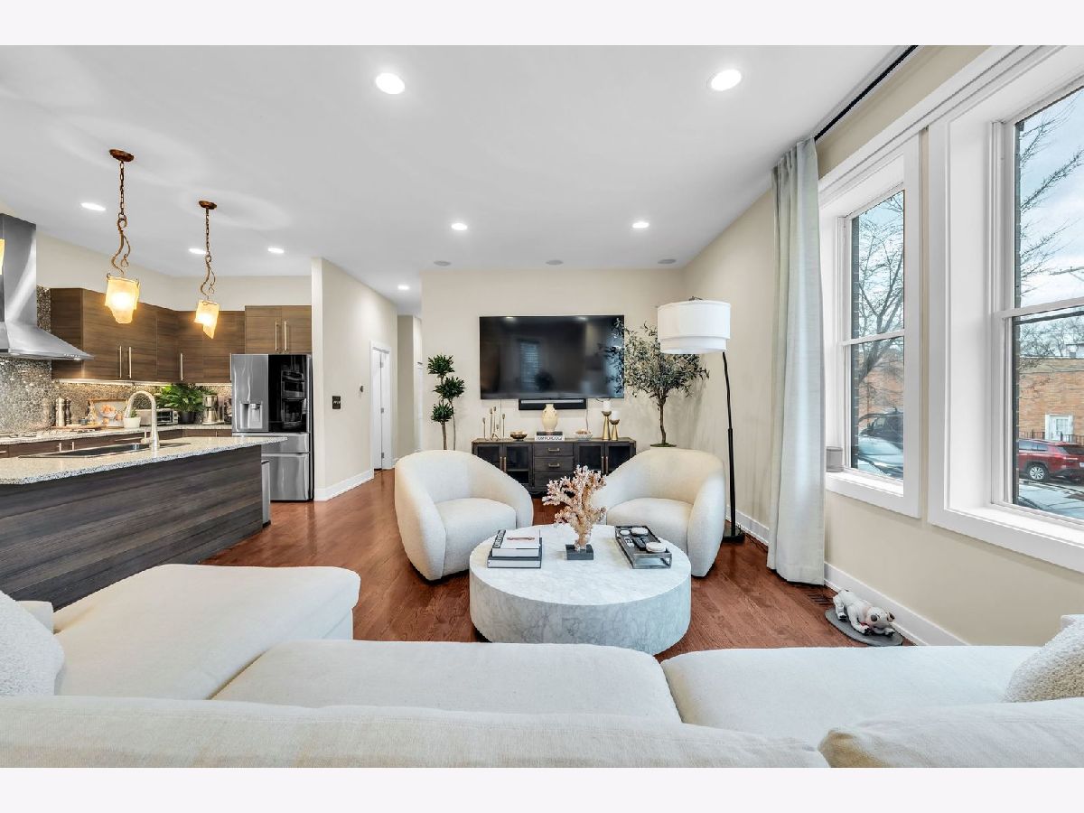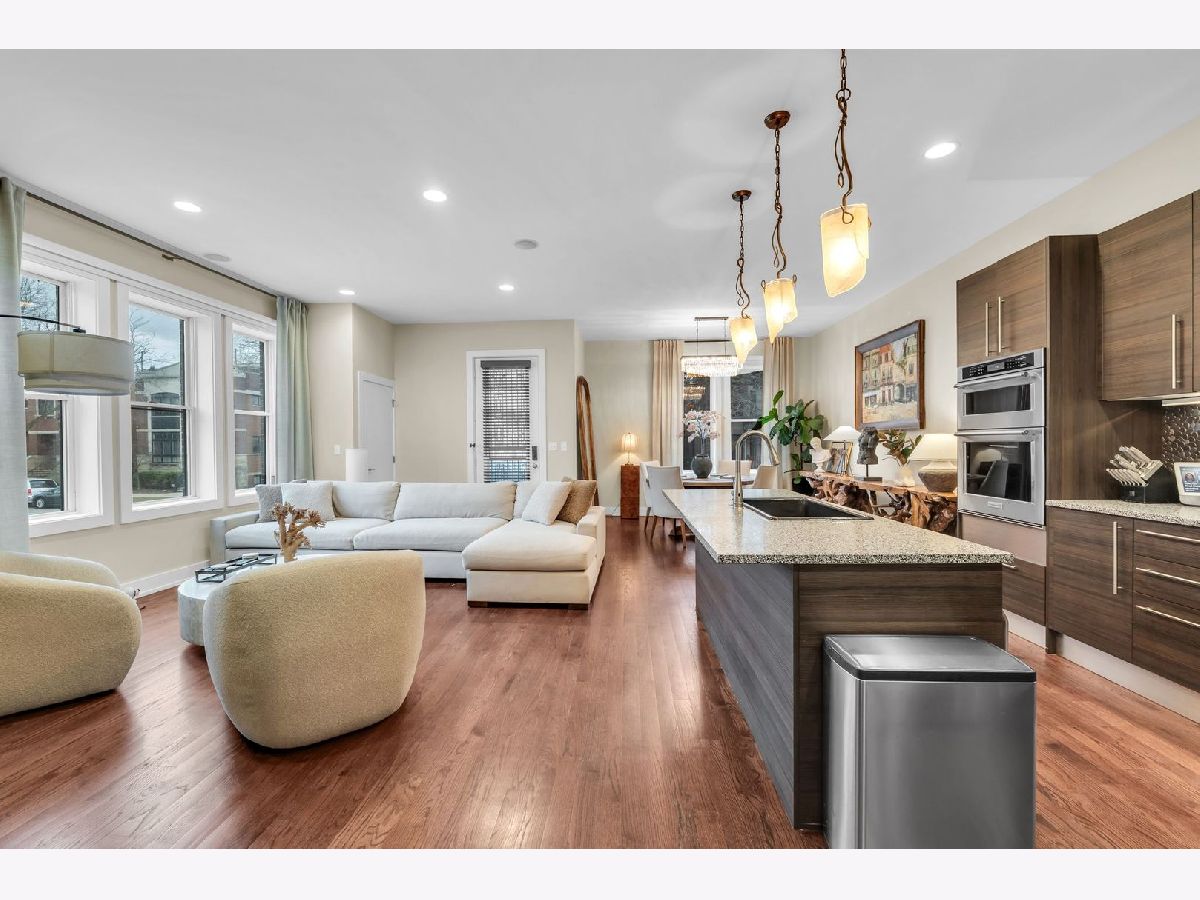 Step into this bright, beautifully appointed duplex that truly lives like a single-family home, ideally located in the sought-after Ravenswood neighborhood. This extra-wide, sun-drenched corner residence offers a private entrance and an exceptional blend of space, style, and comfort. Featuring 4 bedrooms and 3 full baths, the thoughtfully designed layout includes three bedrooms on the main level, along with generous living and dining spaces ideal for everyday living and entertaining. Soaring 10-foot ceilings, oversized windows, and rich hardwood oak flooring create an airy, open feel throughout. The chef's kitchen is both elegant and functional, complete with a high-end KitchenAid microwave/oven combo LG WIFI smart dishwasher, sleek Italian cabinetry, quartz countertops, a striking backsplash, and an oversized Kohler cast-iron sink. The primary suite is a true retreat, boasting a spa-inspired bath with onyx and travertine finishes, a double vanity with copper sinks, a jetted soaking tub, and a large rain shower with body sprays. The expansive lower level offers incredible flexibility, including a fourth bedroom, two oversized recreation/family rooms, with radiant heated floors. Enjoy a custom wet bar, Brazilian cherry flooring, a polished concrete-floored office or flex space behind French doors, and abundant storage. Additional highlights include built-in speakers with a Sonos system, motorized Hunter Douglas window treatments, custom California Closets, and an in-unit LG washer/dryer. Outdoor living is just as inviting with a large private deck-perfect for relaxing or entertaining. Climate-controlled garage parking is included. All of this in a charming boutique brick building, just moments from Lincoln Square, Wrigleyville, Andersonville, Southport corridor, Lycee Francais school, German International School Chicago, and Ravenswood Elementary. Close to CTA (brown line - Montrose, red line - Wilson), and everything this incredibly vibrant neighborhood has to offer.