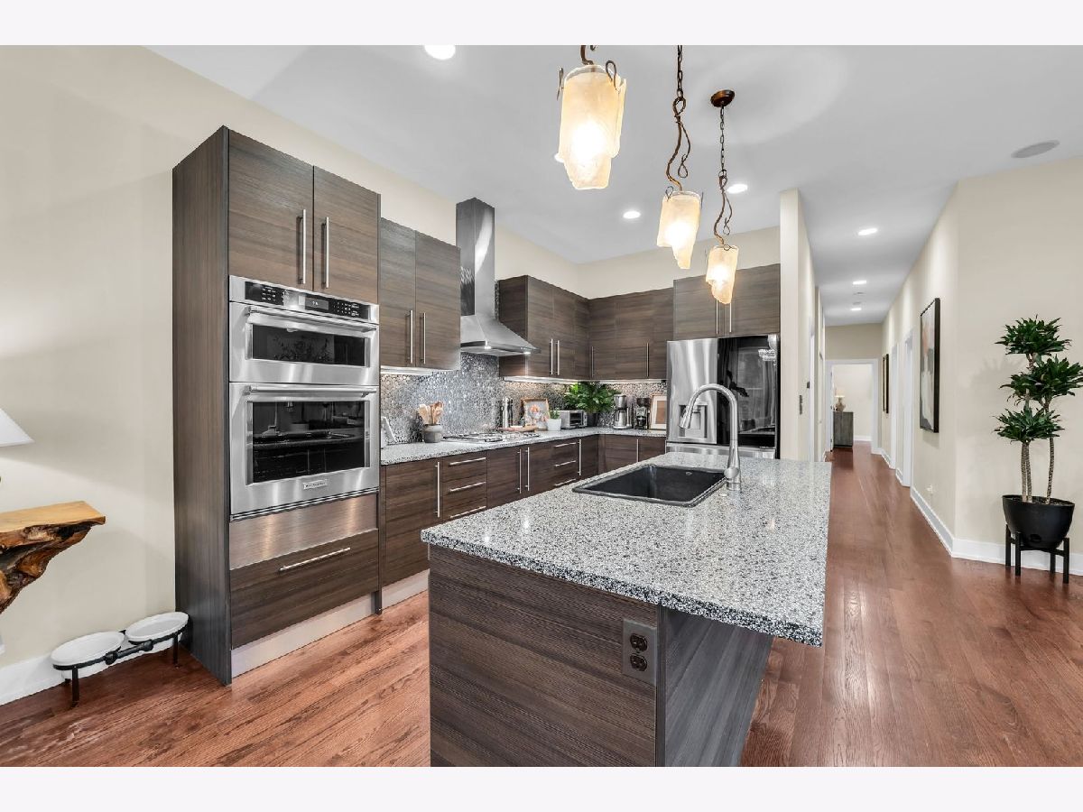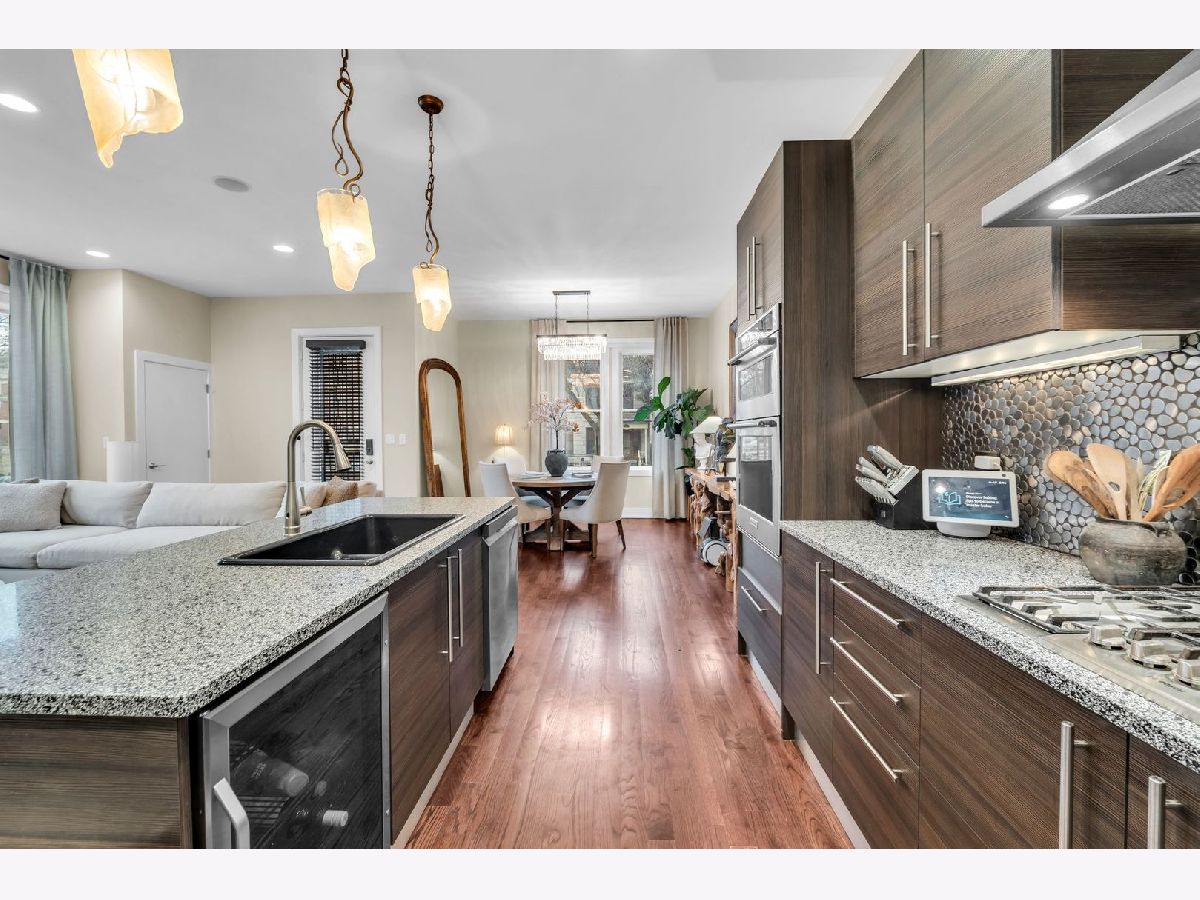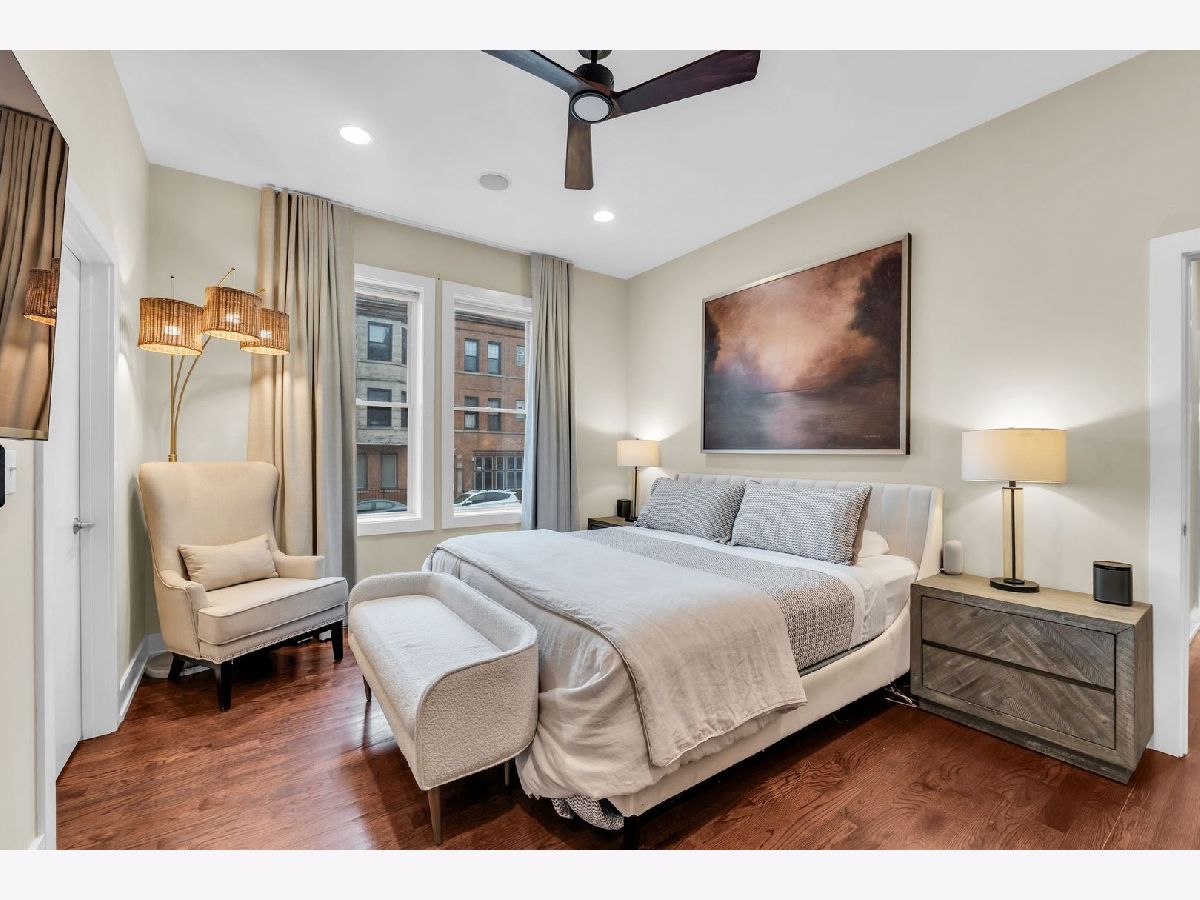 Step into this bright, beautifully appointed duplex that truly lives like a single-family home, ideally located in the sought-after Ravenswood neighborhood. This extra-wide, sun-drenched corner residence offers a private entrance and an exceptional blend of space, style, and comfort. Featuring 4 bedrooms and 3 full baths, the thoughtfully designed layout includes three bedrooms on the main level, along with generous living and dining spaces ideal for everyday living and entertaining. Soaring 10-foot ceilings, oversized windows, and rich hardwood oak flooring create an airy, open feel throughout. The chef's kitchen is both elegant and functional, complete with a high-end KitchenAid microwave/oven combo LG WIFI smart dishwasher, sleek Italian cabinetry, quartz countertops, a striking backsplash, and an oversized Kohler cast-iron sink. The primary suite is a true retreat, boasting a spa-inspired bath with onyx and travertine finishes, a double vanity with copper sinks, a jetted soaking tub, and a large rain shower with body sprays. The expansive lower level offers incredible flexibility, including a fourth bedroom, two oversized recreation/family rooms, with radiant heated floors. Enjoy a custom wet bar, Brazilian cherry flooring, a polished concrete-floored office or flex space behind French doors, and abundant storage. Additional highlights include built-in speakers with a Sonos system, motorized Hunter Douglas window treatments, custom California Closets, and an in-unit LG washer/dryer. Outdoor living is just as inviting with a large private deck-perfect for relaxing or entertaining. Climate-controlled garage parking is included. All of this in a charming boutique brick building, just moments from Lincoln Square, Wrigleyville, Andersonville, Southport corridor, Lycee Francais school, German International School Chicago, and Ravenswood Elementary. Close to CTA (brown line - Montrose, red line - Wilson), and everything this incredibly vibrant neighborhood has to offer.
