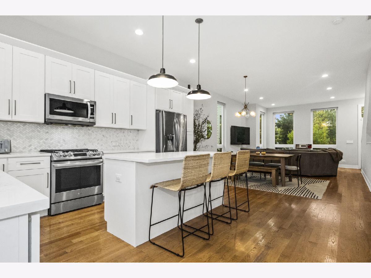 Welcome to the largest floor plan at BaseCamp in highly sought-after Old Irving Park. This beautifully finished 5-bedroom, 3.5-bath home offers a bright, modern layout designed for everyday living and easy entertaining. The open main level features 10-foot ceilings, hardwood floors, and a convenient powder room. The kitchen shines with extra-tall cabinetry, quartz countertops, a custom pantry, a large island, and an upgraded LG stainless-steel appliance package. Upstairs, you'll find three spacious bedrooms with vaulted ceilings, plus conveniently located laundry. The primary suite offers a walk-in closet and an en suite bath with dual vanities and an oversized shower. The fully finished lower level adds even more flexibility with a large recreation room, two additional bedrooms, a full bath, and great storage. Plus a detached two-car garage. Outside, enjoy a generous rear yard ideal for entertaining, gardening, or relaxing. Unbeatable location just minutes away from the Grayland Metra station, plus close to parks, dining, shopping, and easy commuting options. Don't miss your chance to make this home yours.