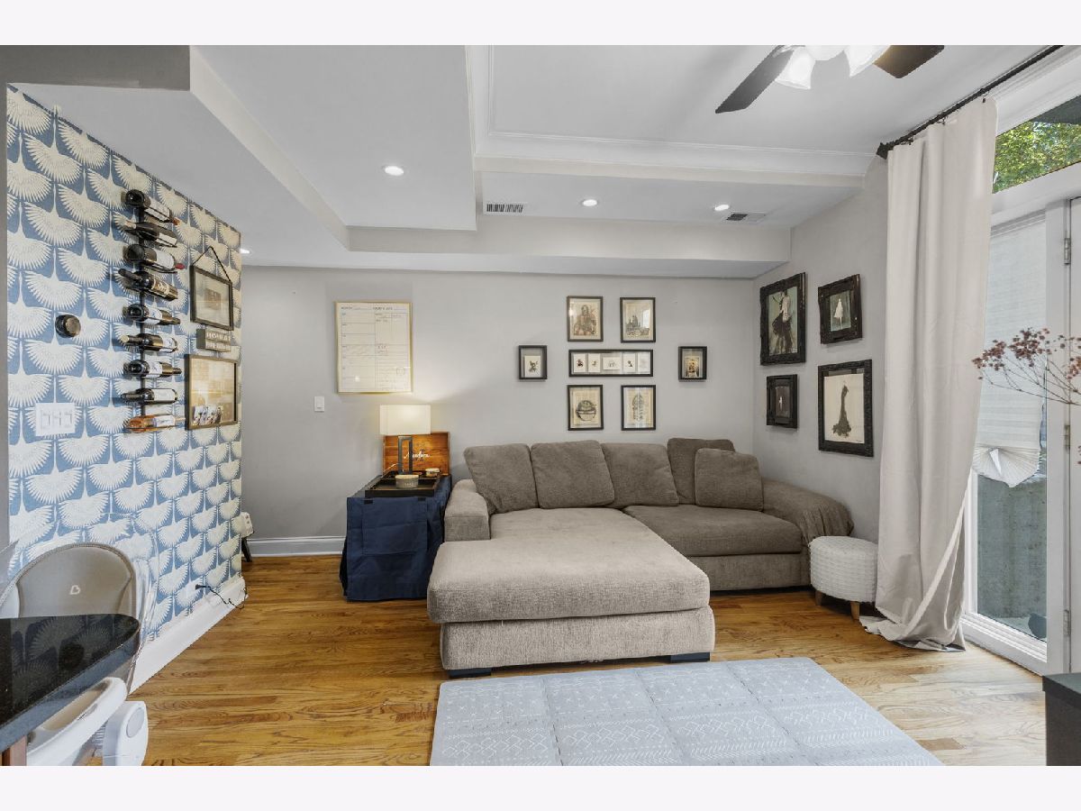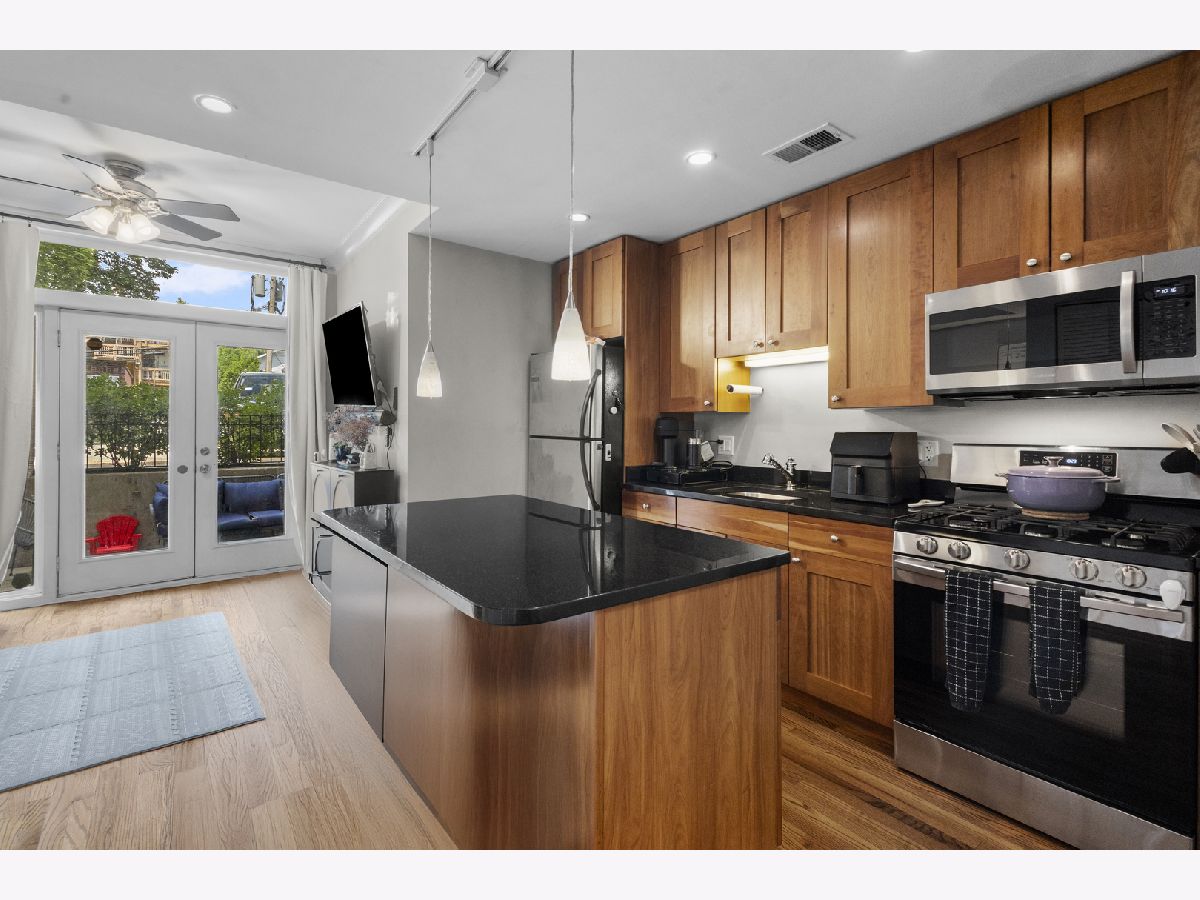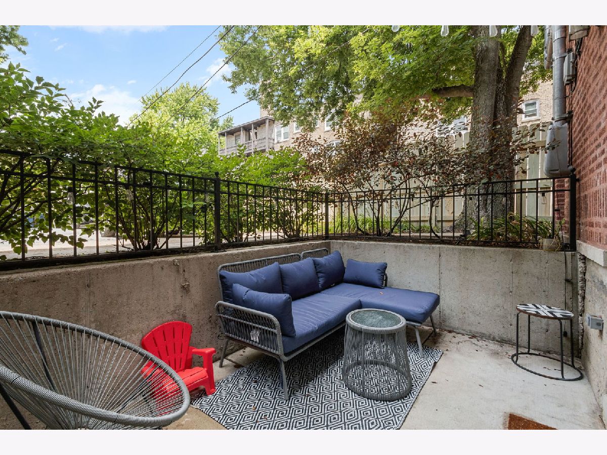 Bright and stylish 2-bedroom, 2-bath condo in sought-after Ravenswood! This sunny unit offers an inviting open layout with just refinished hardwood floors, stainless steel appliances, rich custom cabinetry, granite countertops, and freshly painted throughout. The primary suite features timeless charm with the ensuite bath with subway tile surround and brand-new vanity, updated lighting, added custom shelving, and sleek new shower shelves-perfect for both function and comfort. The 2nd bedroom is well-sized and offers good closet space. Relax on the private outdoor terrace, perfect for grilling and entertaining! Additional highlights include in-unit laundry with a newer washer and dryer, individual HVAC, and great natural light throughout. Located just steps from the train and all the shops and restaurants Ravenswood has to offer. Garage parking is included in the price!