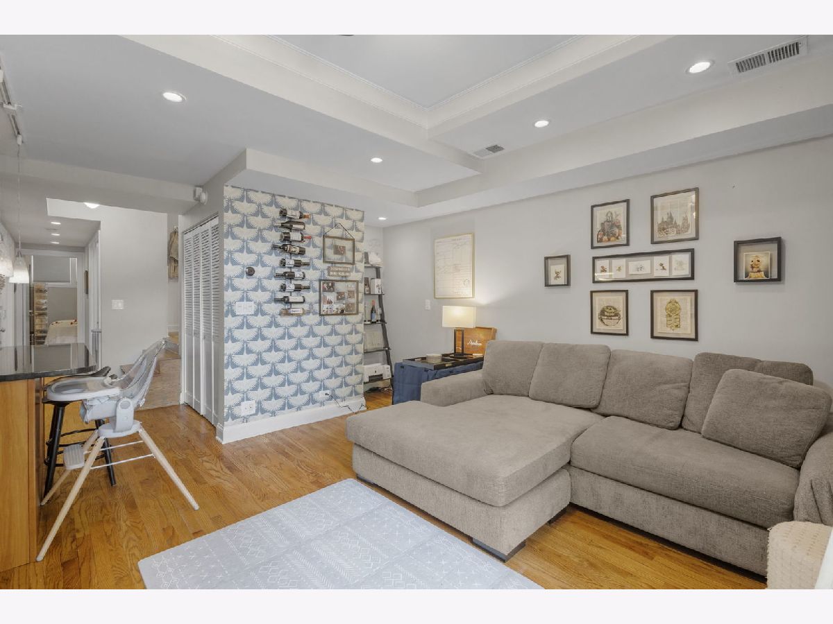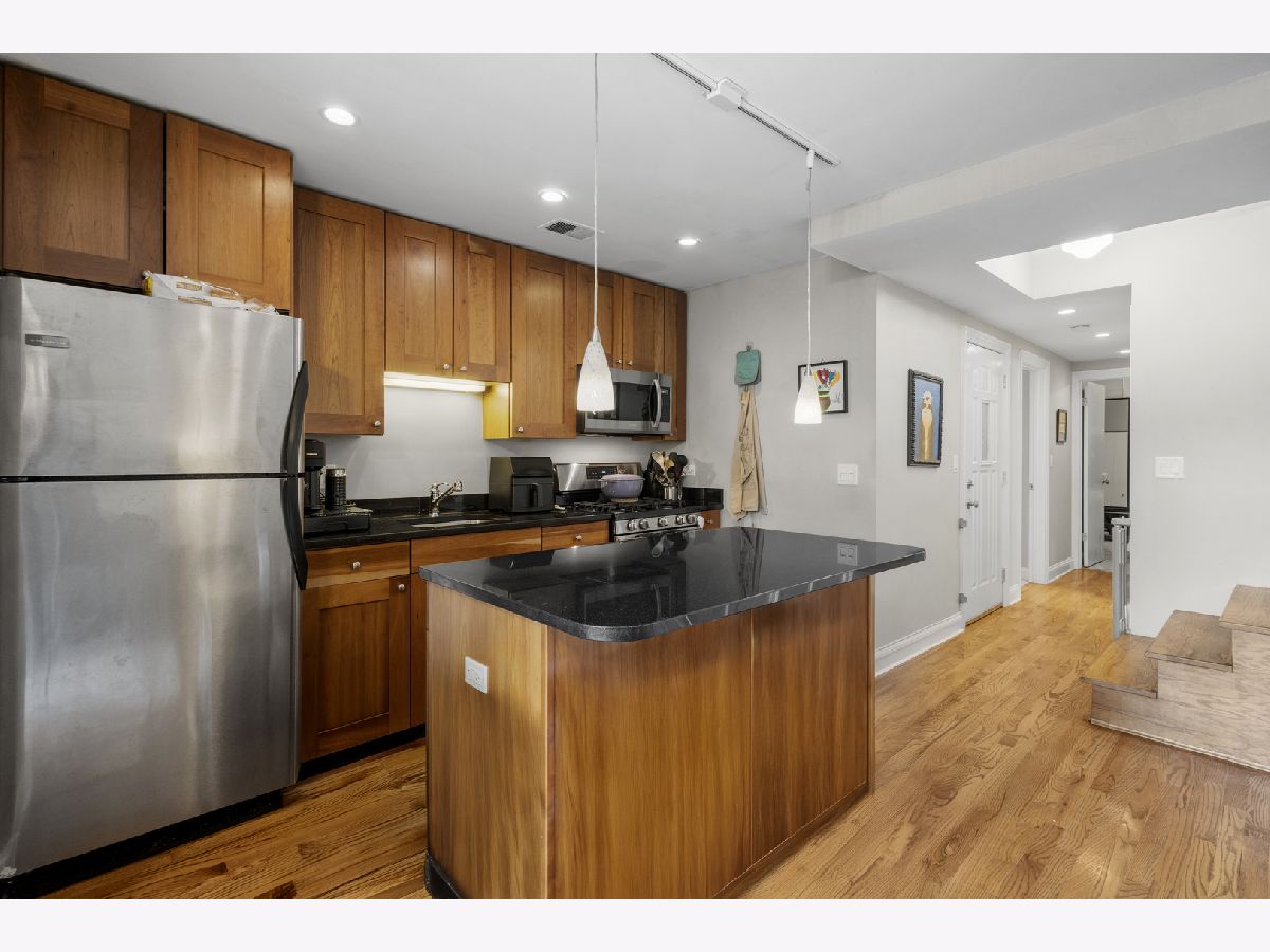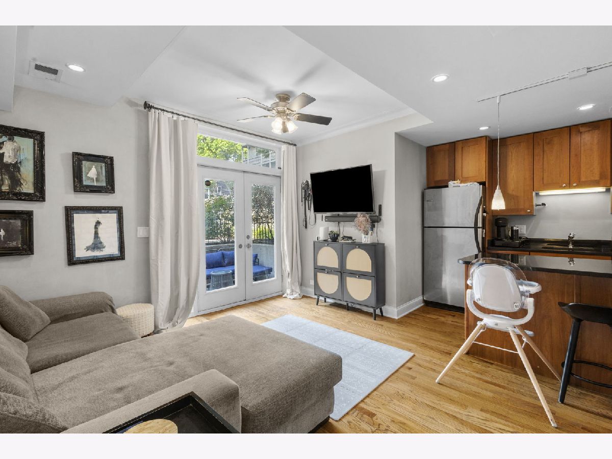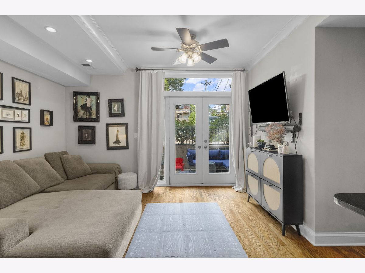 Bright and stylish 2-bedroom, 2-bath condo in sought-after Ravenswood! This sunny unit offers an inviting open layout with just refinished hardwood floors, stainless steel appliances, rich custom cabinetry, granite countertops, and freshly painted throughout. The primary suite features timeless charm with the ensuite bath with subway tile surround and brand-new vanity, updated lighting, added custom shelving, and sleek new shower shelves-perfect for both function and comfort. The 2nd bedroom is well-sized and offers good closet space. Relax on the private outdoor terrace, perfect for grilling and entertaining! Additional highlights include in-unit laundry with a newer washer and dryer, individual HVAC, and great natural light throughout. Located just steps from the train and all the shops and restaurants Ravenswood has to offer. Garage parking is included in the price!