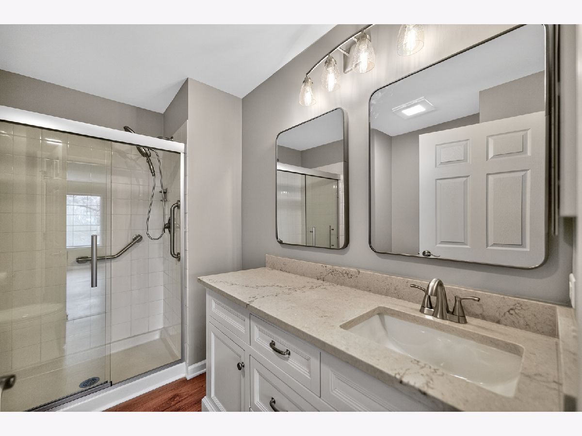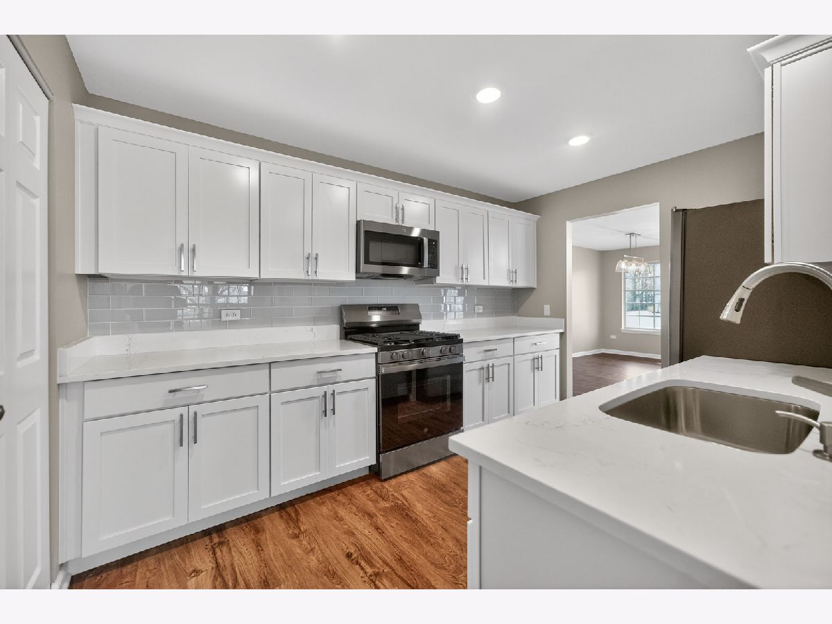 Completely renovated and move-in ready, this beautifully updated 2-bedroom, 2-bath condo in Fairfax Commons offers modern finishes and comfortable single-level living in a quiet Bartlett community. The home has been thoughtfully remodeled throughout, featuring all new flooring, updated lighting, and a stunning new kitchen with walk-in pantry, shaker cabinets, quartz countertops, glass subway tile backsplash, new sink, and brand-new appliances. The open layout creates a bright and welcoming living space that flows easily for both everyday living and entertaining. Both bathrooms have been fully updated with new vanities, cabinetry, fixtures, and finishes, giving the home a clean, contemporary feel from top to bottom. With approximately 1,200 square feet of living space, this home offers two comfortable bedrooms, two full bathrooms, and the convenience of attached garage parking. Located in the desirable Fairfax Commons community, the property is close to shopping, dining, parks, and major commuter routes while still offering a peaceful residential setting. A rare opportunity to enjoy a fully renovated, turnkey condo in a well-maintained Bartlett community.