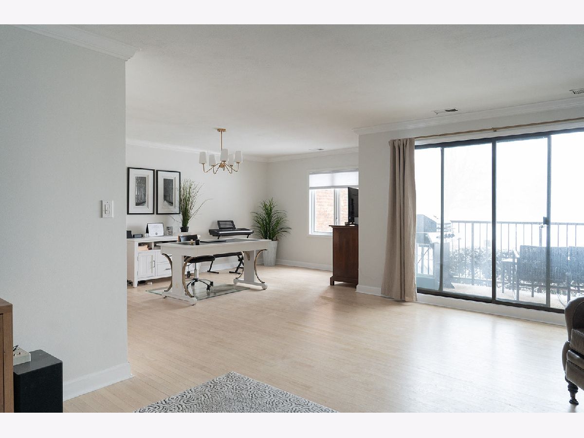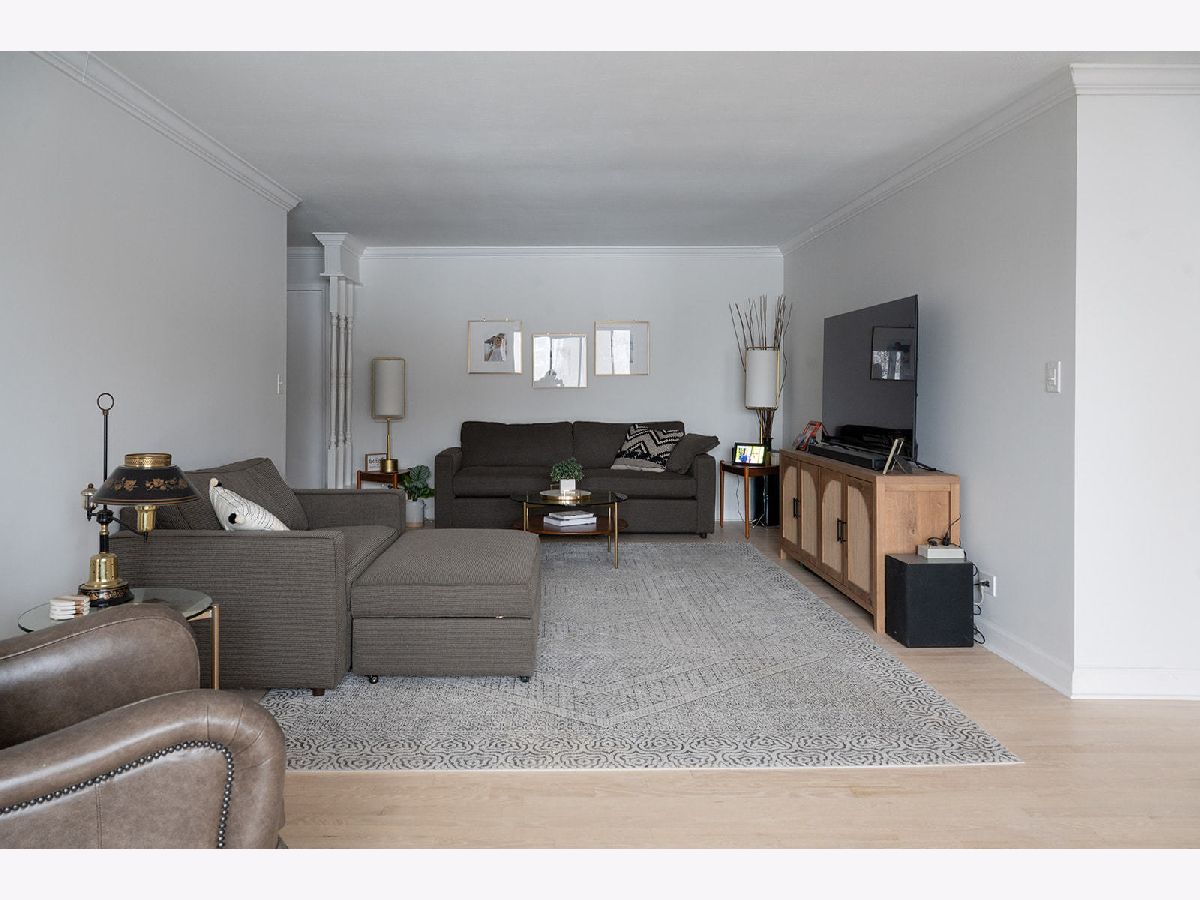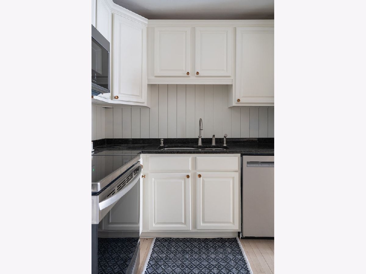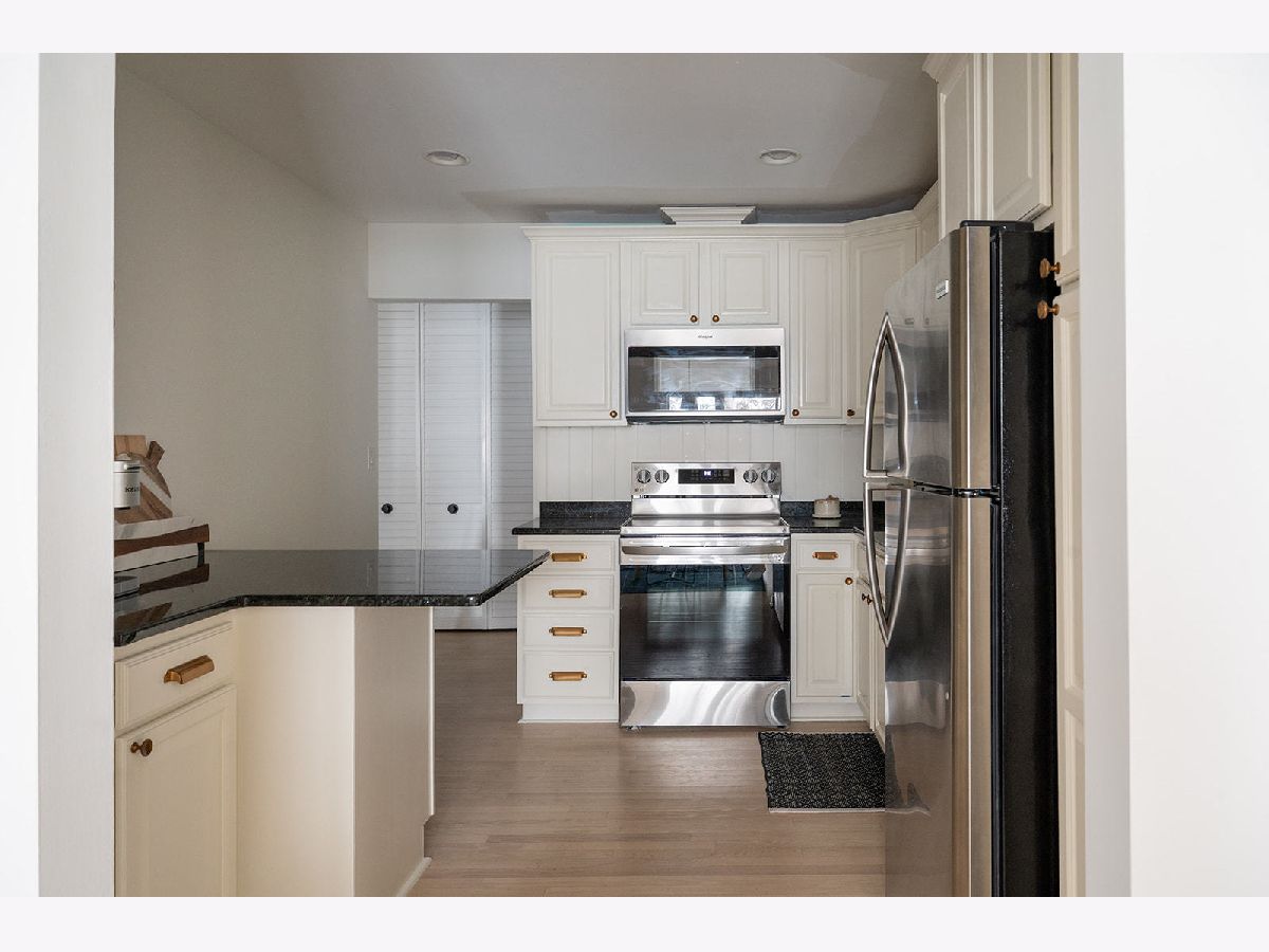 Light and bright updated condo in move-in condition. Hardwood (refinished) floors, white kitchen with granite, enormous master bedroom and generous size second bedroom. Updates include: All stainless steel appliances. (LG stove, KitchenAid dishwasher, Whirlpool microwave). All fixtures (both plumbing and electric) have been updated to today's contemporary style. A/C new as of 2022. Pella windows with custom fit blinds. Conveniently located on the first floor with easy access to the assigned garage space (24) that is within steps of both doors. Also includes a storage locker conveniently located just a few doors down in the hallway. (Please note, when kitchen was updated, the electric was run for under cabinet lighting but does need hooked up) Well run board with substantial reserves. Owner is a licensed broker in IL.