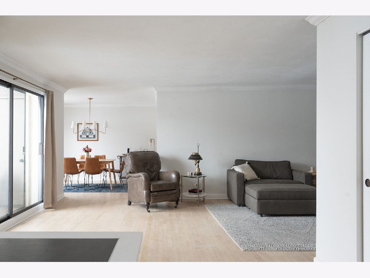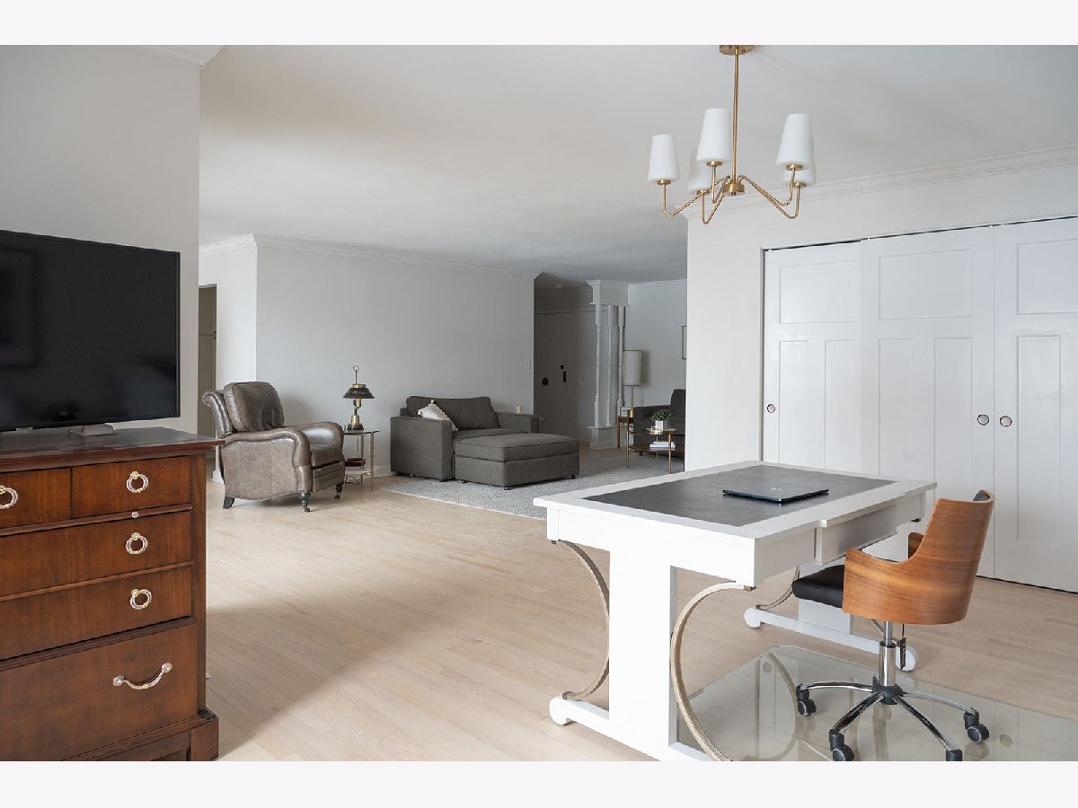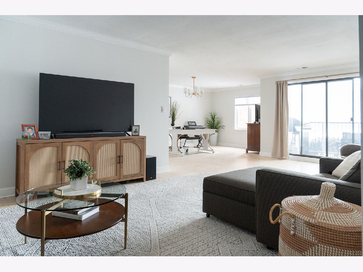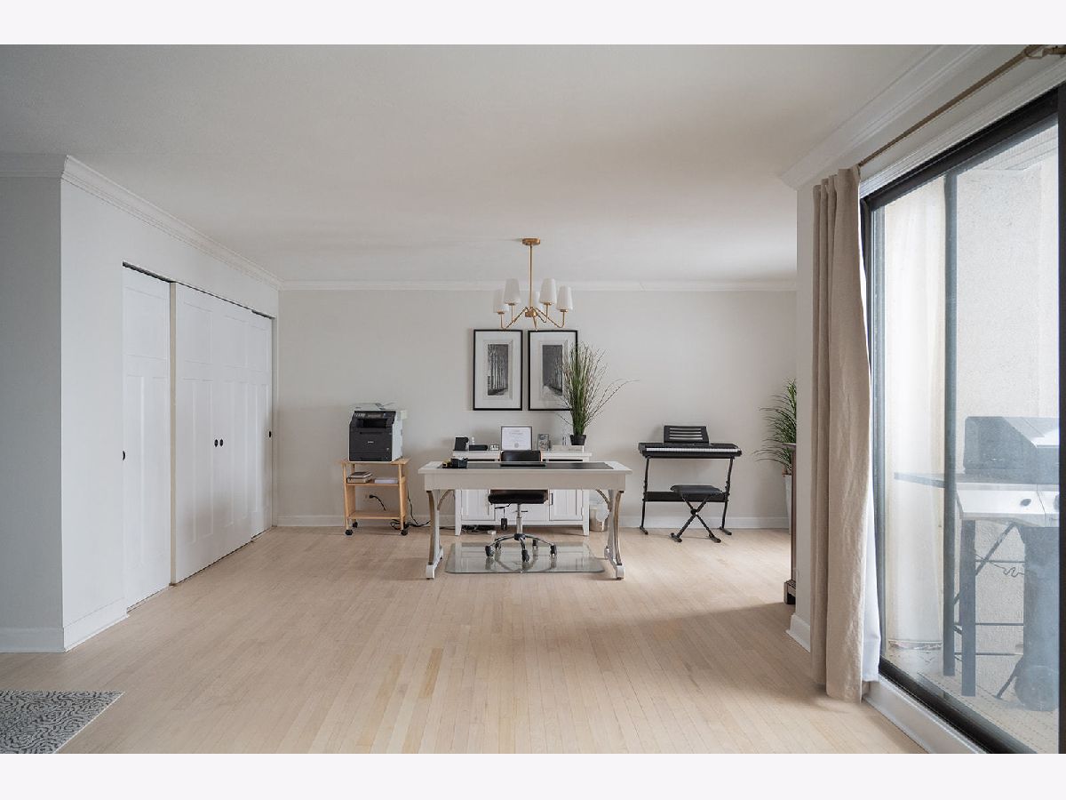 Light and bright updated condo in move-in condition. Hardwood (refinished) floors, white kitchen with granite, enormous master bedroom and generous size second bedroom. Updates include: All stainless steel appliances. (LG stove, KitchenAid dishwasher, Whirlpool microwave). All fixtures (both plumbing and electric) have been updated to today's contemporary style. A/C new as of 2022. Pella windows with custom fit blinds. Conveniently located on the first floor with easy access to the assigned garage space (24) that is within steps of both doors. Also includes a storage locker conveniently located just a few doors down in the hallway. (Please note, when kitchen was updated, the electric was run for under cabinet lighting but does need hooked up) Well run board with substantial reserves. Owner is a licensed broker in IL.