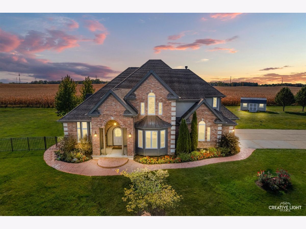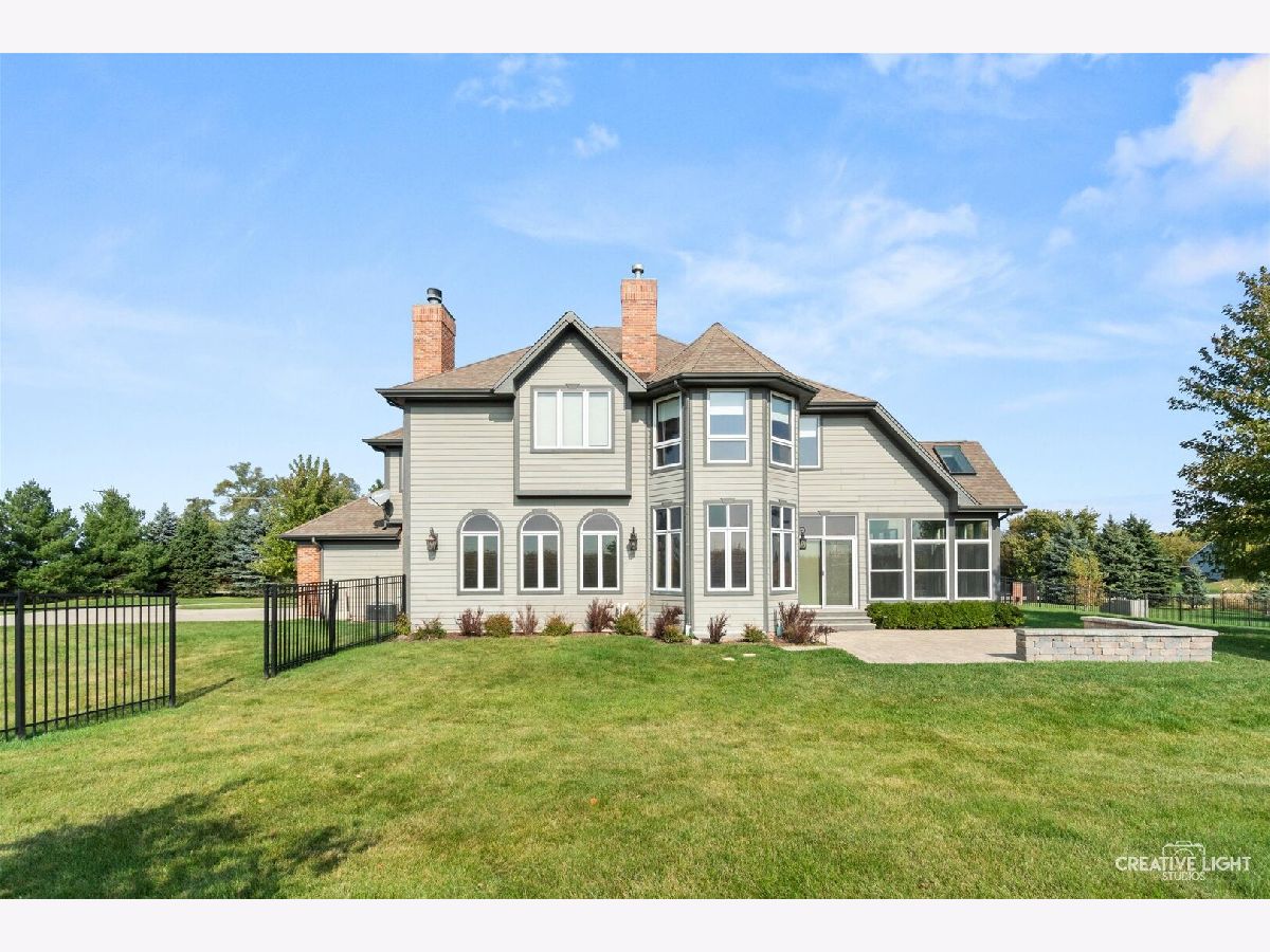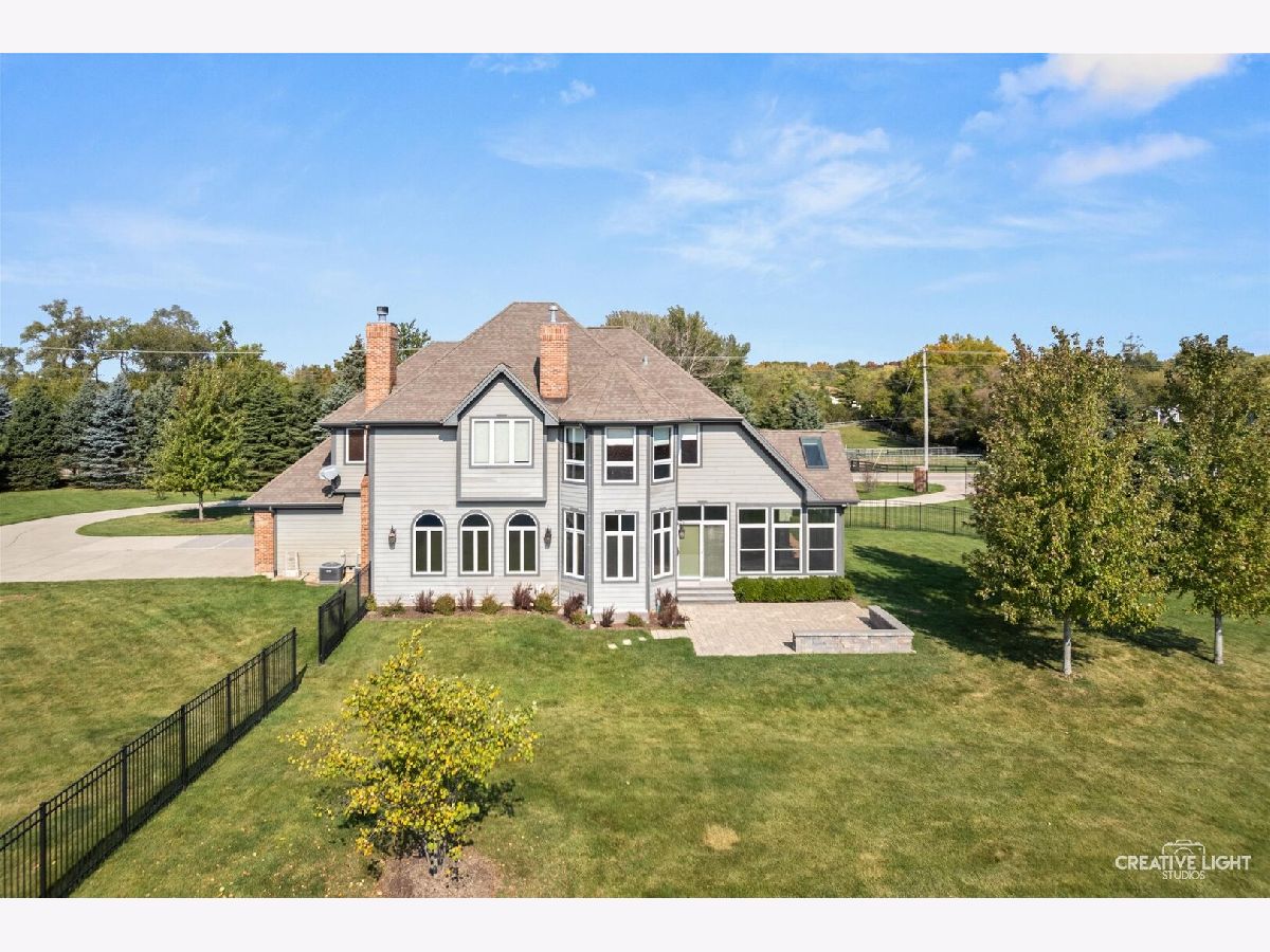 Custom-built Masterpiece! Soaring two-story foyer with a curved staircase. A chef's kitchen with Viking and Monogram appliances. Granite counters throughout. Brazilian cherry wood floors. New carpet. The family room has an elegant fireplace. The first floor offers an office/den with built-in bookcases. There's also a large, three-season room! Oversized Master bedroom with a seating area and a see-through fireplace. A Large jetted tub facing the fireplace. Large walk-in shower with double showerheads. His and hers large walk-in closets. All bedrooms have walk-in closets. Bedrooms 2 and 3 share an attached bath, and Bedroom 4 has its own private bath. The basement boasts a theater room and a recreation room. Basement plumbed for a full bath. Paver brick patio with a seat wall. Stamped concrete walkways. Fully fenced in on two acres with a garden shed. This gorgeous 4 Bedroom, 3.1 Bath is A MUST SEE!!