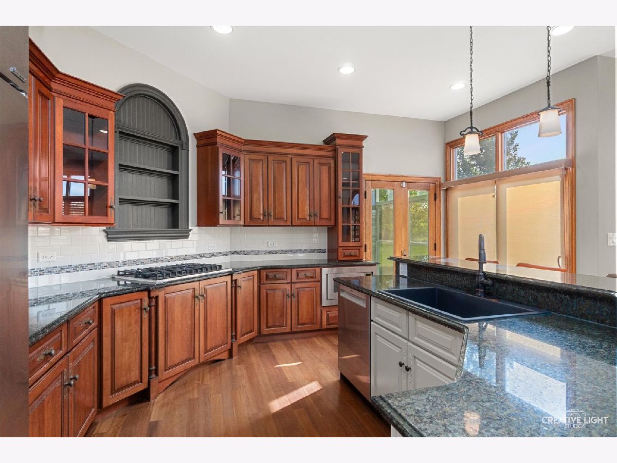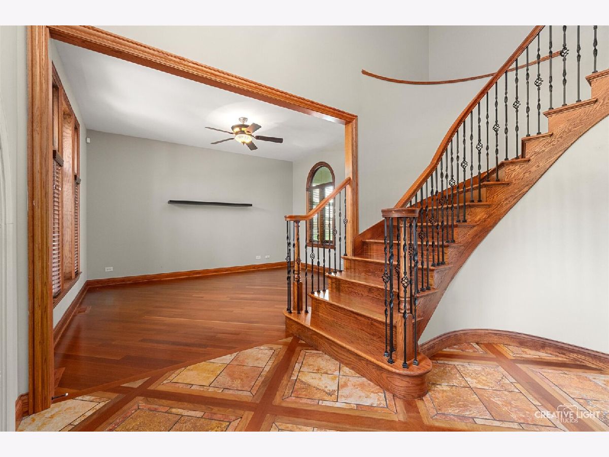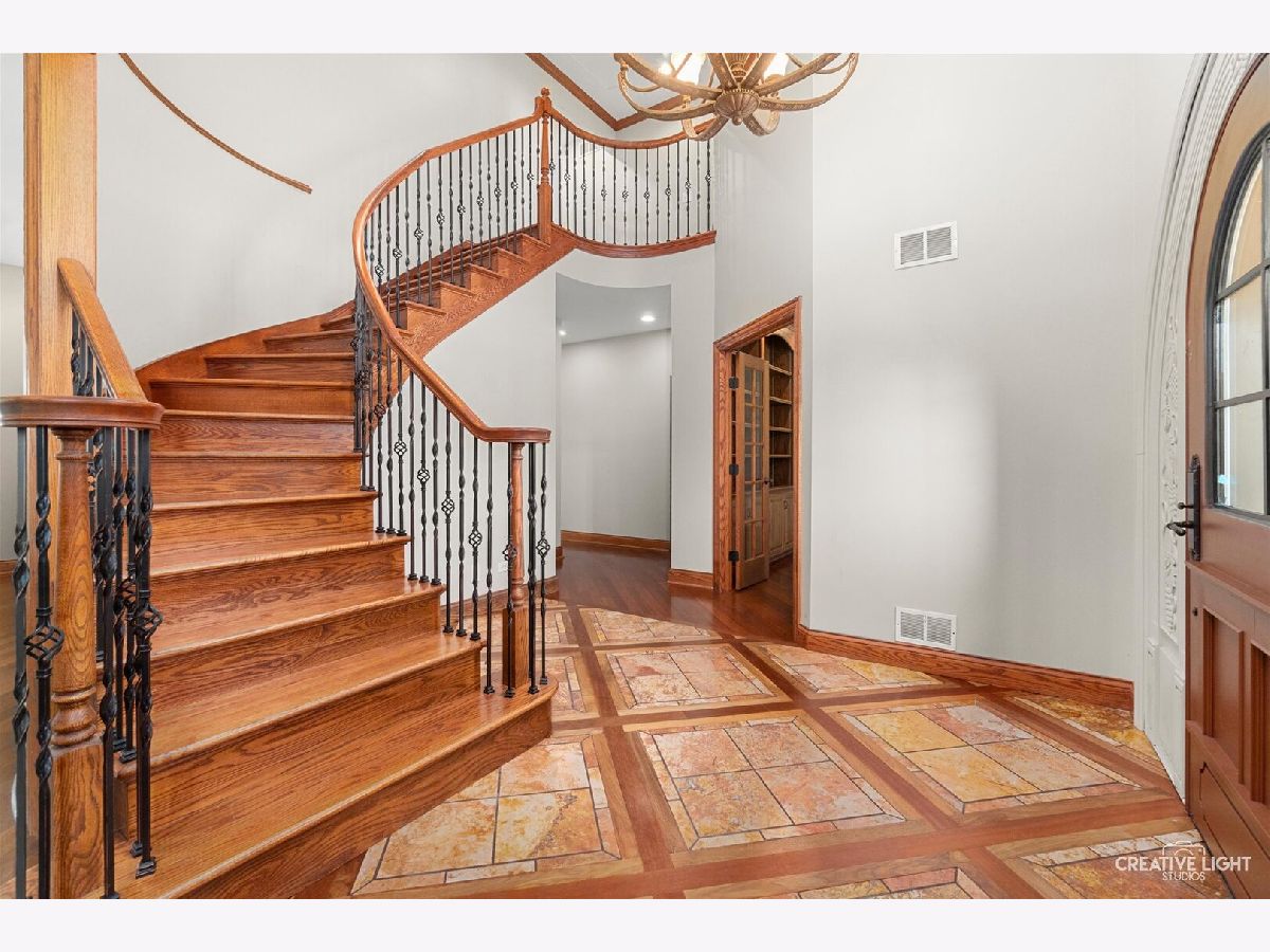 Custom-built Masterpiece! Soaring two-story foyer with a curved staircase. A chef's kitchen with Viking and Monogram appliances. Granite counters throughout. Brazilian cherry wood floors. New carpet. The family room has an elegant fireplace. The first floor offers an office/den with built-in bookcases. There's also a large, three-season room! Oversized Master bedroom with a seating area and a see-through fireplace. A Large jetted tub facing the fireplace. Large walk-in shower with double showerheads. His and hers large walk-in closets. All bedrooms have walk-in closets. Bedrooms 2 and 3 share an attached bath, and Bedroom 4 has its own private bath. The basement boasts a theater room and a recreation room. Basement plumbed for a full bath. Paver brick patio with a seat wall. Stamped concrete walkways. Fully fenced in on two acres with a garden shed. This gorgeous 4 Bedroom, 3.1 Bath is A MUST SEE!!