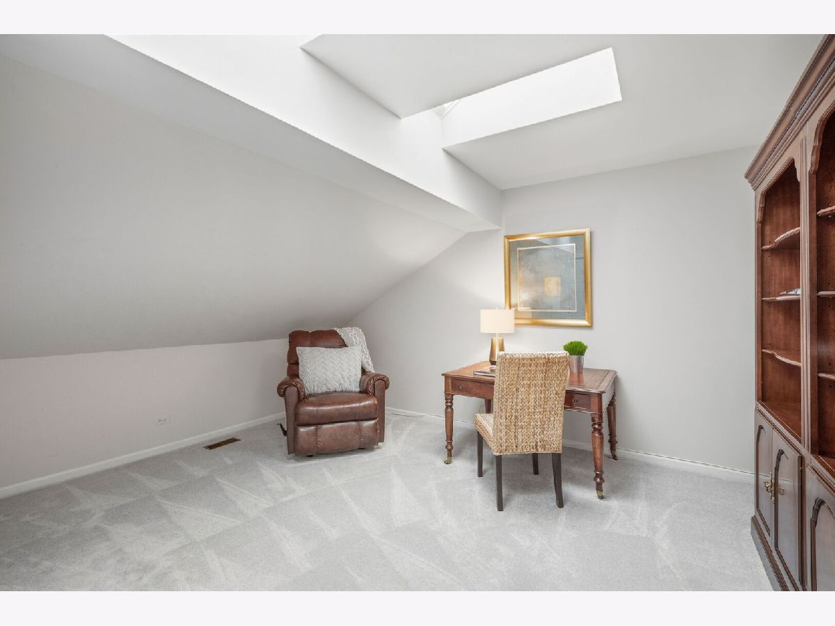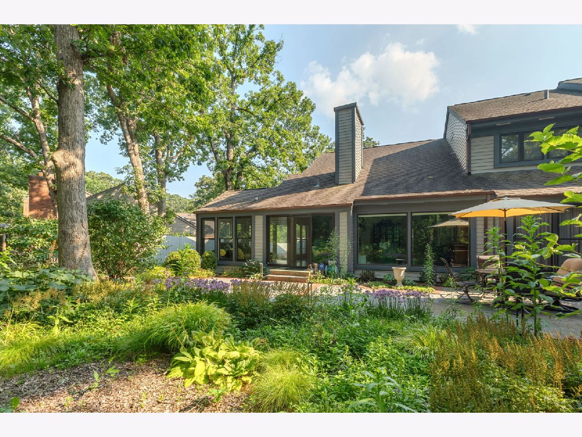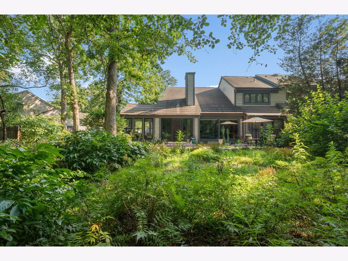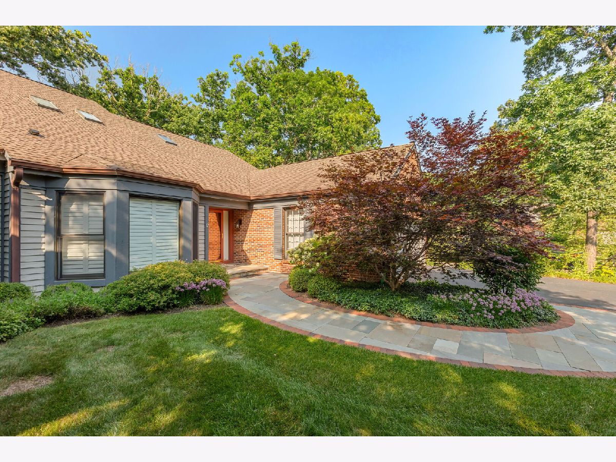 Low-maintenance living meets a peaceful, private wooded sanctuary in the desirable Armour Woods community of Lake Bluff. Nestled among the trees, this rare duplex lives like a ranch, offering over 1,800 square feet of open living and entertaining space on one level, centered around a coveted first-floor primary suite. Large picture windows frame panoramic views of perennial gardens and tree-studded land, creating a connection between indoors and out. The living, dining, and family rooms flow together beneath vaulted ceilings, separated by a see-through fireplace that defines each space while preserving the open, light-filled feel throughout. Thoughtful details carry through the main level. The den features a wet bar and wine fridge, ideal for entertaining or winding down at the end of the day. Timeless and elegant, the kitchen features natural stone countertops with a leathered finish, a six-burner Viking range, a Sub-Zero refrigerator, and a center island with a prep sink. A glass slider leads directly to a convenient side patio with a BBQ, making al fresco dining and grilling a natural extension of everyday living. The main-level primary suite offers double closets and a renovated bath with dual vanities and a generously sized shower. Completing this level is a powder room and a first-floor laundry that connects directly to the two-car attached garage. Everything you need, without a step to the floor above. Upstairs, an open catwalk leads to a loft-style level illuminated by skylights, with two versatile bedrooms: one ensuite and another perfectly suited as a home office, playroom, or guest quarters. Step outside, and you are immediately enveloped in a serene, wooded setting that transforms into a lush private sanctuary as the seasons fill in. Professionally designed landscaping with perennial gardens, lighting, and bluestone and brick walkways and terraces ensures the outdoor space feels welcoming and vibrant year-round. Complete with a finished basement and secondary laundry hookup, this three-bedroom, 2.5-bath home is move-in ready and waiting to be enjoyed today.