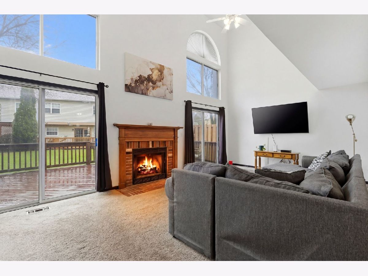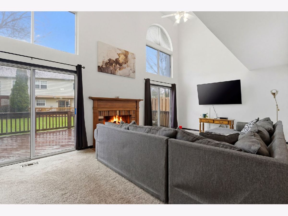 Welcome to this spacious and beautifully updated end-unit townhome, ideally located on the desirable west end of town. Just minutes from Rt. 59 and I-90 for easy commuting! Nestled in a charming community with a mix of townhomes and single-family residences, and conveniently located near a park and scenic pond. Offering approximately 1,940 sq ft of living space, this home features 3 generously sized bedrooms plus a first-floor office, perfect for today's work from home lifestyle. The dramatic two-story living room is filled with natural light and showcases a cozy fireplace, dual ceiling fans, cathedral ceilings and expansive windows with two patio doors that open to a spacious 30-foot deck overlooking the yard. Newer washer and dryer are also included for added convenience. The primary suite offers a private retreat with a full bath, double bowl vanity, and a walk-in closet. Additional highlights include an attached 2-car garage with direct access, and a brand new roof (2024) providing added value and peace of mind. This home truly checks all the boxes schedule your tour today and see why it stands out from the rest!
