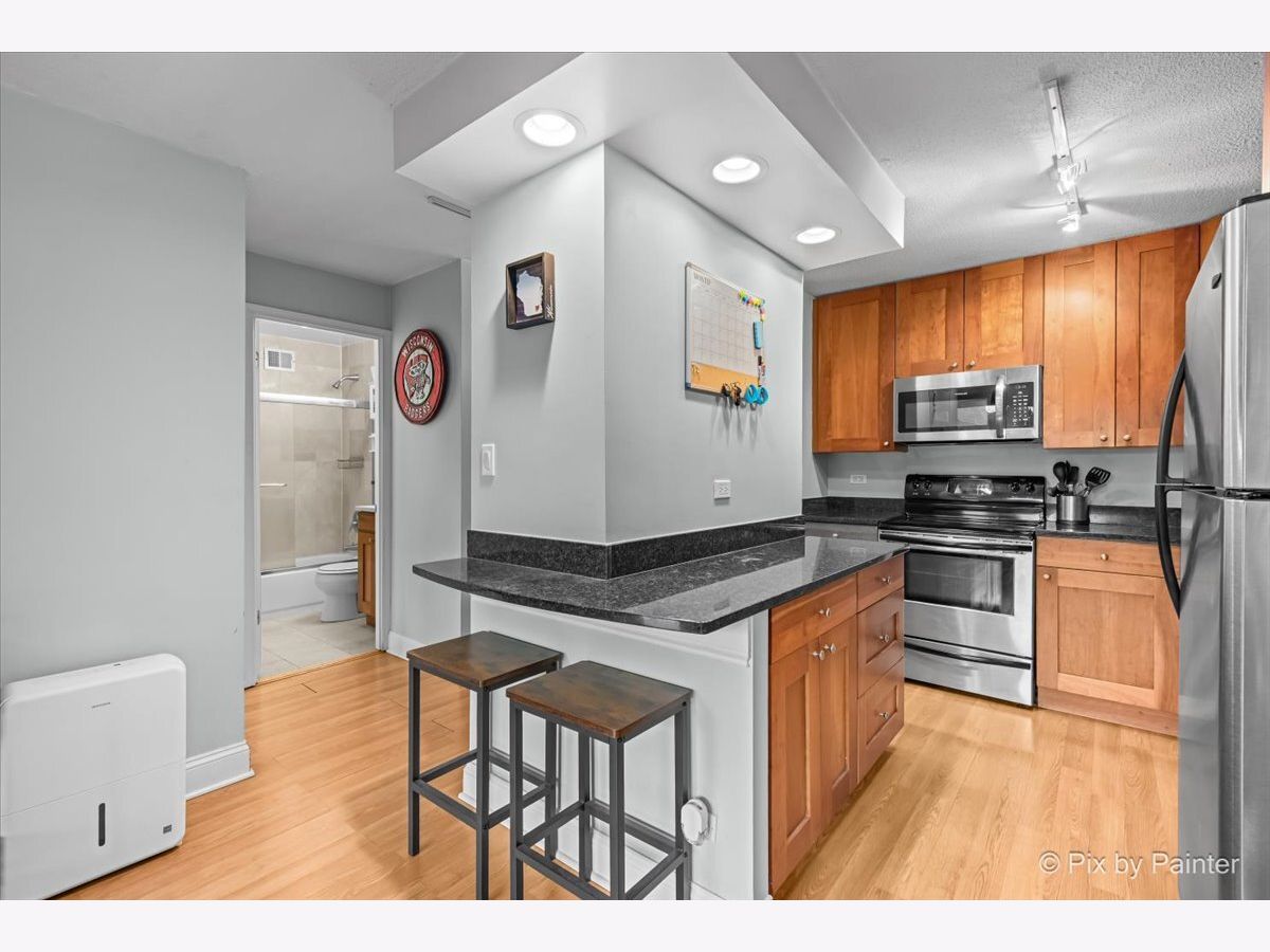 Modern south-facing one-bedroom offering abundant natural light and a spacious open floor plan. The home features hardwood flooring, a modern kitchen with granite countertops and stainless steel appliances, and a large bedroom with excellent closet space. A private balcony provides the perfect spot for morning coffee or evening relaxation. Situated in a premier full-amenity elevator building, residents enjoy a rooftop pool and sundeck with sweeping lake and city views, a well-equipped fitness center, bike room, storage cage, secure entry with ButterflyMX access system, and on-site management. Additional conveniences include on-site laundry and a welcoming common area. Incredible location just steps from the lakefront, restaurants, bars, shopping, and entertainment, all on a quiet tree-lined street. Commuting is easy with multiple bus lines just 0.1 miles away and the Belmont Red, Brown, and Purple Line station approximately 0.7 miles away.