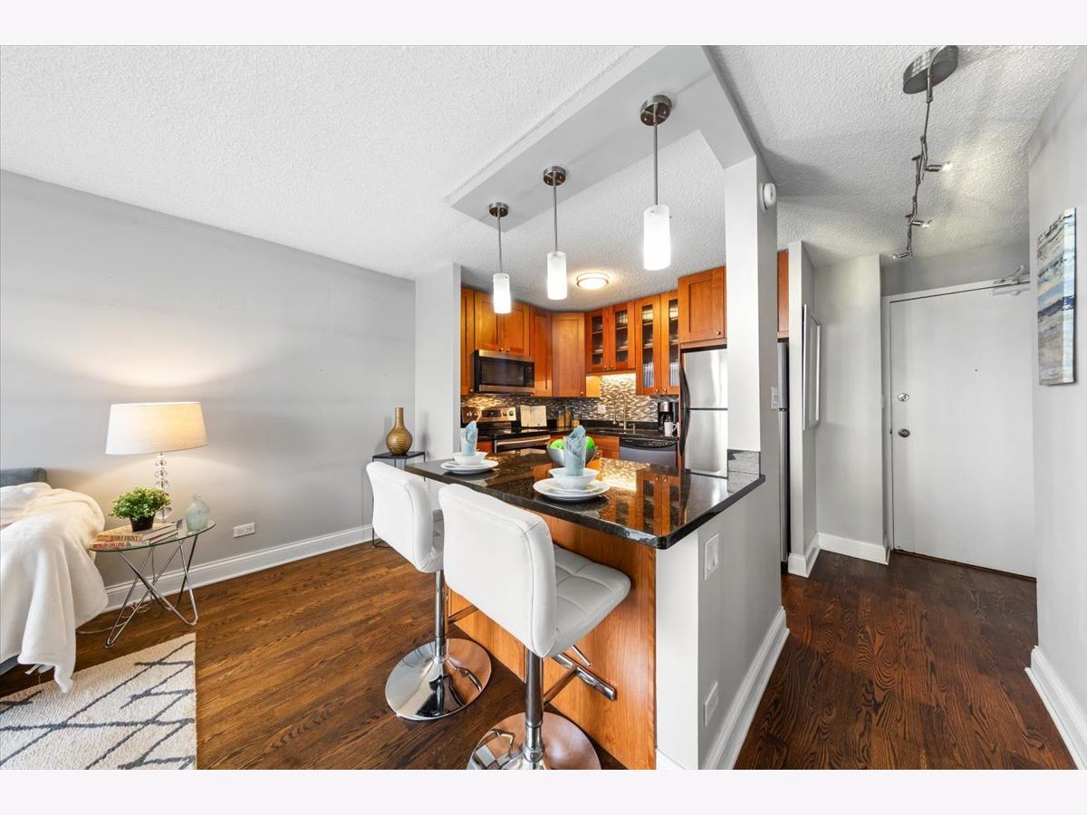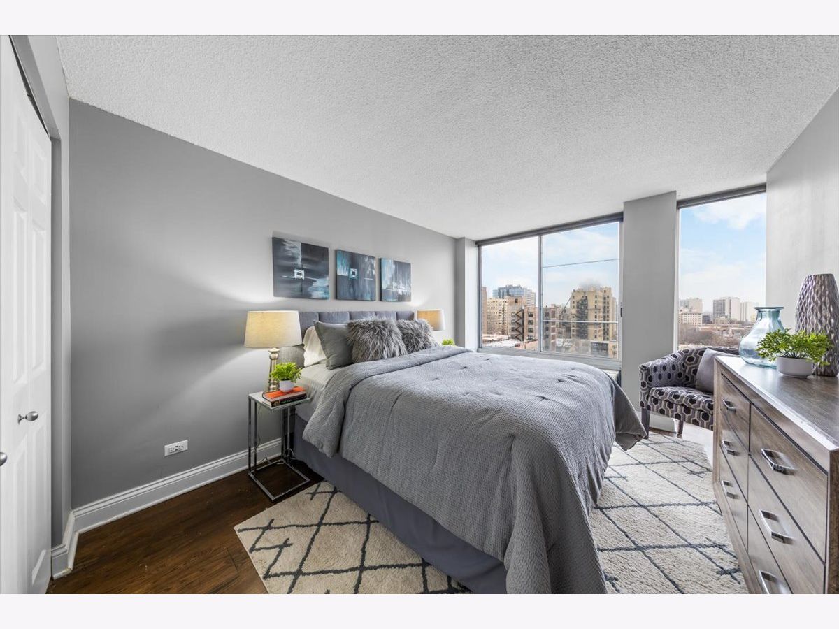Enjoy sweeping southern city views from this sun-filled, immaculate one-bedroom/one bath condo in the heart of East Lakeview. The kitchen features granite countertops, stainless appliances, custom lighting and 42" cabinets. The living room features walnut-stained hardwood floors and huge windows with custom shades. The spacious bedroom easily accommodates a king bed and has gorgeous southern views of the city. Beautiful bathroom with updated mirror/light fixture, In-unit combo washer-dryer and an additional storage space round out this incredible property. The building includes a roof-top pool and sun-deck with lake views, as well as a fitness center and on-site management. Parking is available for rent in the building, or walk to public transportation, the lake and all of the bars, restaurants and shopping in Lakeview!