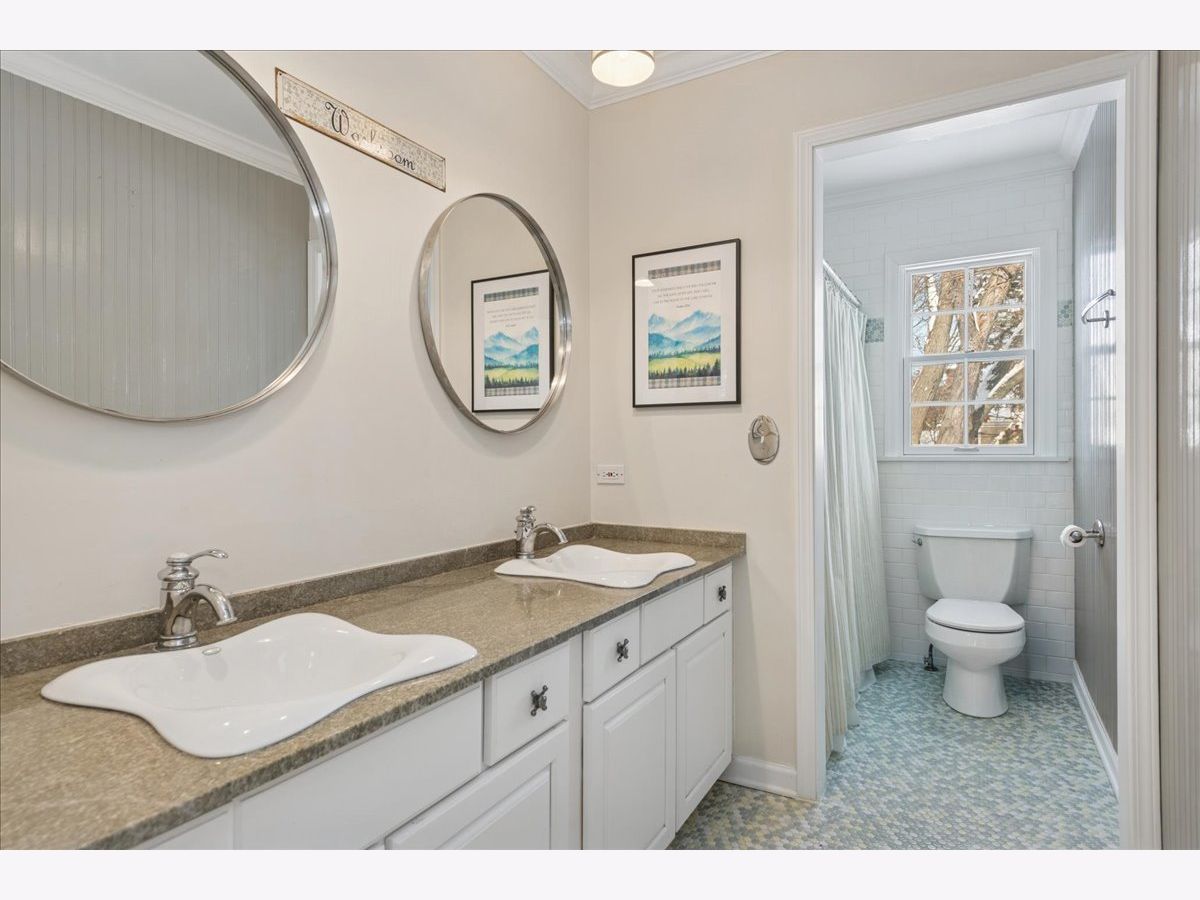 Front porch charm welcomes you to this gem in the heart of sought after Glen Acres! Set on a picturesque, tree-lined street, this beautifully appointed home blends timeless elegance with everyday comfort. The sprawling bluestone covered front porch sets the tone, welcoming you into nearly 5,000 sq ft of thoughtfully designed living space with five bedrooms and three full baths on the second level. A main floor office with adjacent full bath can flex as a guest/6th bedroom! Masterfully renovated and expanded in 2004, the home offers an exceptional floor plan with generous room sizes, rich hardwood floors, three fireplaces, custom millwork and oversized windows that bathe the interiors in natural light. The gourmet kitchen is a chef's dream with a large island, breakfast bar and walk-in pantry, opening seamlessly to the inviting family room. Just beyond, the sunroom overlooks the lush backyard and leads to an extraordinary screened porch featuring a floor-to-ceiling stone fireplace, vaulted ceilings and a charming balcony overlook. The first floor is rounded out with elegant living and dining rooms and a thoughtfully designed laundry/mudroom. Upstairs, the serene primary suite feels like a private retreat with on-trend shiplap volume ceilings, a cozy sitting area, dual walk-in closets and a private balcony perched above the screened porch. The spa-inspired ensuite offers a soaking tub, dual vanities and a separate shower. A second office nook, four additional bedrooms-including one ensuite-and a large hall bath with double sinks round out the well-appointed upper level. The finished lower level is designed for fun and functionality with spacious rec, game and play areas plus abundant storage space. Step outside to a picture-perfect backyard where lush landscaping frames a spacious brick paver patio-an inviting setting for effortless entertaining or quiet moments of relaxation. The fully fenced yard offers peace of mind and plenty of room for pets and children to play. Car enthusiasts and hobbyists will love the attached heated two-car garage, plus a detached one-car garage for added flexibility. Lovingly and meticulously maintained including new dishwasher (2025), washer & dryer (2024), HVAC (2023) & roof (2021), this home offers the best of Barrington Village living with easy access to downtown shops, dining, Metra and schools. Come for a visit and fall in love!