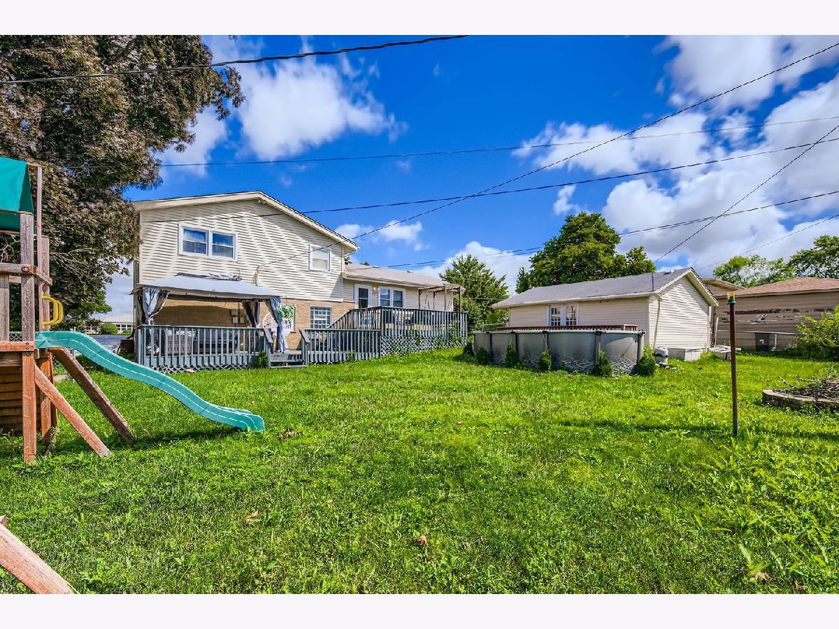 Beautiful 3 Bedroom Home in Oak Lawn. The lower level offers a spacious family room, an updated half bath, and a large laundry/utility room. Upstairs, enjoy hardwood floors that flow through the bright and open living and dining areas. The kitchen features new flooring, a new sink, and new appliances, including a refrigerator, oven/range, and microwave, and opens to a big backyard complete with a two-tiered deck, pool, fire pit, swing set, and a newer gazebo. All 3 bedrooms are equipped with ceiling fans, and the master bedroom features double closets. The full bathroom has been completely updated. the 2.5 car garage has French doors leads to an ideal outdoor entertaining area. This well-maintained home is move-in ready!