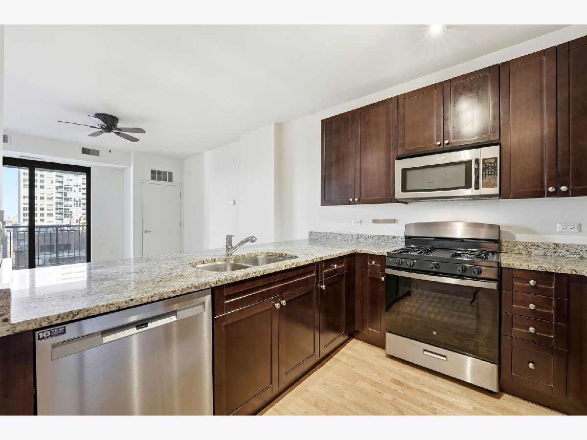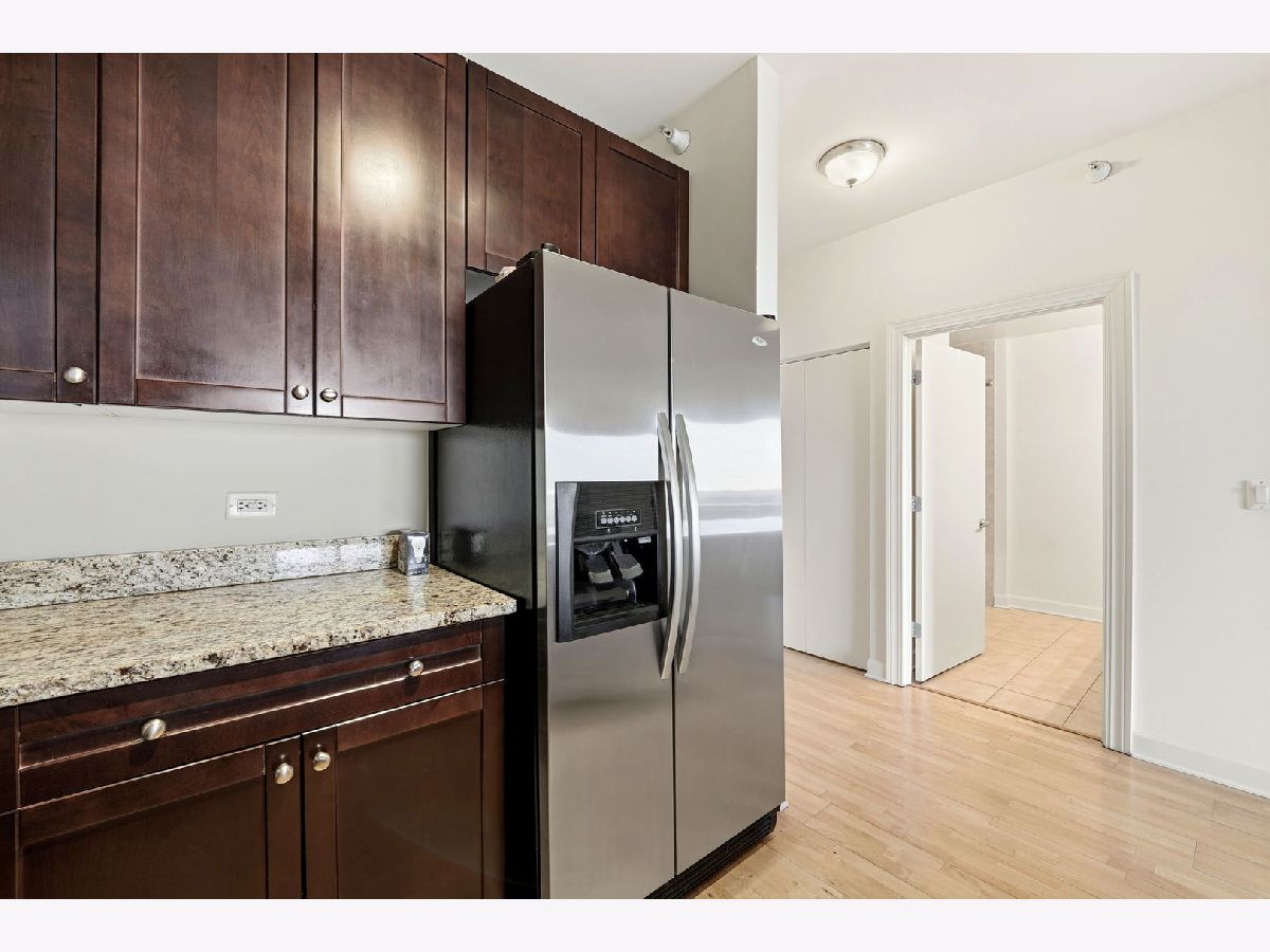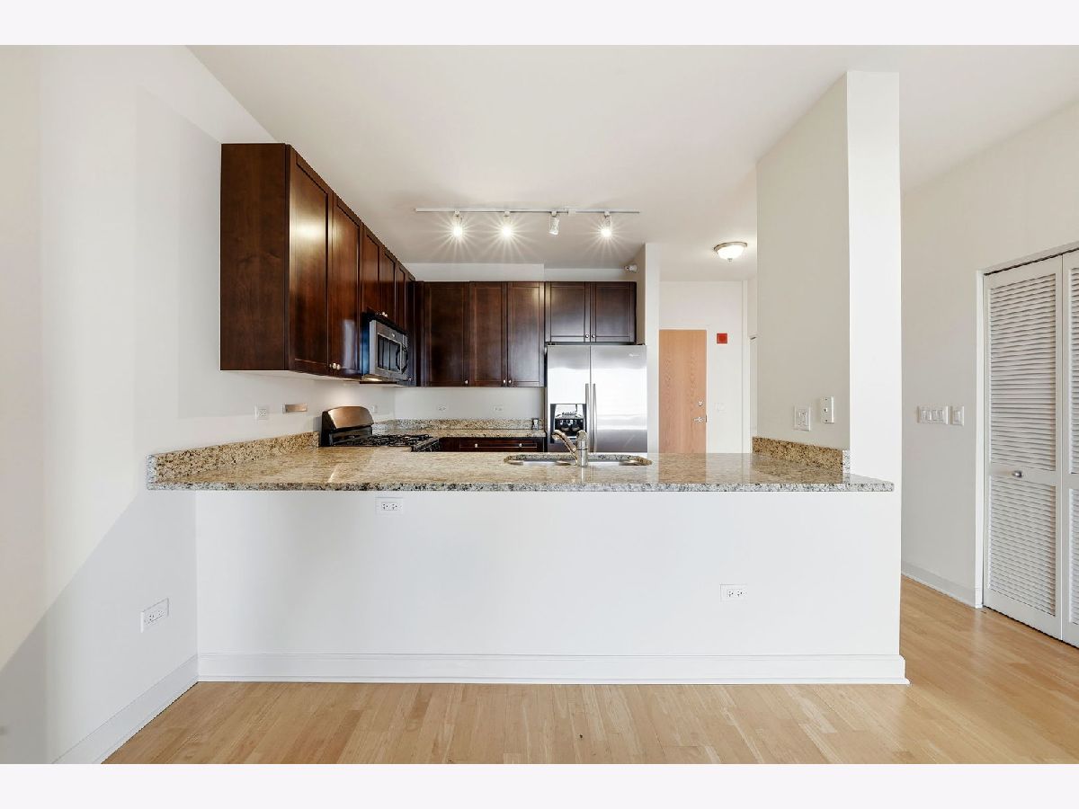 Step into this prime one-bedroom condo in one of River North's most desirable pockets. Freshly painted and meticulously maintained by its original owner, this home features an open-concept kitchen and living area that offers flexibility for comfortable city living. A private north-facing balcony provides open views and excellent natural light while overlooking a quiet stretch of the neighborhood. The spacious bedroom accommodates a king-size bed and includes a large walk-in closet. Additional highlights include in-unit washer and dryer, a soaking tub, extra storage on the first floor, low HOA assessments, and parking included in the price. Ideally located just steps from the Riverwalk and Ward Montgomery Park, with easy access to the West Loop, major streets, and River North favorites including Mr. Beef, Avli Greek, and OUD Coffee & Cafe, plus a building fitness center and close proximity to East Bank Club. Unit is Vacant and easy to show! Come check it out today!