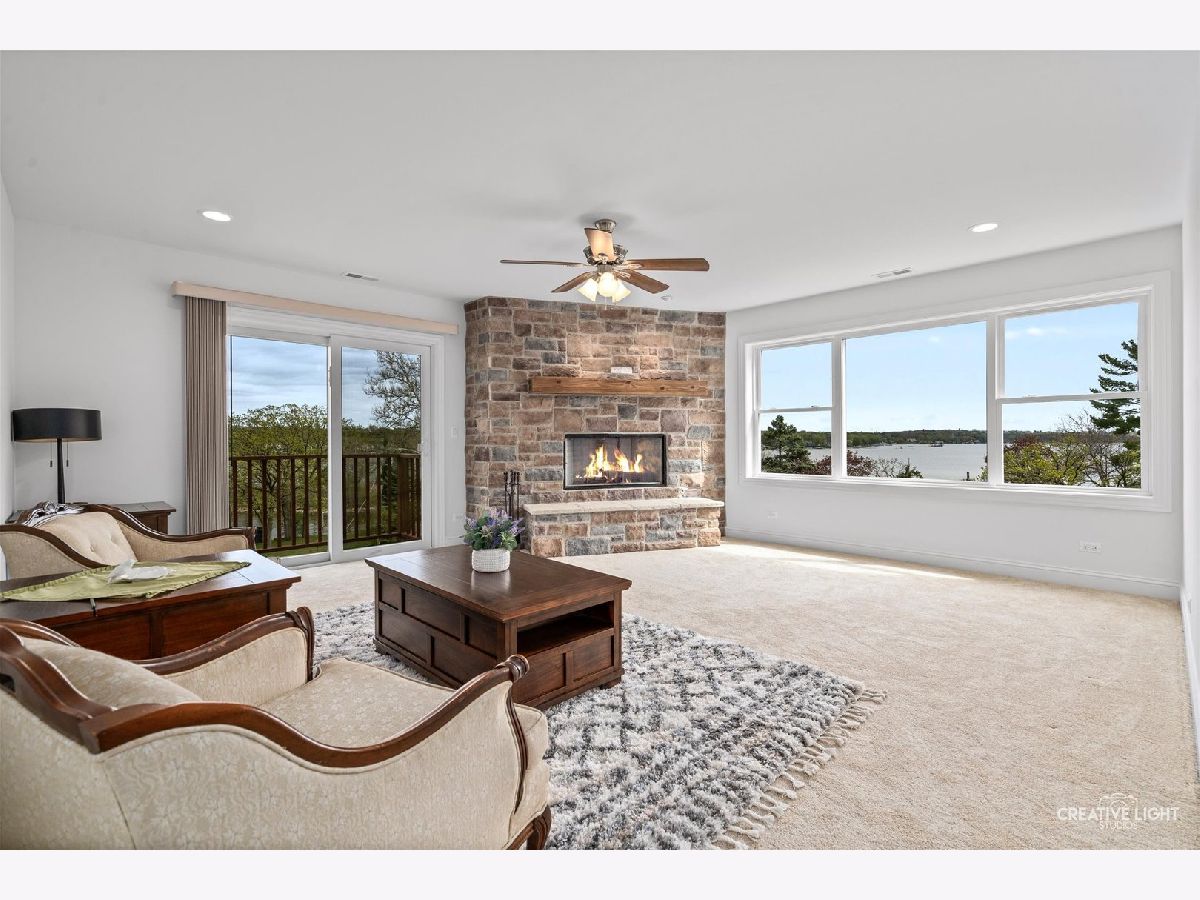 Year-Round Vacation Living at its Finest! This stunning, brand-new and never lived in custom lake home is loaded with upgrades and has some of the most breathtaking panoramic views of Wonder Lake you can find! This quality-built home was just recently finished and includes a large additional lot behind it that provides easy access directly across the street from the beach and White Oaks Park Boat Launch! Make it yours and move right in, or use it as an investment property, the possibilities are endless! This home is filled with windows and flooded with warm natural sunlight. The spacious main level is beautifully crafted and open concept with a light and bright living room open to a formal dining room perfect for entertaining. The designer kitchen is a chef's dream and boasts high end 42-inch cabinets, custom tile backsplash, stainless steel appliances, a separate cooktop with range hood, farmhouse sink, and granite countertops! Head out the sliding glass doors, breathe in the fresh air and relax on the home's expansive main level deck, perfect for outdoor entertaining while taking in the incredible views of the water. Upstairs, you will find even more panoramic views as you enter the home's large family room, highlighted by a striking floor to ceiling stone fireplace and access to an additional private balcony overlooking the lake. Head down the hall into the home's luxurious primary suite complete with its own balcony, a spa-like en-suite bath with double sinks and a walk-in shower and its own private balcony perfect for morning coffee or that evening glass of wine. There are two additional bedrooms and another full bath, perfect for the kids or out of town guests. The convenient second-level laundry room is equipped with a new washer and dryer and has extra cabinets for storage! XL 2.5 car garage has plenty of room for the boat and all your toys as well! Wonder Lake is an 840-acre private lake, renowned for boating, waterskiing, and terrific fishing. Weekly ski shows, the yacht club, and the Sunday morning sailboat races add to the charm of this vibrant lake community. Don't miss your chance to enjoy the best of lakeside living and creating memories that will last a lifetime!
