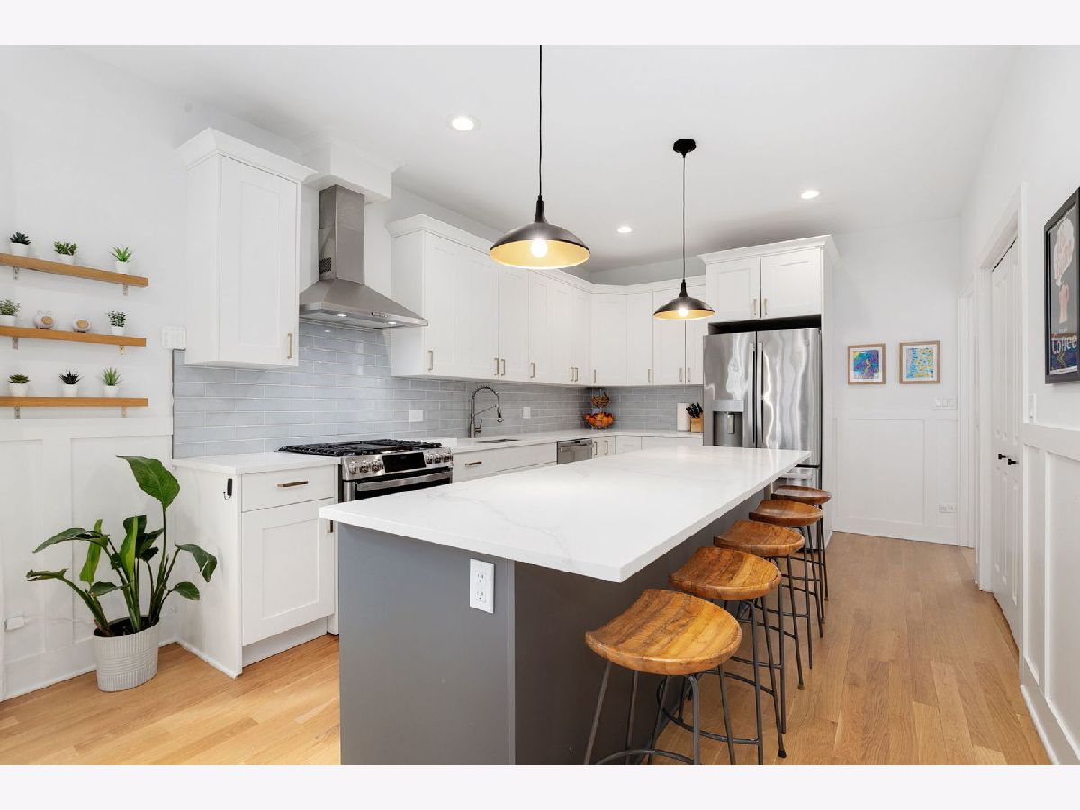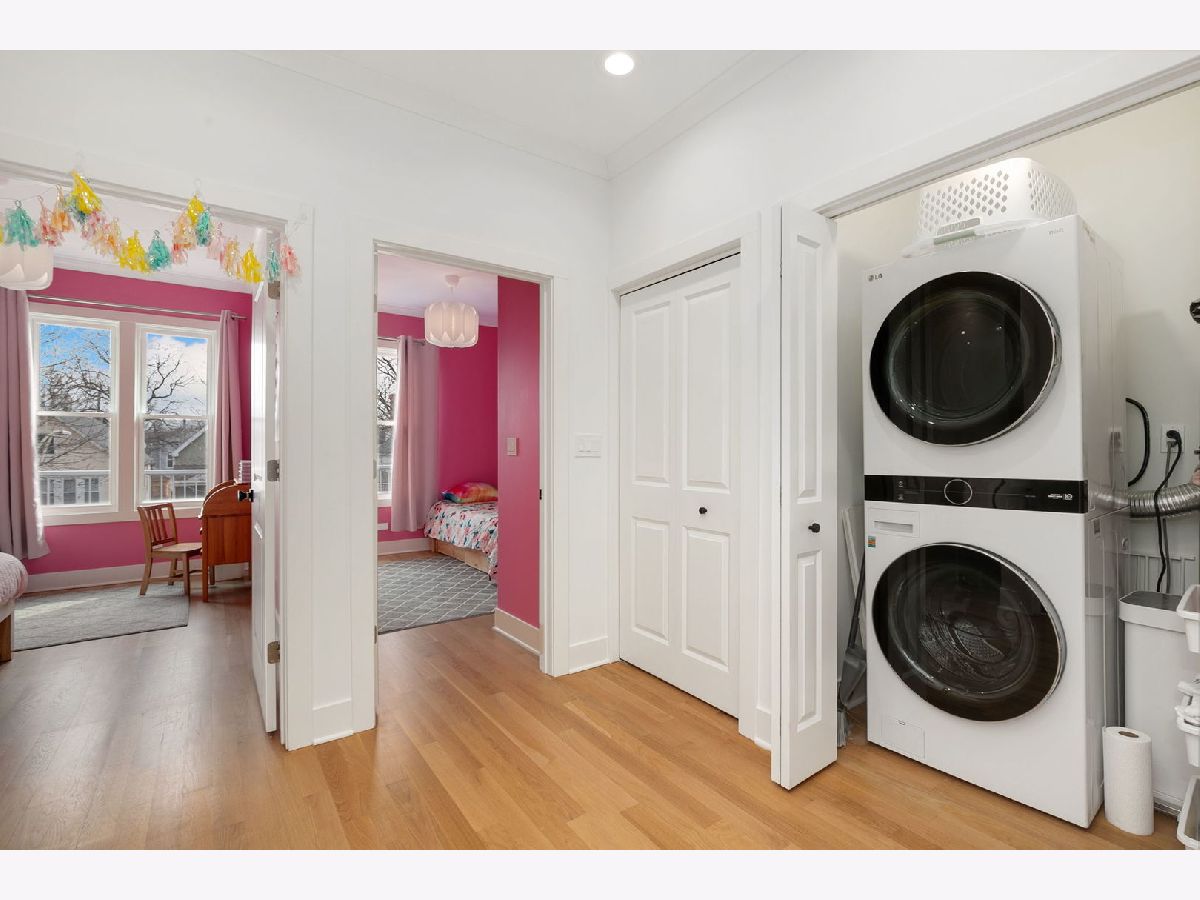 Stunning, fully renovated 4-bedroom, 3.5-bath home offering approximately 2,496 sq ft of bright, airy living space. This 2023 full gut rehab showcases modern finishes throughout, including beautiful white oak floors and thoughtfully designed living areas perfect for today's lifestyle. The chef's kitchen features stainless steel appliances (all new in 2023), crisp white cabinetry, and sleek countertops-ideal for both everyday living and entertaining. Upstairs, the spacious primary suite offers dual walk-in closets and a luxurious modern bath with an oversized walk-in shower. Two additional bedrooms, a full bathroom, and a convenient second-floor laundry closet complete the level. The full, finished basement adds incredible versatility with additional living space and a full bathroom with shower-perfect for a recreation room, home office, or guest suite. Major updates include new furnace, A/C condenser, water heater, windows, and appliances (all 2023), along with a newer roof (2016). Additional improvements include new copper water service, upgraded 200-amp electrical service, and dual heat pumps with furnaces for year-round comfort. Enjoy the convenience of a 2.5-car garage and a prime location near the Montrose Blue Line, Mayfair Park, and within the Belding School District. Move-in ready and designed to impress!