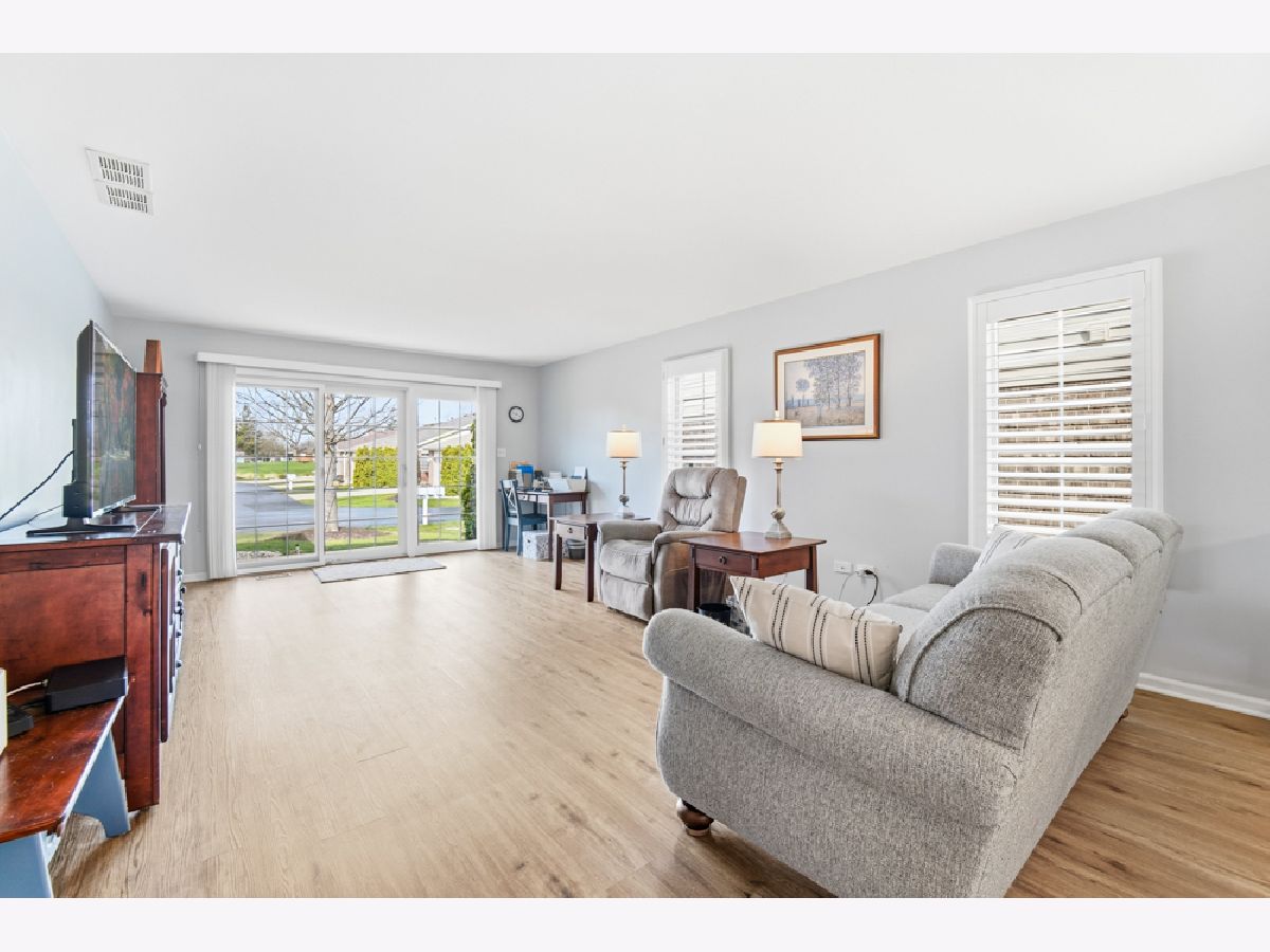 Gorgeous and rarely available 2 bed, 2 bath ranch home located in Crystal Cove. Spacious open floor plan with many windows allowing for so much natural light and great views! Large eat in kitchen, with newer stainless steel appliances, gas cooktop, double oven, plenty of counter space, island, and large walk in pantry. Master bedroom with both walk in closet and master ensuite including double sinks, tub, and walk in shower. Second bedroom and main bath privately located on other end of the home, along with laundry room, and the 2 car garage. The welcoming, covered front porch and back patio are great places to get outside and entertain or just relax and enjoy the surrounding views of the trees, birds, nearby park, pond, and walking trail that connects to the Old Plank Trail leading to Frankfort or Joliet. This very well maintained home was also redone in 2021 with current owner. So many updates include: New flooring throughout, all rooms and cabinets painted, stunning custom Hunter Douglas shutters and blinds, HVAC, HWH, SS Refrigerator, Gas cook top, microwave, garbage disposal, remodeled bathrooms, new handicap toilets, new smoke detectors - all in 2021. Since then a new roof with 20 warranty (2022), washer (2023) sump pump and down spouts (2025) air duct and dryer vents cleaned (4/2026). This home offers so much plus low HOA fees, beautifully kept common areas, plenty of parking for guests, nearby walking and biking trails, short distance to shops, restaurants, schools, Metra, expressway, and so much more! This home is not to be missed! Come see for yourself!