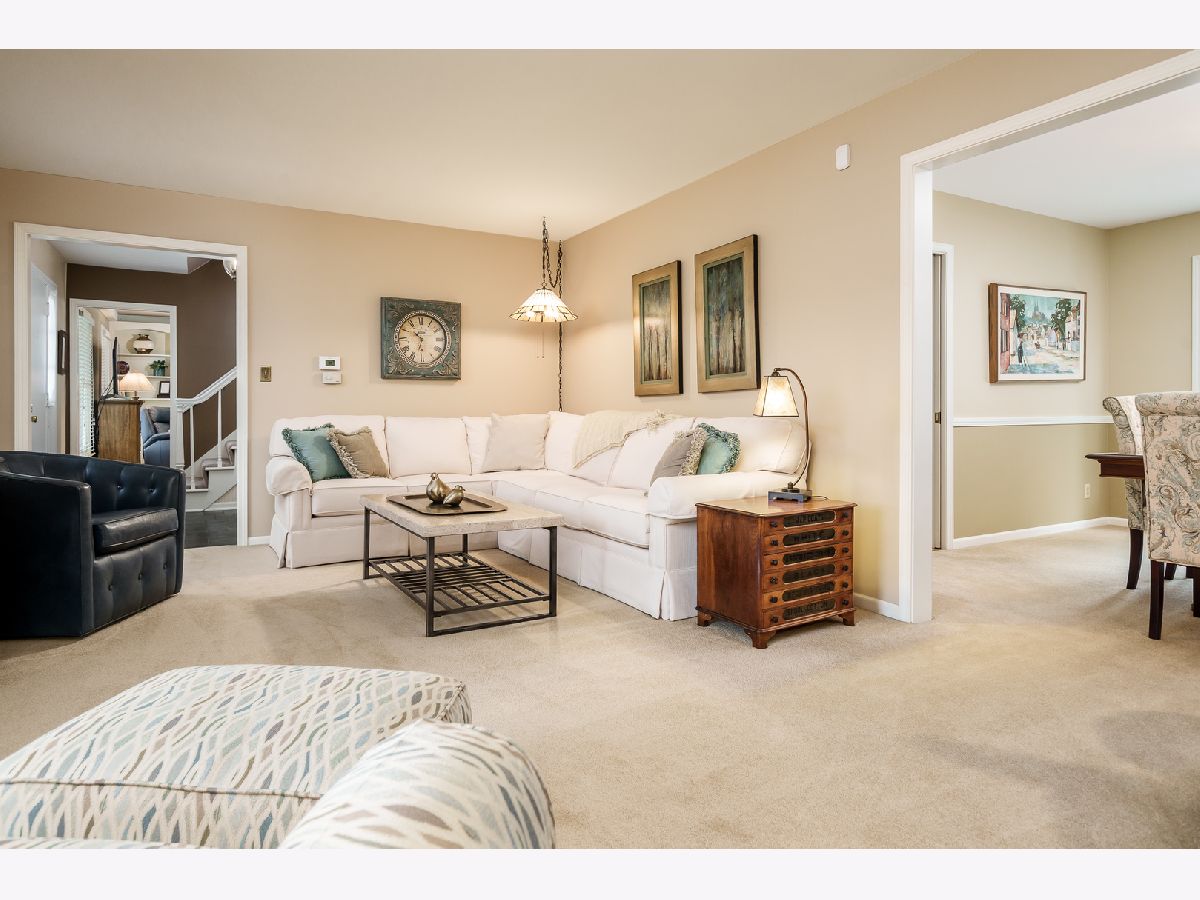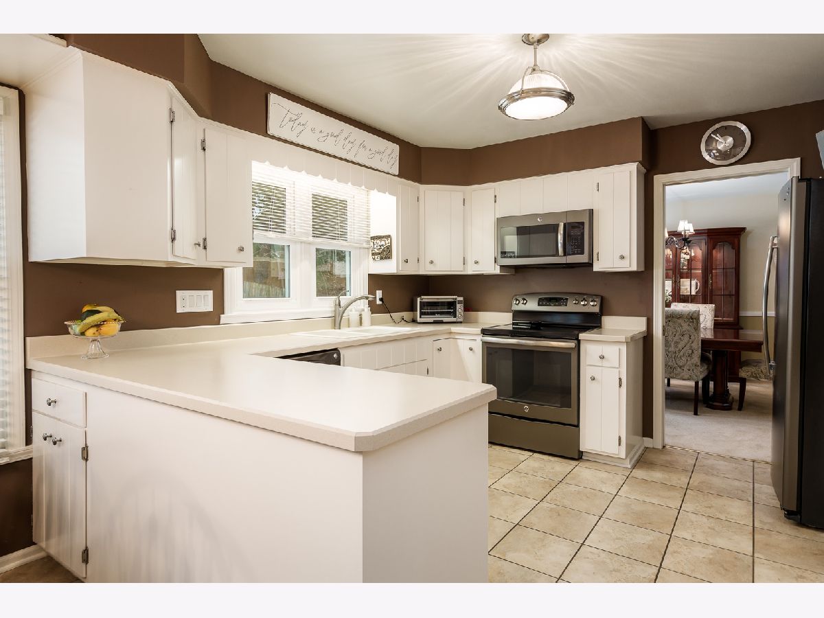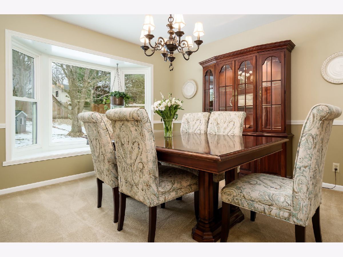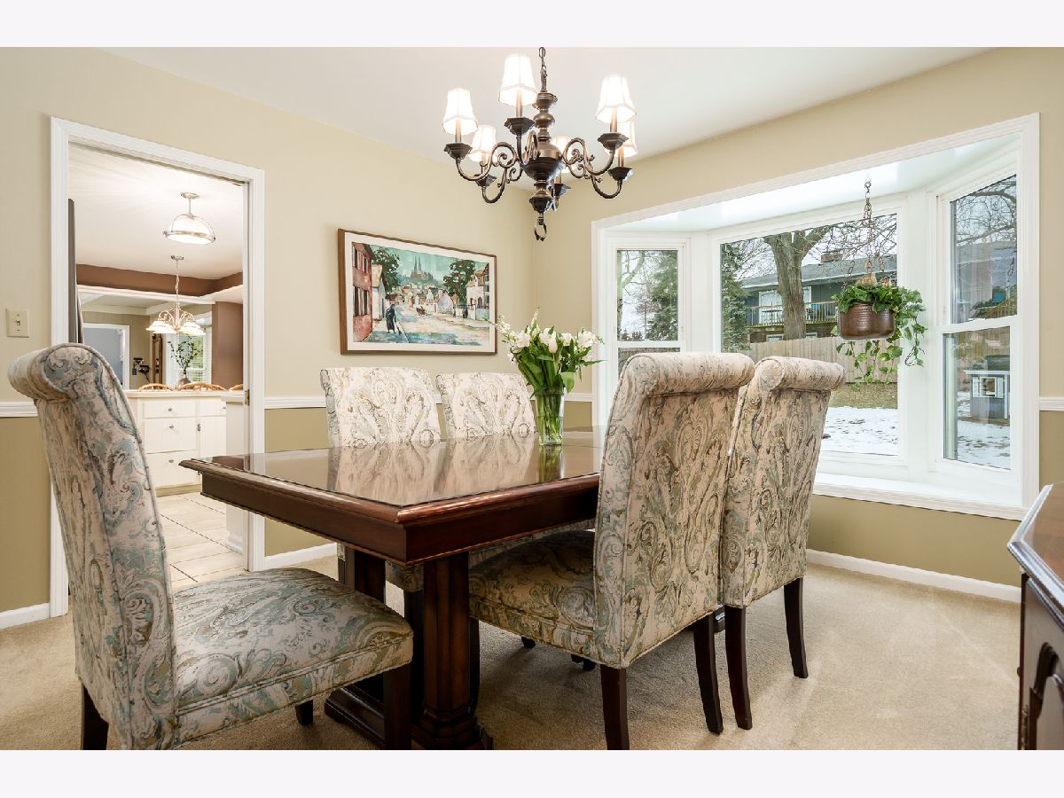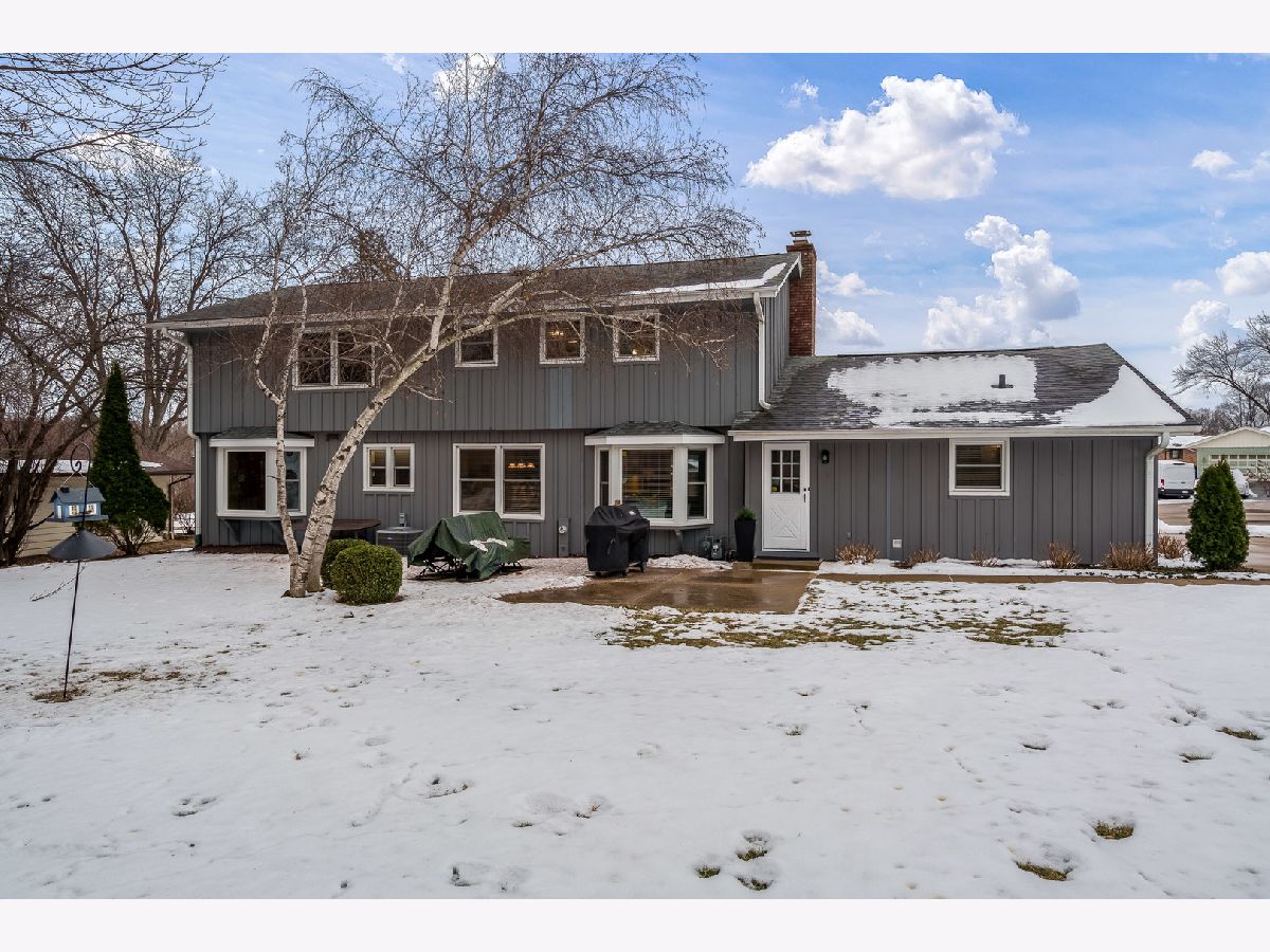 Quality-built two-story John Evans home on a large corner lot, beautifully maintained and move-in ready. The spacious family room features built-ins, a brick fireplace, beam ceiling, and a charming bay window seat overlooking the backyard. The main level also offers a formal living room and dining room with bay window, an eat-in kitchen with appliances included, plus main floor laundry and a half bath. Upstairs you'll find a huge primary suite with private bath, three additional large bedrooms, and a full main bath. The finished lower level includes a large rec room, full bath, and abundant storage. Additional highlights include a spacious 2.5-car garage with excellent storage and a lovely yard. A wonderful combination of quality construction, space, and comfort. Update list and previous radon test in documents. Furniture marked can stay with the property.