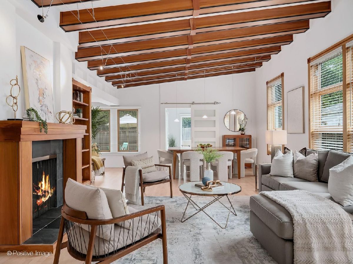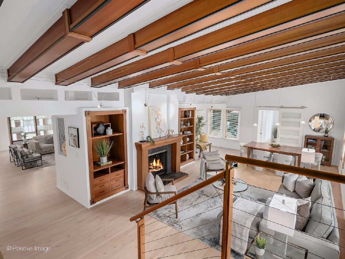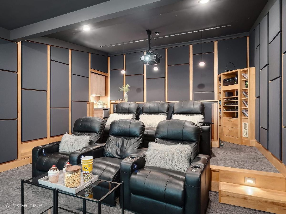 This stunning 4 bedroom, 4 bath contemporary home is in move-in condition and boasts an unbeatable location just two blocks from vibrant downtown Western Springs, the Metra train, shopping, restaurants, coffee shops and Springrock Park! The extra-large lot is a rare find this close to town and has a partially fenced yard, private brick patio, brand-new concrete driveway (4/2026), and an attached 2.5-car garage. The inside is stunning with intriguing architectural features including an abundance of over-sized windows allowing beautiful views and natural light throughout the home. The dramatic open-concept living and dining rooms showcase soaring ceilings, exposed beams, a fireplace, and custom built-ins. The kitchen opens seamlessly to the family room and offers a large breakfast bar, custom cherry cabinetry, loads of counter space, double ovens, desk area, and direct patio access. The spacious foyer has garage access and a coat closet, while impeccably refinished maple floors (4/2026) flow through the main level and up the staircase. A beautiful first floor office/sunroom with patio access adds flexible living space. The first-floor primary suite is a private retreat featuring a walk-in closet with built-ins, double vanity, whirlpool tub, and separate shower. Another standout feature is the spectacular private theatre room complete with a 10' acoustically transparent projection screen, 11 concealed speakers, reclining theatre seats and bar seating, wet bar, and mini-fridge-an entertainer's dream. The stunning turned maple staircase leads upstairs to three more generously sized bedrooms, two updated full baths and a large laundry room. The home also offers exceptional room sizes, functionality with zoned HVAC, two furnaces, two central air systems, two tankless water heaters, central vacuum, two laundry/utility rooms, and a partially finished basement with a bonus room ideal for an office, gym, playroom or storage, along with the second laundry area. The size, condition, architectural features, amenities, natural light, and in-town convenience make this exceptional Western Springs home a must-see. The award-winning schools, rec centers, pool, parks, library, Little Theatre, and proximity to bike trails, fitness centers and golf clubs, expressways, 2 major airports and only 20 minutes to the city of Chicago make this an outstanding place to call home.