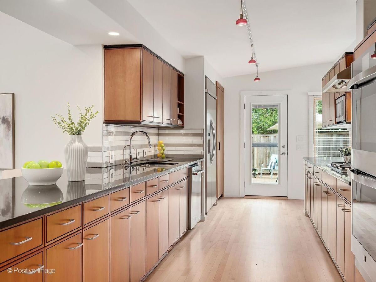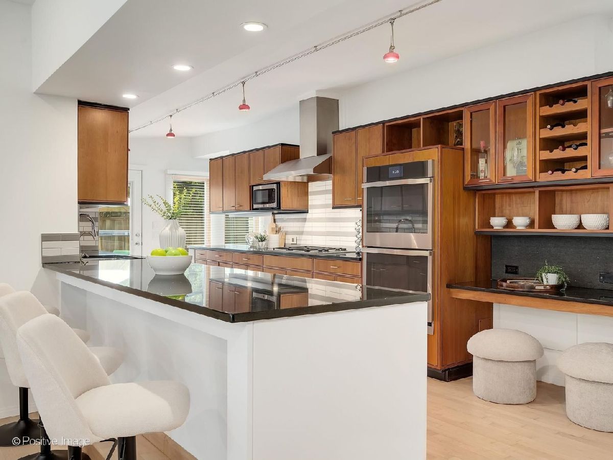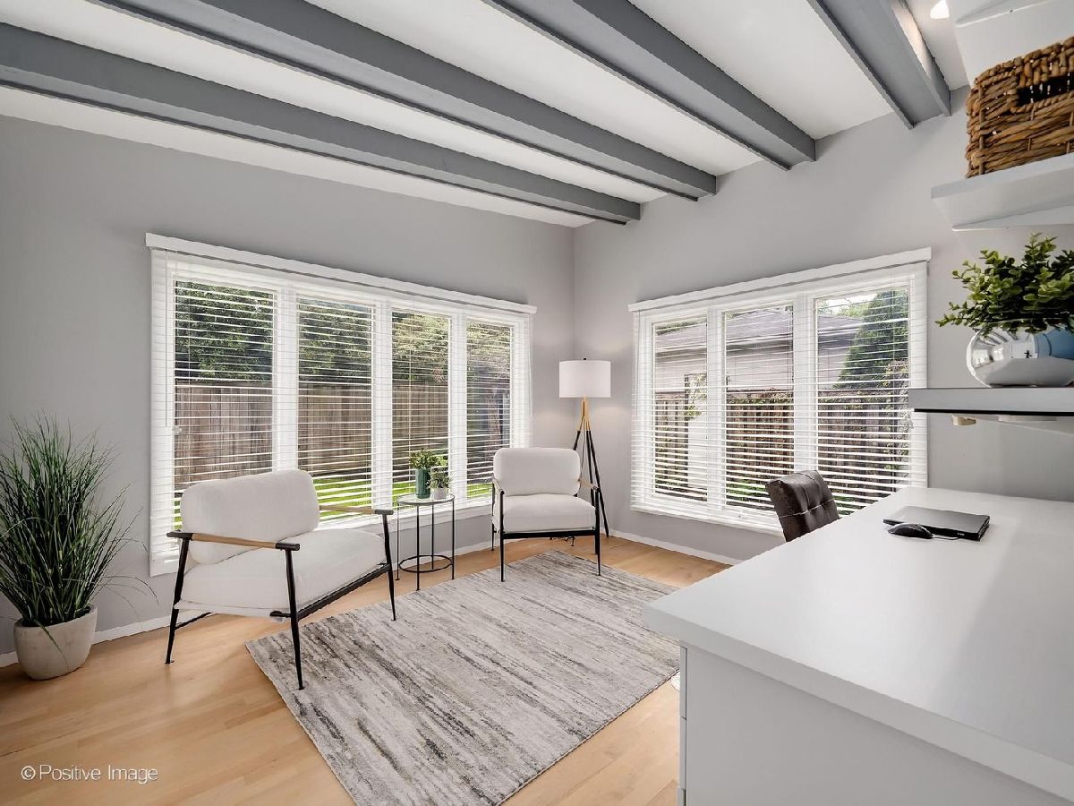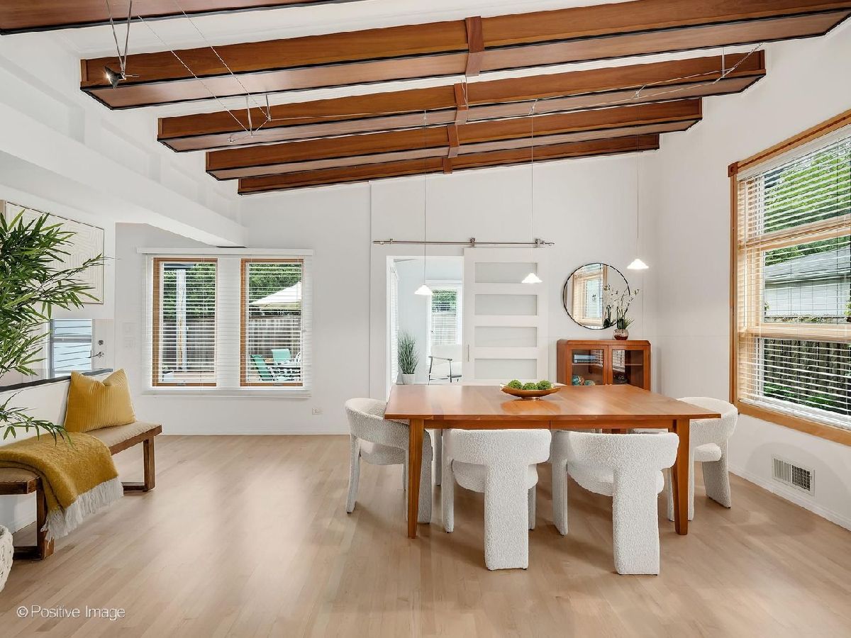 This stunning 4 bedroom, 4 bath contemporary home is in move-in condition and boasts an unbeatable location just two blocks from vibrant downtown Western Springs, the Metra train, shopping, restaurants, coffee shops and Springrock Park! The extra-large lot is a rare find this close to town and has a partially fenced yard, private brick patio, brand-new concrete driveway (4/2026), and an attached 2.5-car garage. The inside is stunning with intriguing architectural features including an abundance of over-sized windows allowing beautiful views and natural light throughout the home. The dramatic open-concept living and dining rooms showcase soaring ceilings, exposed beams, a fireplace, and custom built-ins. The kitchen opens seamlessly to the family room and offers a large breakfast bar, custom cherry cabinetry, loads of counter space, double ovens, desk area, and direct patio access. The spacious foyer has garage access and a coat closet, while impeccably refinished maple floors (4/2026) flow through the main level and up the staircase. A beautiful first floor office/sunroom with patio access adds flexible living space. The first-floor primary suite is a private retreat featuring a walk-in closet with built-ins, double vanity, whirlpool tub, and separate shower. Another standout feature is the spectacular private theatre room complete with a 10' acoustically transparent projection screen, 11 concealed speakers, reclining theatre seats and bar seating, wet bar, and mini-fridge-an entertainer's dream. The stunning turned maple staircase leads upstairs to three more generously sized bedrooms, two updated full baths and a large laundry room. The home also offers exceptional room sizes, functionality with zoned HVAC, two furnaces, two central air systems, two tankless water heaters, central vacuum, two laundry/utility rooms, and a partially finished basement with a bonus room ideal for an office, gym, playroom or storage, along with the second laundry area. The size, condition, architectural features, amenities, natural light, and in-town convenience make this exceptional Western Springs home a must-see. The award-winning schools, rec centers, pool, parks, library, Little Theatre, and proximity to bike trails, fitness centers and golf clubs, expressways, 2 major airports and only 20 minutes to the city of Chicago make this an outstanding place to call home.