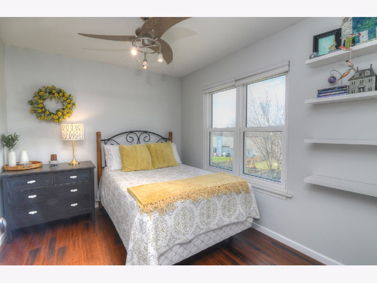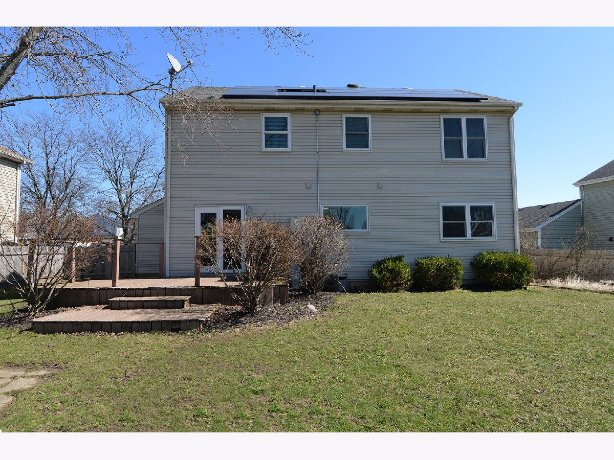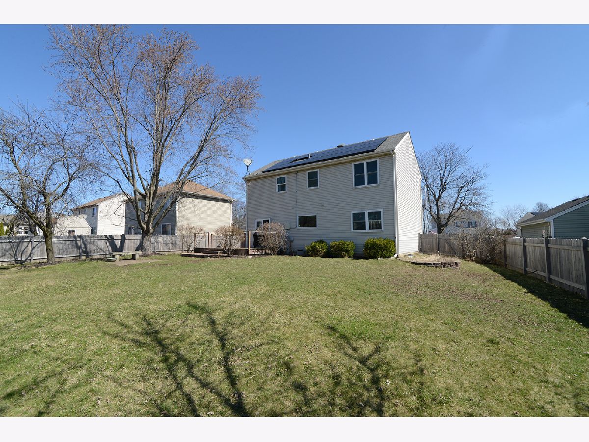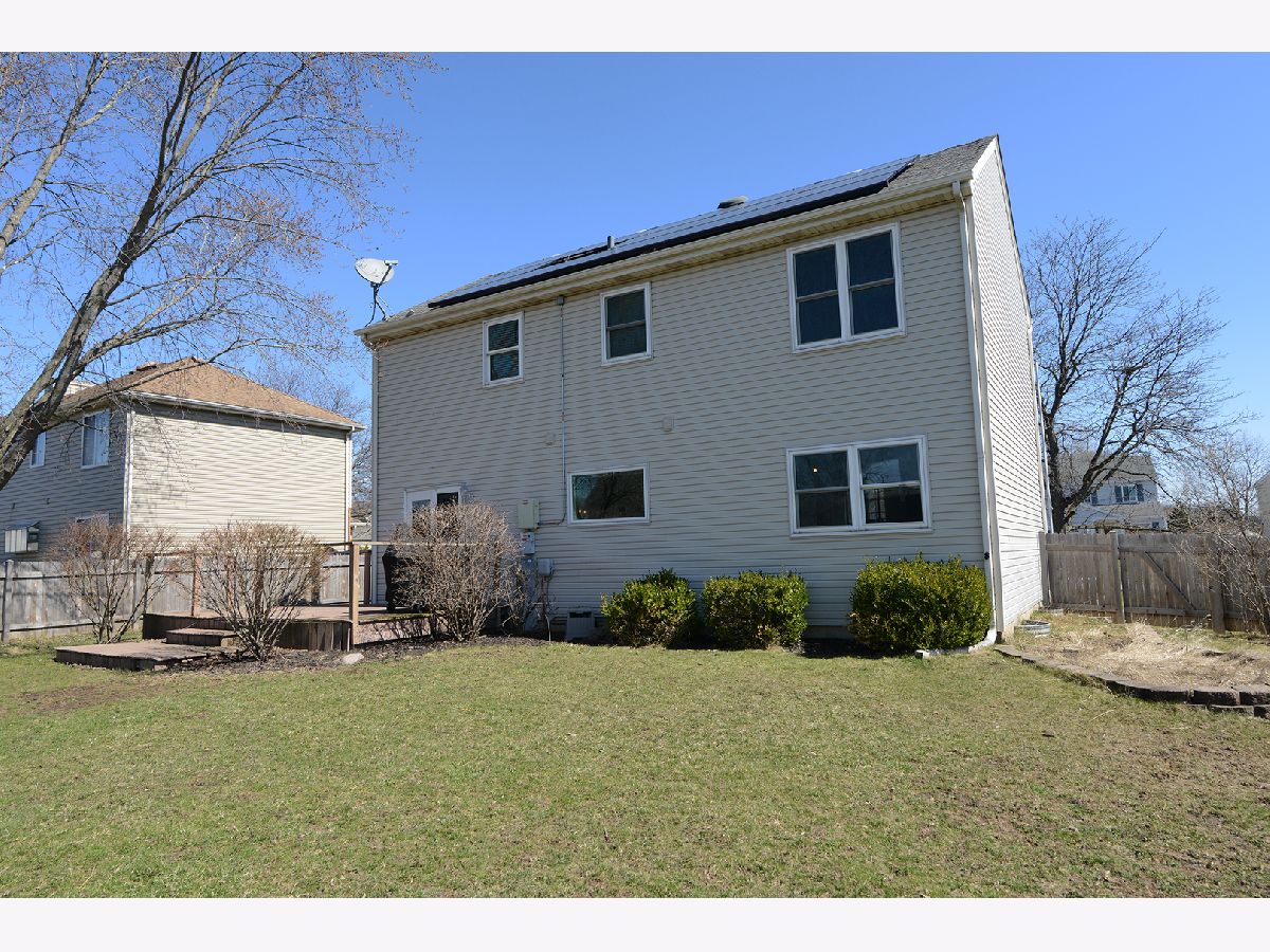 Beautiful two-story home featuring distressed pine hardwood floors throughout the main level and an open, flexible floor plan perfect for everyday living and entertaining. The second floor offers four generously sized bedrooms and two full bathrooms. The finished basement provides additional living space with a large recreation room, full bath, and laundry area-ideal for guests, a home office, or play space. Enjoy a prime location within walking distance to the park and close to all schools, with a short bike ride or drive to park district facilities, shopping, and dining. Energy-efficient, fully owned solar panels (installed in 2018) offer exceptional savings, with current electric bills averaging just $12-$14 per month. Major updates include: roof and solar panels (2018), bedroom carpet (2018), hot water heater (2020), microwave (2023), updated upstairs hall bath with new tub and tile (2023), and refrigerator (2025). The kitchen features a movable island for added storage and flexibility. Garage updates include an overhead door (approx. 8 years old) with recently replaced cables and springs. Large fenced in yard with a spacious deck perfect for outdoor fun! Hurry Home!