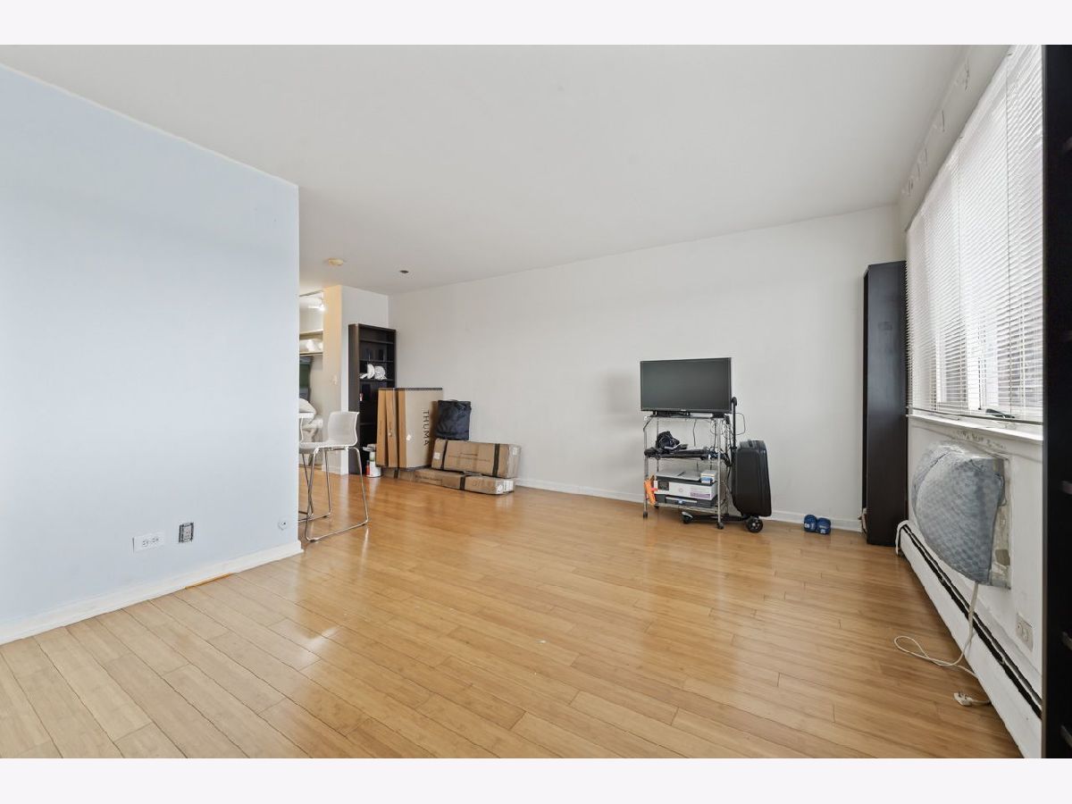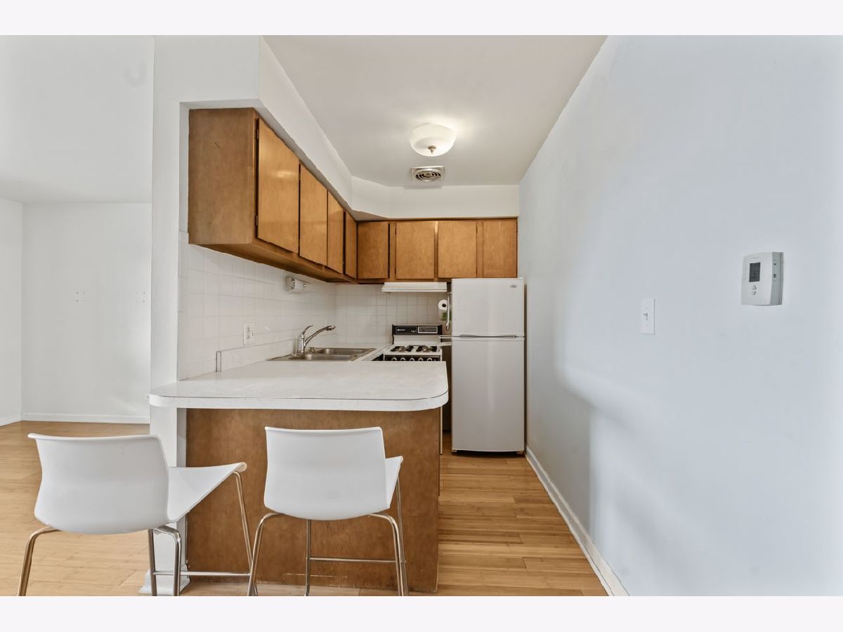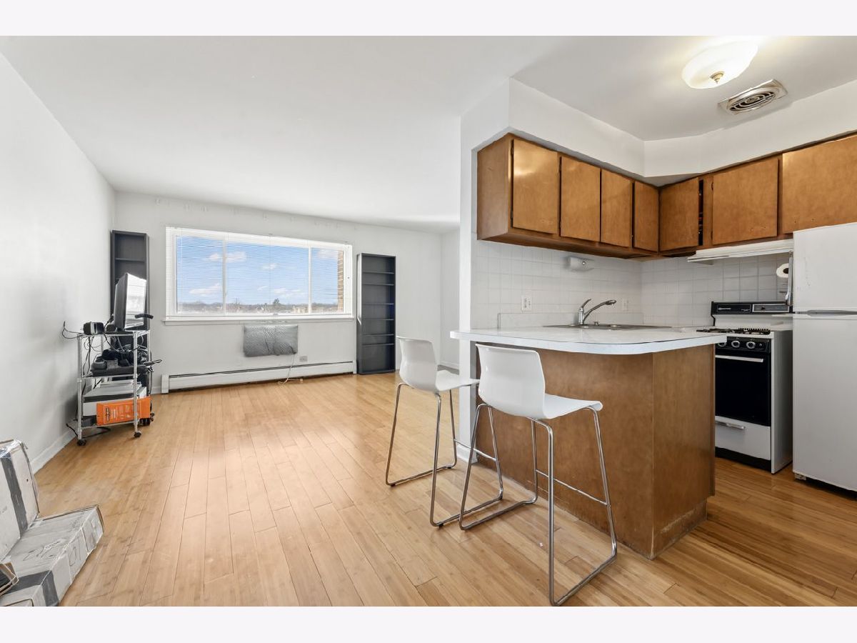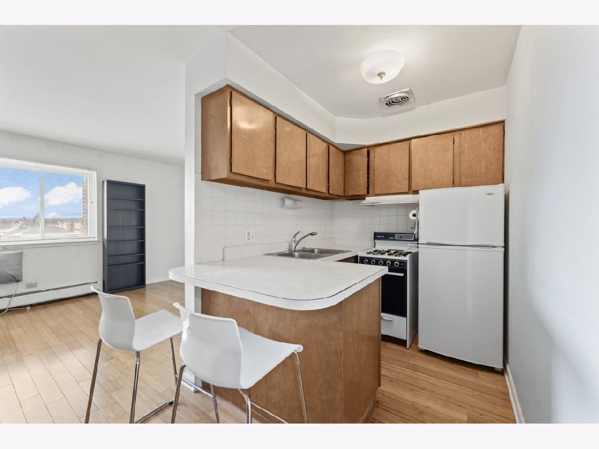 Tucked back in this peaceful enclave walking distance to stores, banks, restaurants and 6 minutes to Ohare, this studio condo is a great opportunity to own your own property. Bamboo flooring from the entry through the living area with extra in the storage unit. The kitchen is the perfect size for one person. The parking space is directly in front of the building across the street and is extra wide. There is a large community terrace between the 4 buildings that is perfect for enjoying in fairer weather. Laundry on the main floor along with the storage space. Elevator building. No rentals allowed.