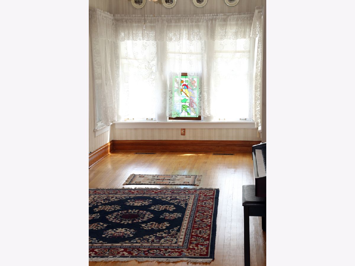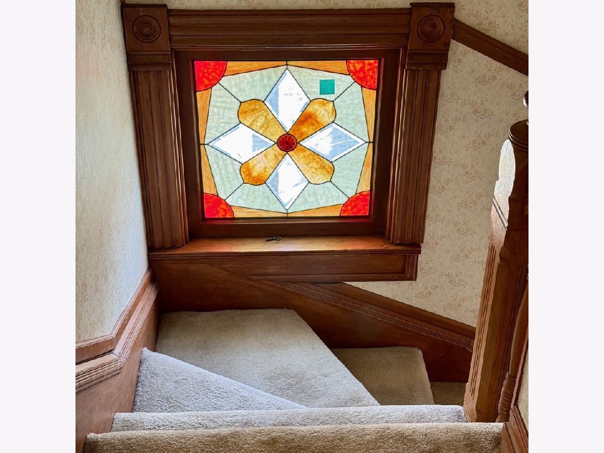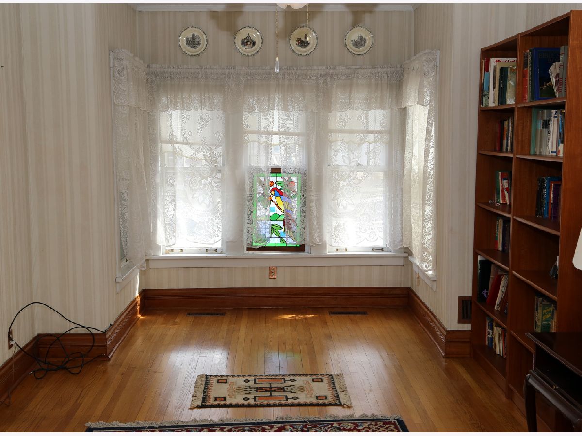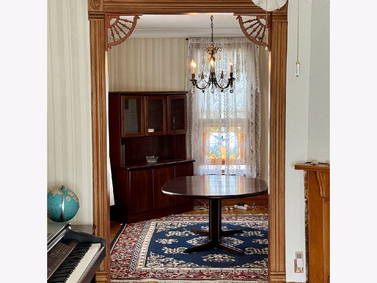 This absolutely charming house is a Mayfair Victorian showplace! It features gorgeous hardwood flooring throughout most of the first floor, elegant wood trim, crown molding and wood doors. There are loads of windows throughout including some beautiful stained glass windows, angled second floor ceilings and tall ceilings throughout the first floor. There is a sun drenched sitting room with natural light from the front yard. Adjacent to it is the living room which has a beautiful corner fireplace and a ceiling fan with a light. The large separate dining room is adjacent to the living room. There is a beautiful sunny kitchen with an eating area, with outside entry that leads to a balcony. The kitchen has wooden cabinetry, a ceiling fan with a light, and a double sink. There is an adjacent powder room with a window. The second floor master bedroom has large windows, plenty of closet area including a deep walkin closet, and an arched ceiling. The full hall bathroom has a vanity, a sink, a linen closet, a window and a bathtub/shower. The second bedroom has an arched ceiling, a ceiling fan with a light, a big window, and a nice sized closet. The third bedroom has a large window, a closet, and an arched ceiling. The full basement has a spacious finished room/den with a storage area and there is a large 21x19 foot unfinished area with lots more storage and a door leading outside. There is a detached two car garage with a window, a partial shared backyard fence, a total of three entry/exit doors to the house, a cozy front enclosed sitting porch and more! There is a park a short walking distance away and lots of shopping and restaurants nearby. This home is a true gem. It is being sold as-is.