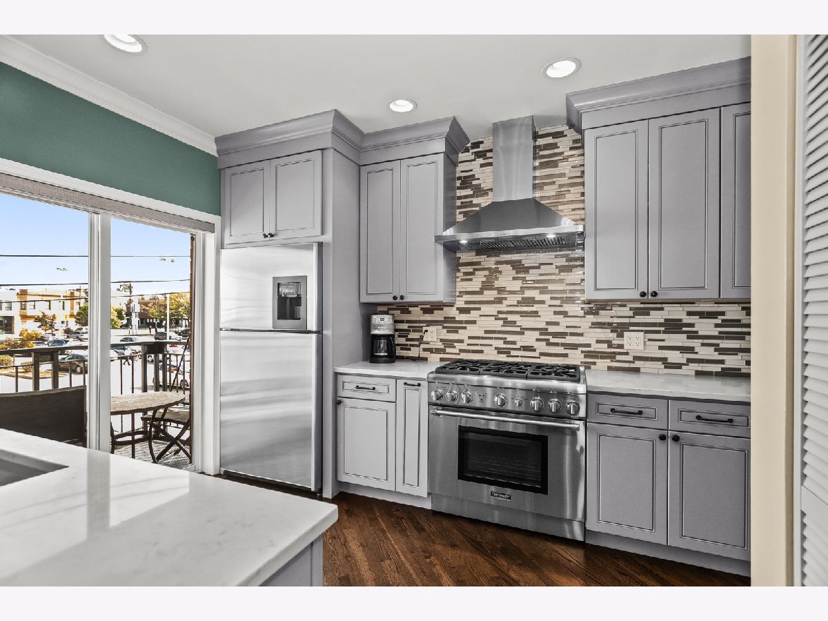 MULTIPLE OFFERS RECEIVED Luxury and comfort converge in this stunning, recently remodeled 3-bed, 3-bath end-unit townhome, ideally located where Ravenswood, Andersonville, and Uptown meet. This sophisticated home offers a private rooftop deck, attached 2-car garage, and an additional exterior parking space. Set in the gated, beautifully landscaped Greenview on the Park community, this residence enjoys one of the most desirable and quiet locations in the complex, with gated rear access to both the garage and exterior parking spot, plus one of five guest parking spaces right next to the home; perfect for when guests visit. A private gated front yard, professionally landscaped (with potential to convert to grass), adds charm and outdoor space. Inside, thoughtful upgrades abound. The first floor is fully renovated, featuring a family/media room, coat closet with storage under the stairs, a third bedroom, heated tile floors throughout, and a spa-like bathroom with rain shower. The oversized attached garage includes shelving for storage with space for bikes and seasonal gear. The second level offers expansive, sun-filled living, kitchen, and dining areas with 9' ceilings, hardwood floors, custom drapery, and a cozy gas fireplace. The open kitchen is a chef's dream: quartz countertops, soft-close cabinetry with pull-outs, drawer microwave, touchless faucet, pantry, LED under-cabinet lighting, and a bar-height counter for four. Step out to the spacious deck to grill; perfect for al fresco dining. On the third floor, two large bedrooms each offer walk-in closets and ensuite bathrooms. The luxurious primary suite includes dual vanities, a walk-in shower, and a linen closet. The 4th level boasts an additional storage space plus a private rooftop deck (new in 2021) with sweeping views-an ideal retreat for morning coffee or viewing the sunset. A new roof (2020) beneath adds long-term peace of mind. With north, south, and east exposures, oversized windows, and 9' ceilings on the main levels, natural light fills every corner. Smart-home features include central vacuum, a Honeywell programmable thermostat, and Xfinity security system with cameras. Walk to parks, cafes, top-rated schools, and transit. Zoned for Ravenswood Elementary and within walking distance to Lycee Francais, German International School, Rogers Park Montessori, Chicago Waldorf School and several excellent daycare centers. Easy access to the Brown, Red, and Purple Lines, the Ravenswood Metra, 90/94 and Lake Shore Drive. This move-in ready home offers elegant finishes, abundant space, and unbeatable convenience-a perfect fit for those who want luxury living in a vibrant neighborhood. Well-run HOA; only 10% of units may be rented (currently none are).