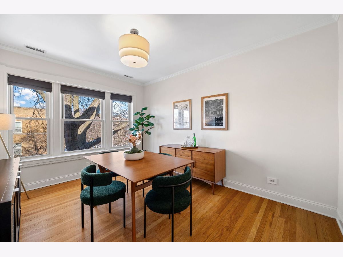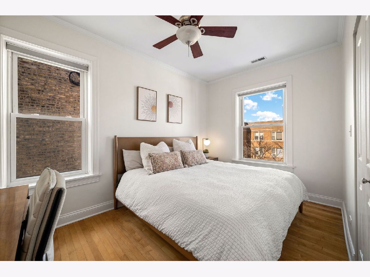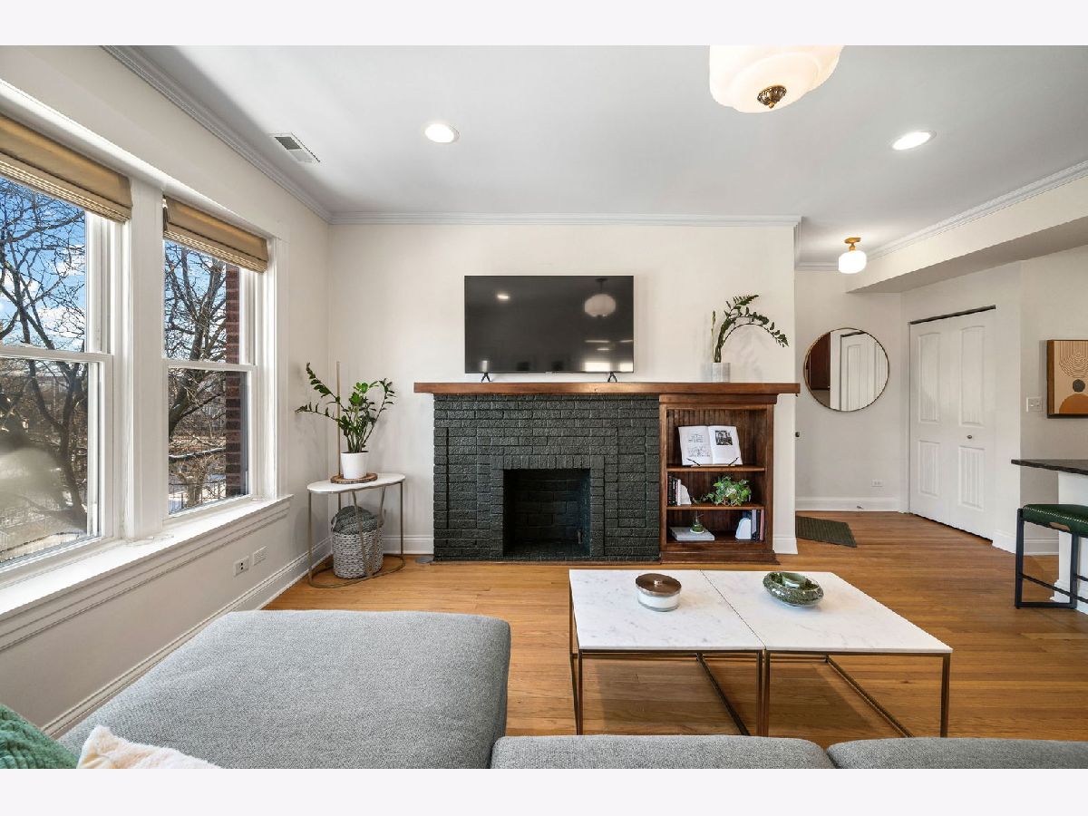 ***MULTIPLE OFFERS RECEIVED. HIGHEST AND BEST CALLED FOR BY SUNDAY, JANUARY 25TH @ 12 NOON. NO ESCALATION CLAUSES OR LOVE LETTERS.*** Live among the treetops in this light-filled, top-floor corner condo in the heart of Ravenswood. Set on a serene, one-way, tree-lined street, this spacious 2BD/1BA home is the largest floor plan in the building (1,000+ sqft) and feels like a private retreat thanks to windows on multiple exposures and an effortless flow from the living spaces to the sleeping quarters. With only two units per floor, the sense of privacy and tranquility is unmistakable. Vintage charm blends seamlessly with modern conveniences throughout-beautiful solid oak hardwood floors, updated millwork, solid-core doors, in-unit laundry, central HVAC, and stainless steel appliances. The living room is anchored by a charming decorative fireplace framed by original built-in shelving and a classic mantel. Oversized windows invite morning light and open directly onto a covered front porch-an idyllic perch for sunrises and slow mornings. The dining room is equally impressive, offering generous proportions and another wall of oversized windows that fill the home with natural light all day long. Both bedrooms are well-sized, with the secondary comfortably fitting a queen bed and the primary accommodating a king with ease. Each bedroom features extra-deep closets, adding meaningful storage to the home, complemented by a linen closet in the hallway. The full bath is finished with quality tile and timeless details. A second outdoor space-a large, private back deck-provides room for dining, lounging, or container gardening, creating the perfect backdrop for summer evenings. The location is simply outstanding. Just around the corner from the Damen Brown Line and two blocks to the Ravenswood Metra, you're also moments from Mariano's, LA Fitness, Perfect Cup, Platform 47, Del Sur Bakery, and an incredible lineup of local shops and restaurants. Nestled between Lycee Francais and McPherson Elementary, and only a 10-minute stroll to Lincoln Square, this neighborhood offers the best of North Side living. Street parking is consistently easy thanks to the surrounding single-family homes. The building itself is solid and extremely well managed, with incredibly strong reserves and a diligent HOA focused on long-term maintenance. A rare combination of space, character, light, and unmatched walkability-this Ravenswood gem delivers timeless comfort and everyday convenience in one exceptional package. Please note that one of the sellers is a Licensed Real Estate Broker in the State of Illinois.