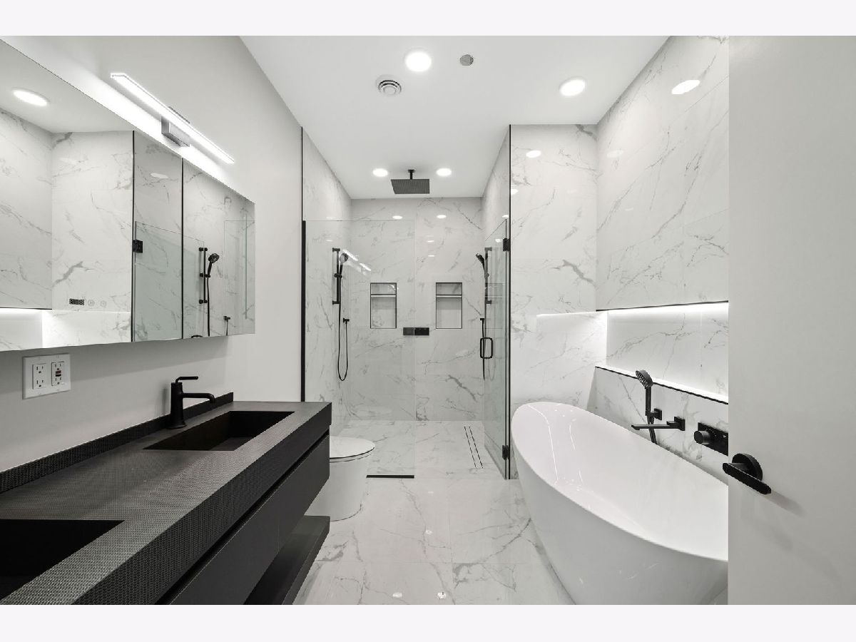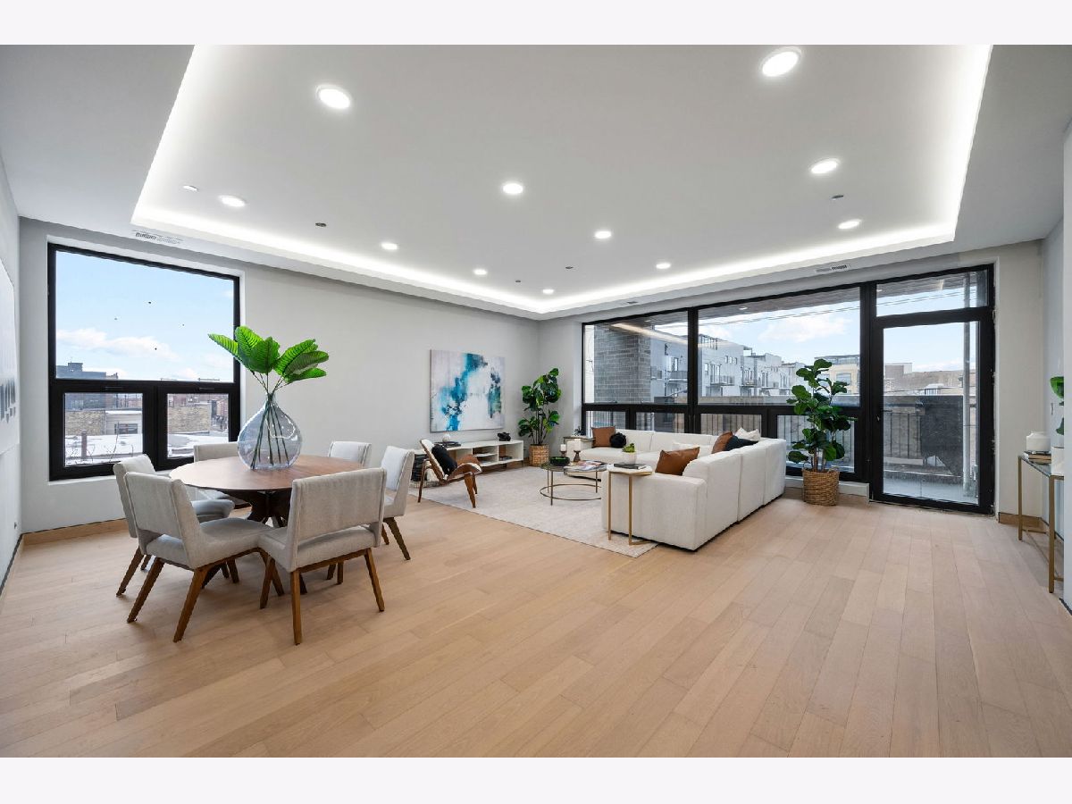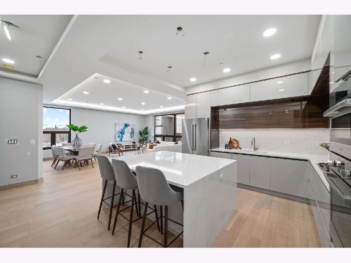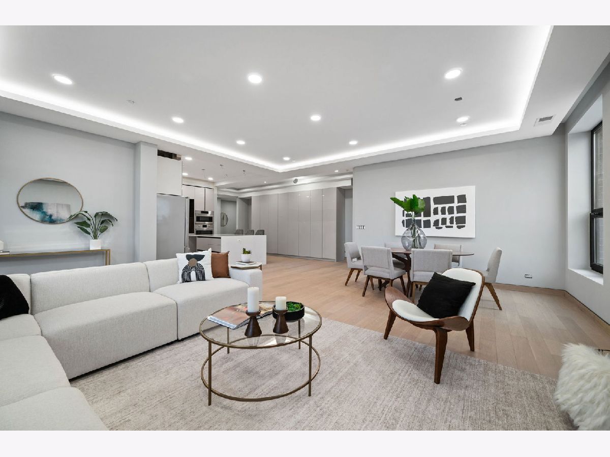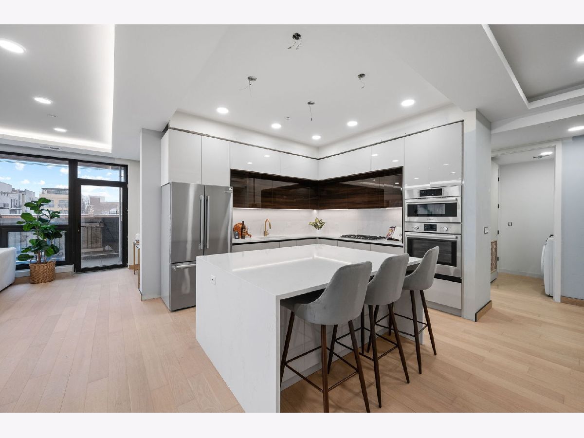 Come experience the pinnacle of modern luxury in this masterfully designed 4-bedroom, 3- full bath condo in East West Town. The entire building is engineered for superior soundproofing with a sealed shell structure, 15-inch blown-in cellulose insulation between floors coupled with open-cell spray foam, Maxxon acoustic soundproofing rubber mattes, 1-inch of Maxxon Gypcrete concrete flooring, and the absence of traditional can lights-ensuring peace and privacy. Crafted with meticulous attention to detail, this residence features an expansive open floor plan with soaring 10-foot ceilings, solid-core 8-foot doors, and floor-to-ceiling European windows that fill the space with natural light while offering superior sound insulation. The chef's kitchen is a showcase of European design, with sleek Marfa cabinetry, oversized quartz countertops with waterfall edges, and a premium stainless steel appliance package-perfect for both everyday living and entertaining. The living room is anchored by a striking feature wall and flows seamlessly onto a covered private balcony, fully gas and electric ready for year-round enjoyment. A dedicated home office with privacy doors provides a quiet workspace without sacrificing bedroom count. Designer bathrooms are spa-inspired, featuring heated floors, large-format tile, double-sink vanities, oversized rain showers with handheld wands, and Japanese smart toilets. Every detail has been optimized for comfort and quality. Custom trim details including matching hardwood baseboards, and curated lighting complete the modern, sophisticated aesthetic. Located in one of Chicago's most vibrant neighborhoods, this home offers premier access to Fulton Market dining, boutique shopping, parks, and the Grand/Milwaukee Blue Line-just 9 blocks away. This is a rare opportunity to own a truly exceptional residence in one of the city's most desirable locations.
