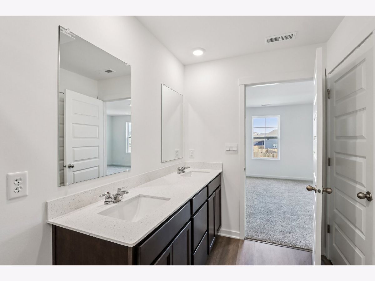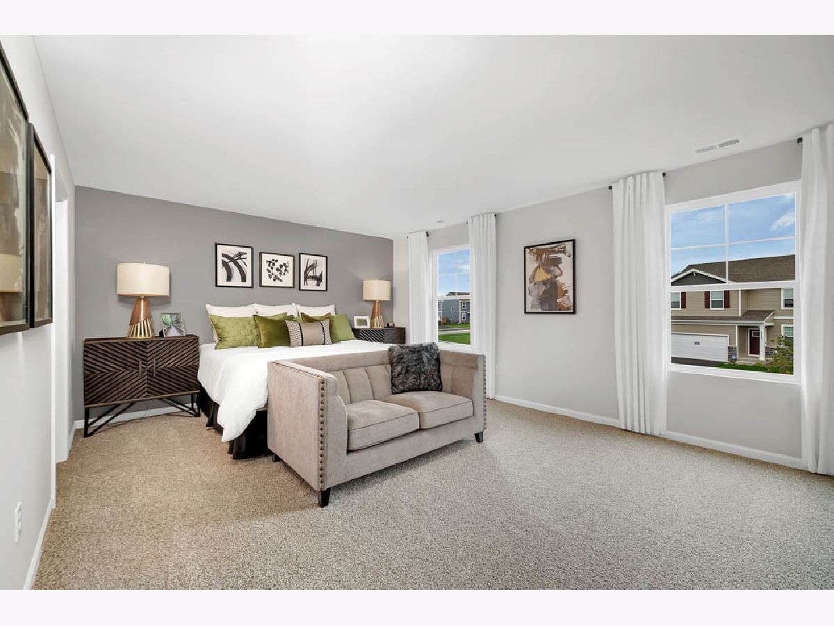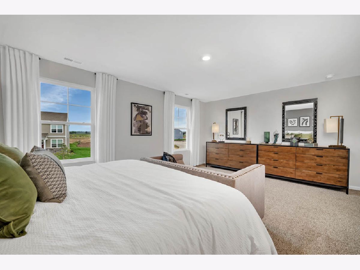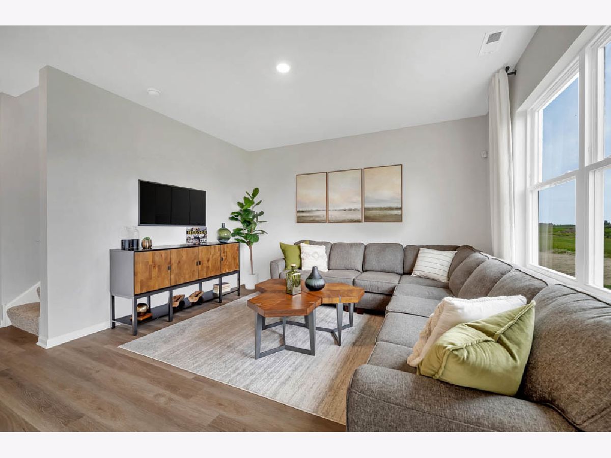 Picture yourself at 468 Vista Drive, Hampshire, Illinois, a beautiful new model home in our Prairie Ridge Community. This two-story home will be ready for a early summer move-in! The Bellamy plan offers over 2,000 square feet of living space with a full basement, flex room, 4 bedrooms, and 2.5 baths. Going through your front door you will find the flex room with lots of natural light. This room can be used as an office, sitting room, or toy room, the possibilities are endless. Continuing down the hall you will enter the open concept great room and kitchen space, your kitchen features designer soft-close cabinetry with quartz countertops, stainless-steel appliances, a large island with bar stool overhang, and easy-to-maintain luxury vinyl plank flooring. Enjoy your private get away with your large primary bedroom and ensuite bathroom with a raised height dual sink, quartz top vanity, and walk-in shower with fiberglass surround and glass shower doors, Convenient walk-in laundry room, 3 additional bedrooms with a full second bath and linen closet complete the second floor. All Chicago homes include our America's Smart Home Technology. Photos are of similar home; actual home may vary.