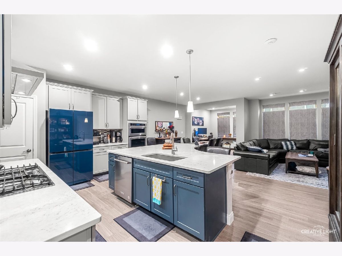 Meticulously maintained townhome in highly sought-after District 204! Built in 2022 and still feels like new, this home offers a bright open floor plan designed for modern living. The gourmet kitchen is a standout, featuring a striking backsplash, Silestone quartz countertops and an oversized island/breakfast bar with sink and stylish blue accent cabinets-perfect for cooking and entertaining. The kitchen seamlessly overlooks the spacious living room, creating a welcoming and functional layout. The large primary suite includes a custom closet system and a private bath with dual vanity, separate shower, and soaking tub. Additional highlights include convenient second-floor laundry, a sunroom, upgraded shelving, smart switches, and the largest-capacity washer and dryer. Enjoy outdoor relaxation on the patio, all in a prime location near Route 34 and 59 close to shopping, restaurants, schools, and more-plus walking distance to the park!