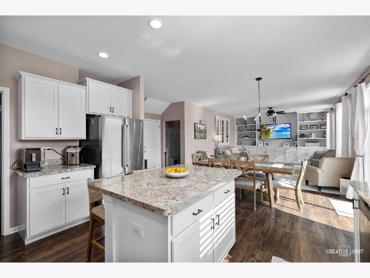 This is the one buyers wait for in sought-after Windstone Place! Welcome to this beautifully maintained 4-bedroom, 2.5-bath traditional home offering 2,600 square feet of thoughtfully designed living space. Designed for today's lifestyle, the open-concept layout seamlessly connects the kitchen, dining area, and family room-creating an ideal setting for both everyday living and entertaining.The kitchen features white shaker cabinetry, modern stone-look countertops, a large center island with seating, stainless steel appliances, recessed lighting, and abundant storage. Rich hardwood flooring and a soft neutral palette create a warm, move-in ready feel throughout the main level. The adjoining family room, complete with custom built-ins and large windows, creates a welcoming space for everyday connection. Upstairs, you'll find four spacious bedrooms - offering space for everyone and everything - and each includes a walk-in closet. The added convenience of second-floor laundry simplifies everyday chores. The primary suite provides a private retreat complete with an en-suite bath. A functional mudroom entry from the attached garage keeps daily life organized. Step outside to the fully fenced backyard with oversized patio on a .29-acre lot-perfect for play, pets, and outdoor gatherings. Move-in ready and located close to shopping, dining, and commuter access, this home offers space, comfort, and everyday practicality.