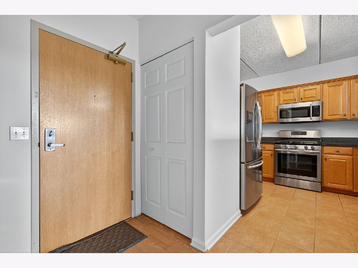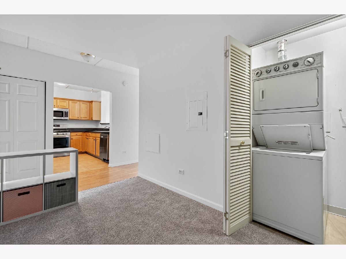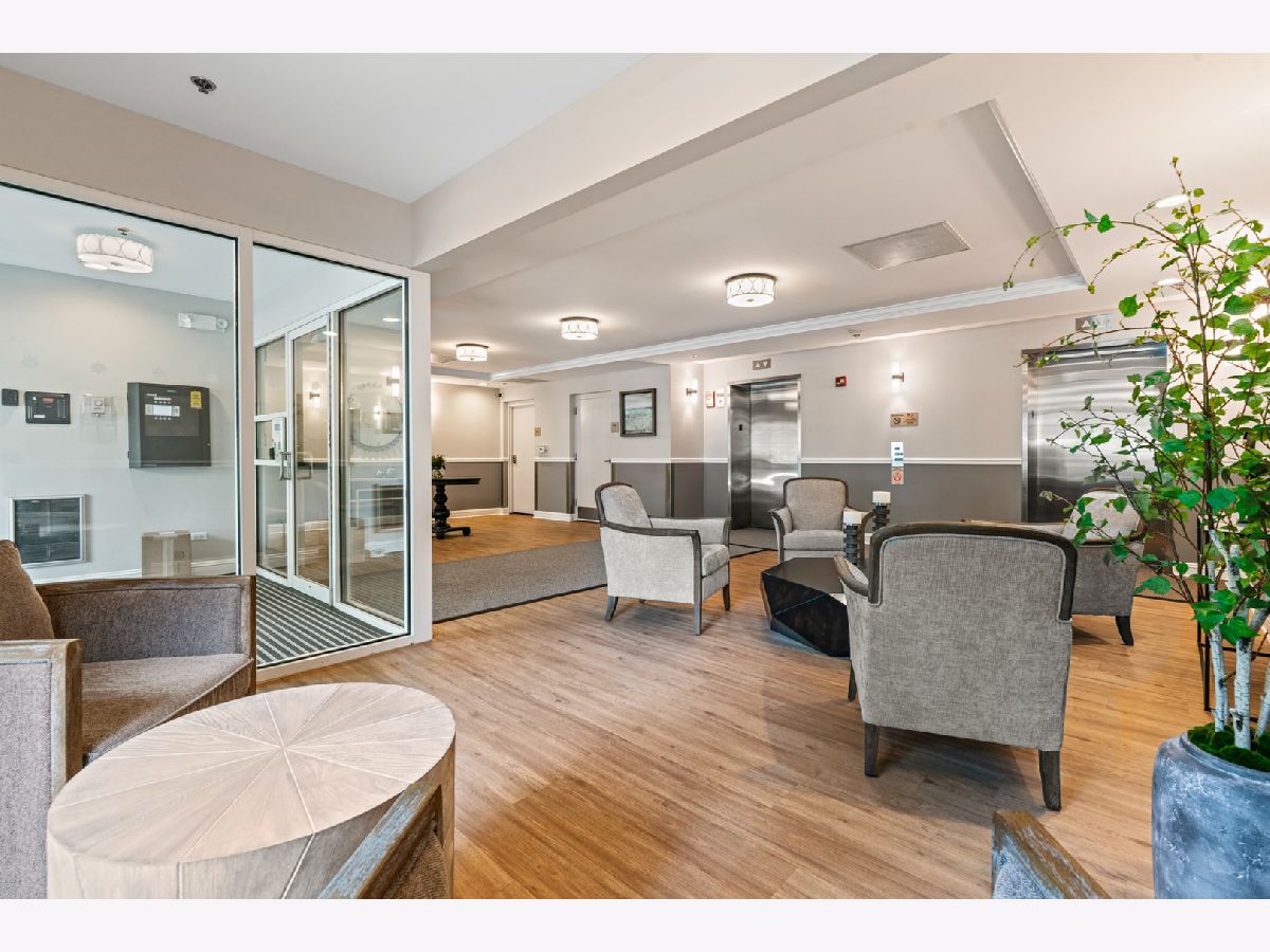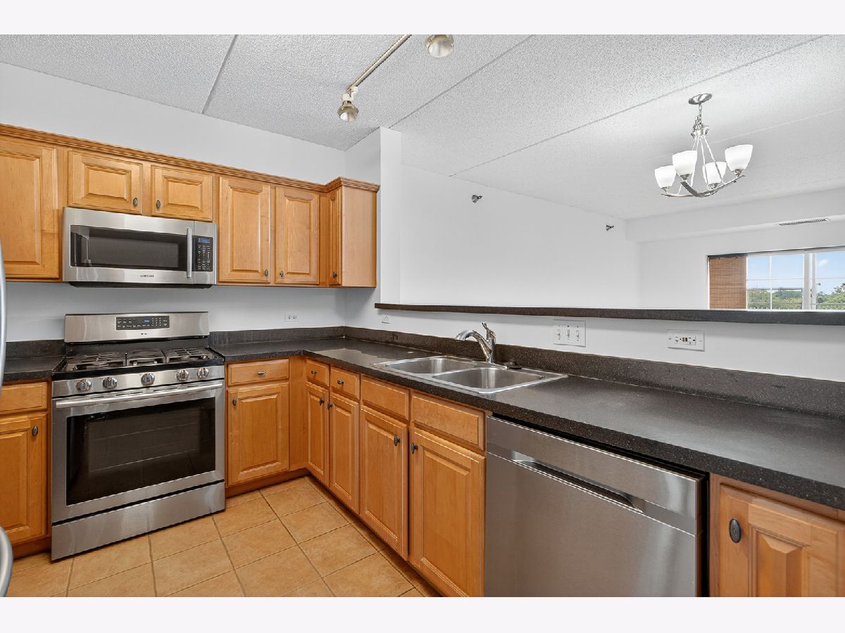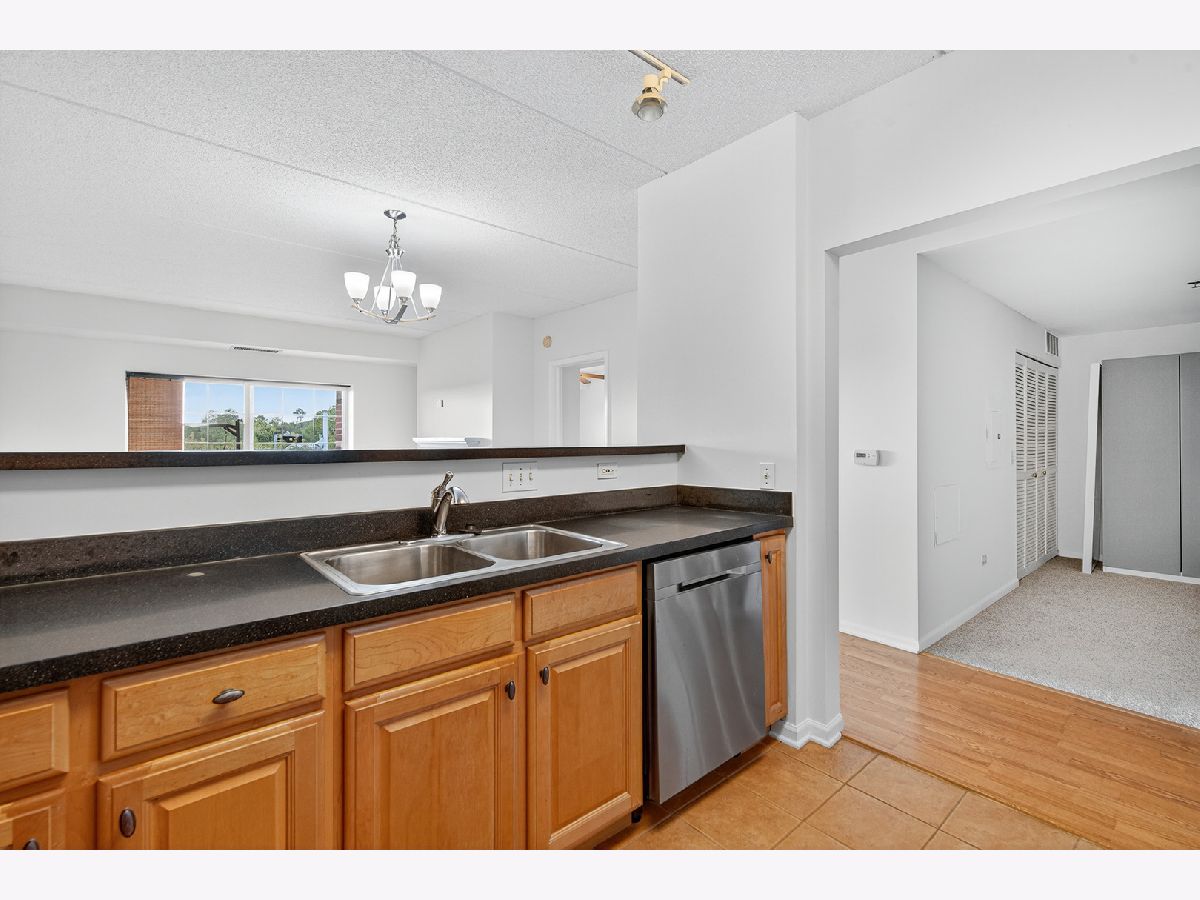 Welcome to The Groves of Palatine! This spacious 1 bed + den, 1.5 bath condo has just been freshly painted and has brand new carpet! Situated on the fourth floor with beautiful west-facing views perched just above the treetops allowing for added sunlight to pour in. The open-concept kitchen features stainless steel appliances, Corian countertops, and abundant cabinet space, flowing into a bright living and dining area with a cozy fireplace. The generous bedroom offers two closets and a spa-like en-suite bath with a jacuzzi tub. A versatile den includes in-unit laundry and is perfect for a home office or guest space. Enjoy beautiful sunsets from your private balcony. Additional highlights include a heated garage space, extra storage locker, and tons of exterior visitor parking. Located in a well-maintained, secure elevator building just blocks from the Metra, Jewel, and all of downtown Palatine's restaurants, bars, and shopping. Enjoy easy access to Deer Grove Forest Preserve and Riemer Reservoir Park for recreation and nature.