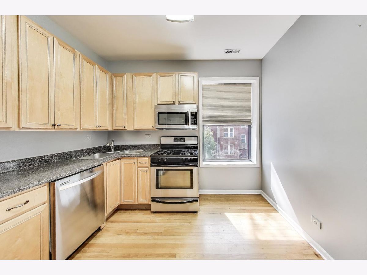 Spacious corner condo in a vintage Lincoln Square building featuring a large living room with a sunroom, an eat-in kitchen, and a back deck perfect for grilling. It offers in-unit laundry, central A/C, and hardwood floors throughout. The kitchen is a great size with a pantry and stainless steel appliances. Updates include: furnace 2022, washing machine 2024, hot water heater 2025. Building improvements: new roof, tuckpointing and back deck work. The building provides additional storage, including bike storage, and is pet-friendly. Easy Street parking. Enjoy everything Lincoln Square has to offer, from fantastic restaurants and shops to the Old Town School of Music, Welles Park, and the nearby Brown Line stations at Rockwell or Western, all within walking distance!
