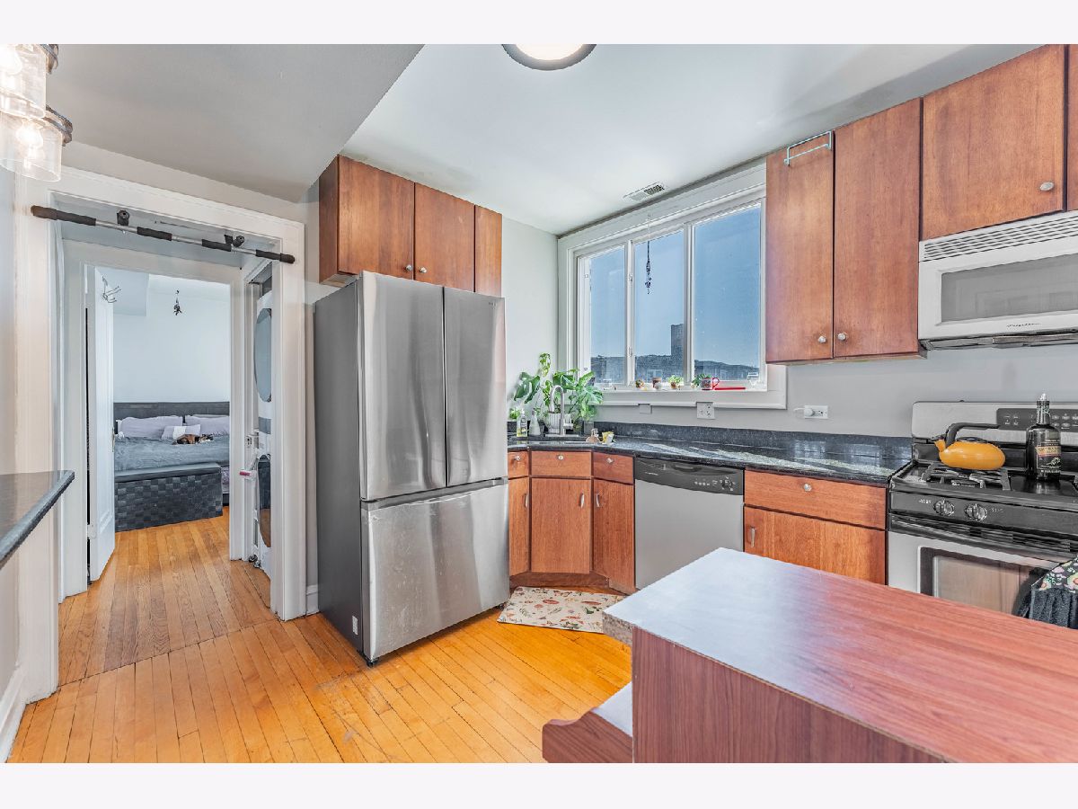Welcome home to this sun-filled, move-in-ready third-floor condo where comfort meets convenience. Lot of natural light flows through the large windows. The updated kitchen offers granite countertops, a generous peninsula with breakfast bar, and a new refrigerator (2024). In-unit laundry with a new washer and dryer (2024) adds everyday ease, while the refreshed bathroom features a new vanity and sink. With ample street parking and easy access to I-90/94, public transit, and neighborhood favorites like Casa Cactus and Plant Shop Chicago, this location makes city living simple and enjoyable. CASH ONLY. Being sold as-is.