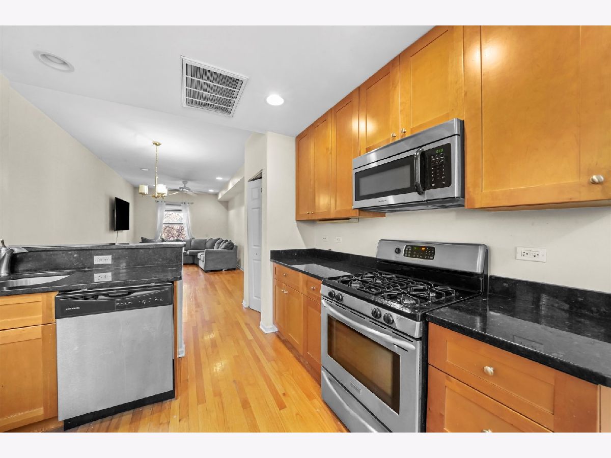 Bright and well-maintained 1-bedroom, 1-bath condo in desirable Albany Park. This condo features and offers an open layout highlighted by hardwood floors throughout. The kitchen features stainless steel appliances, granite countertops, maple cabinetry, that's perfectly positioned to flow into the living and dining space with ample storage. The large sized bedroom faces a quiet, tree-lined street and includes hardwood flooring and a large closet. The bathroom features a granite vanity, and convenient dual access from both the bedroom and hallway. Additional highlights include plenty of natural light, in-unit washer and dryer, a spacious rear deck ideal for relaxing or entertaining, and a private storage locker. Well cared for unit/appliances sold as-is.