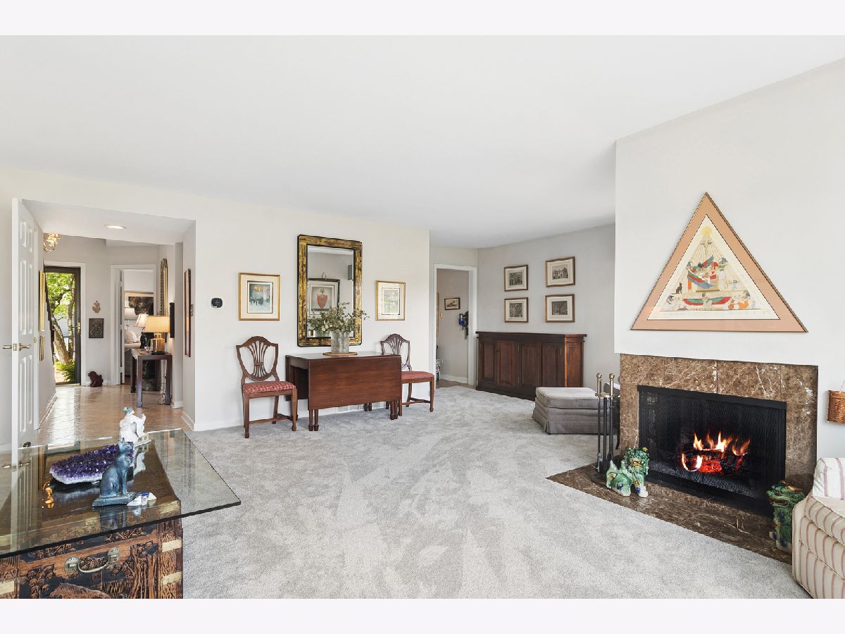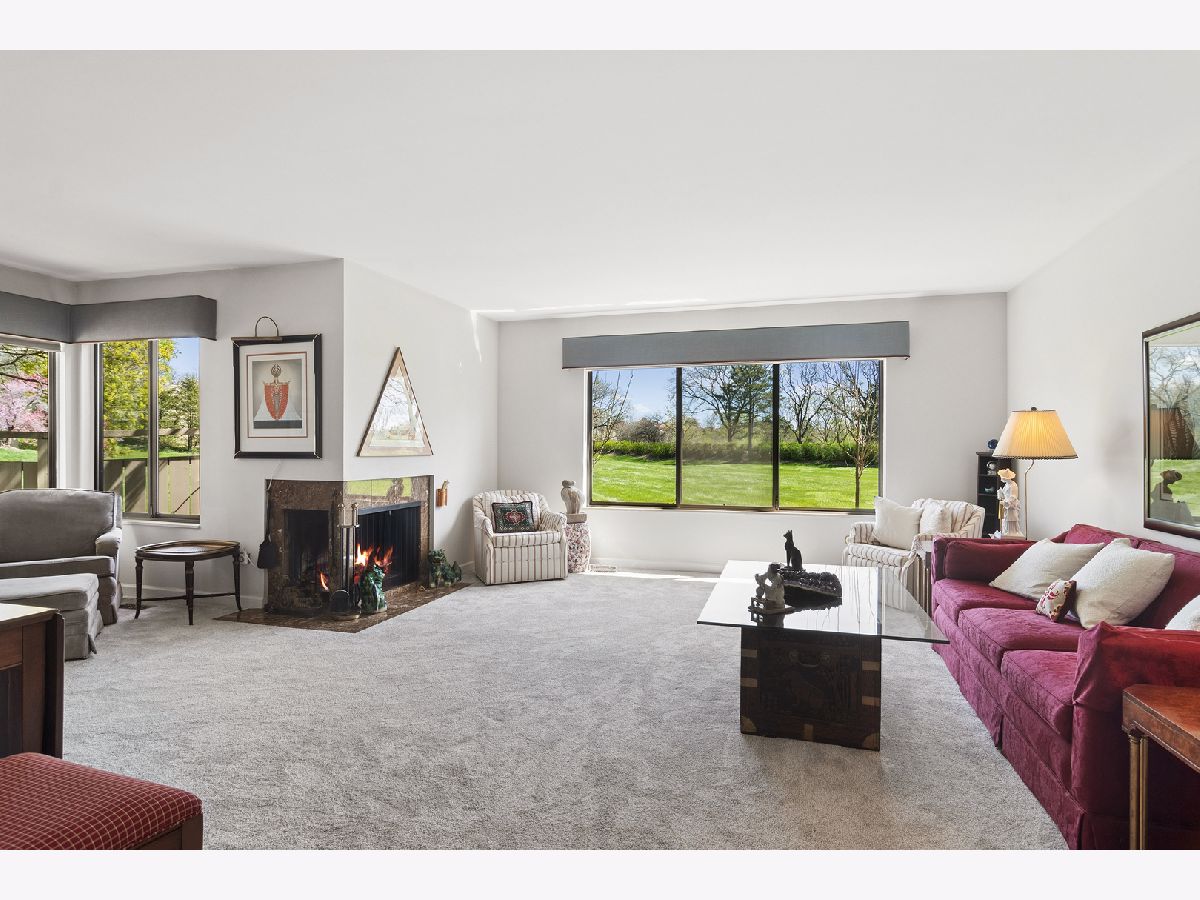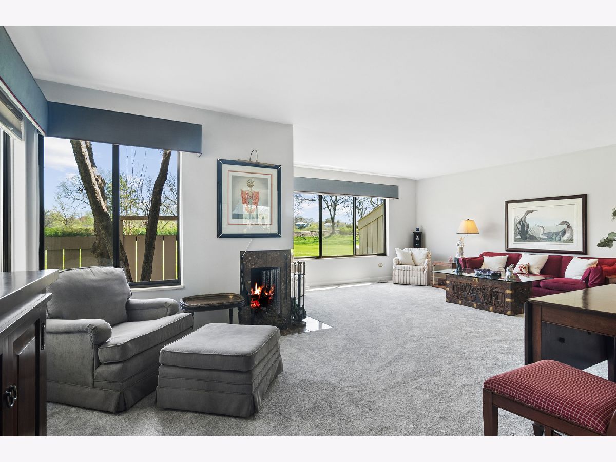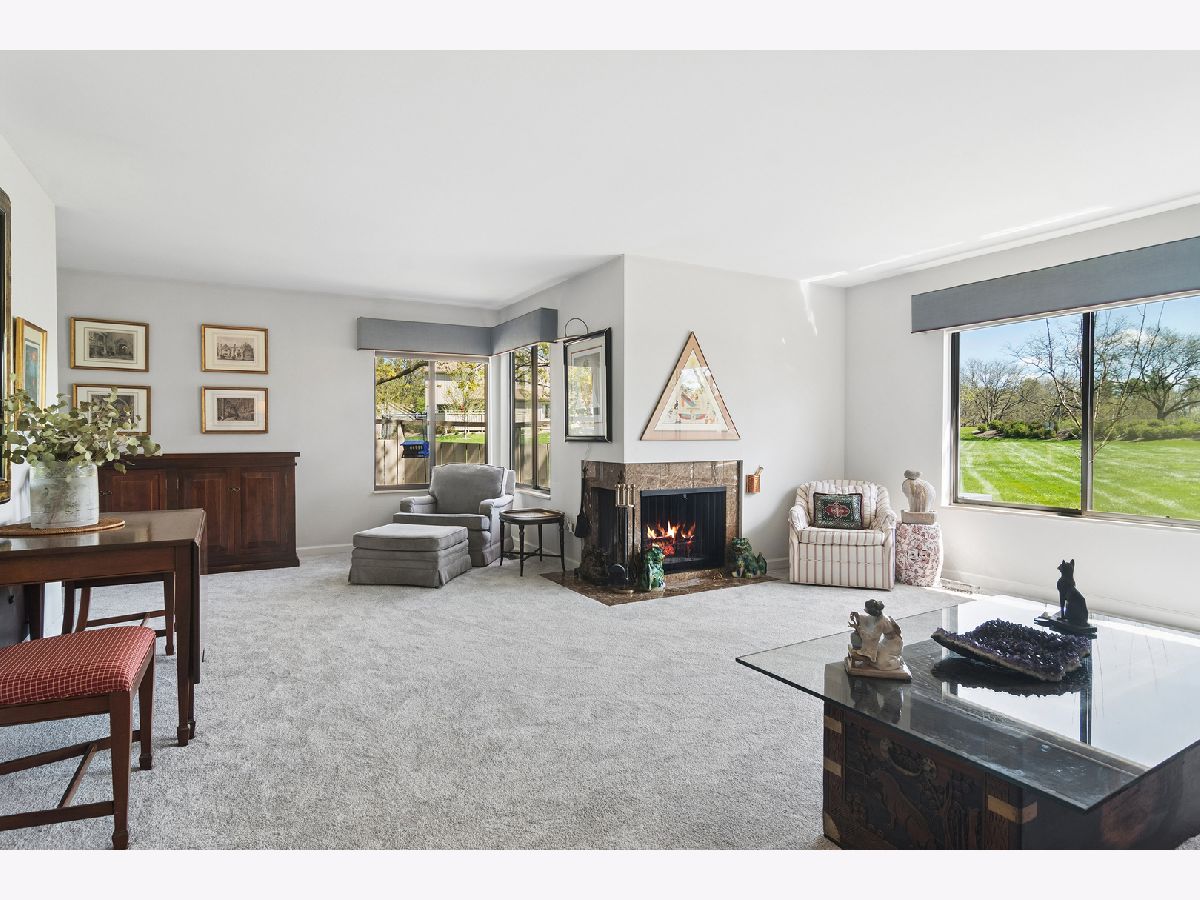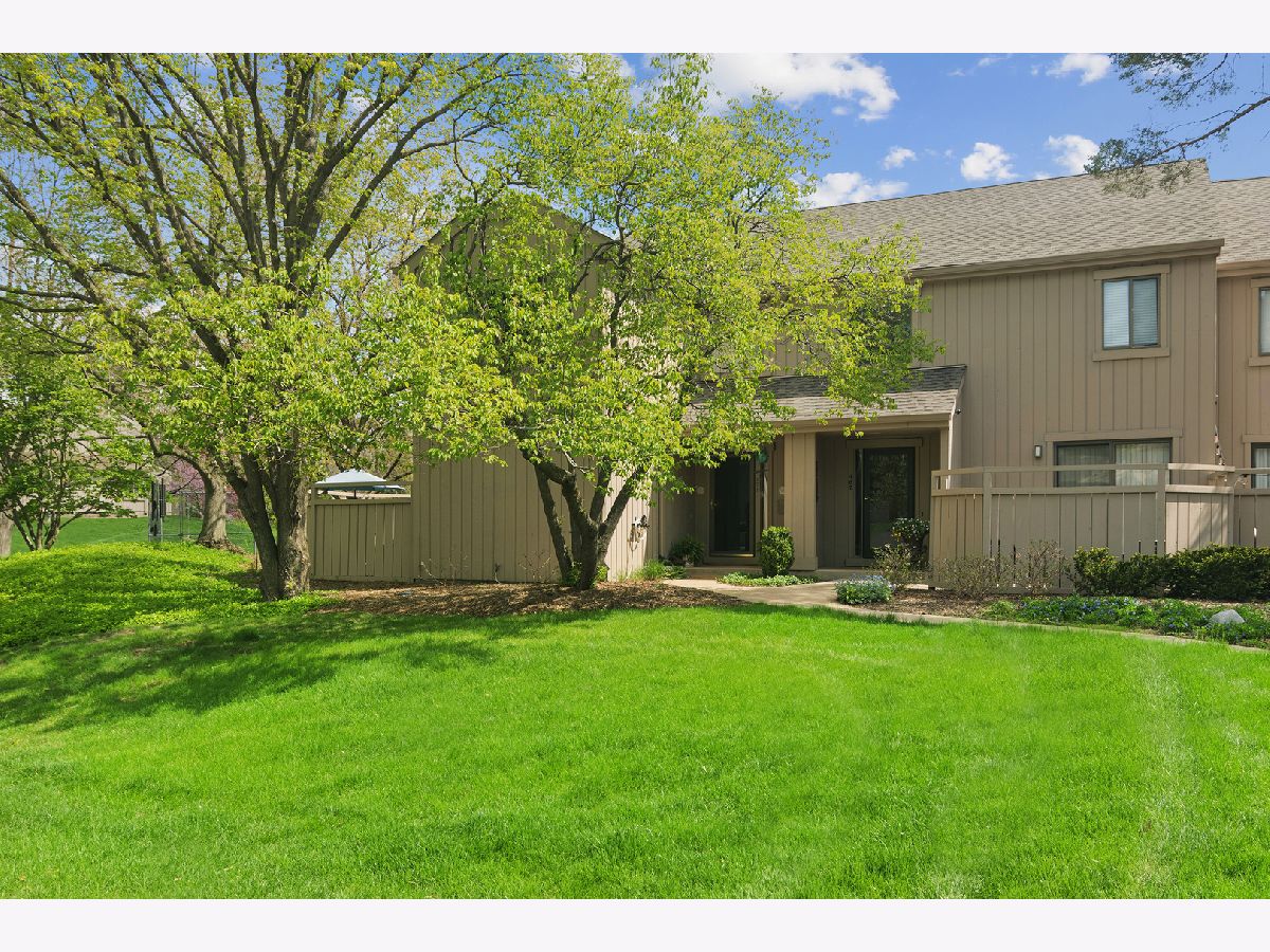 Bright, sun-filled end-unit townhouse that feels like a single-family home, backing to open space and featuring a spacious private paver courtyard. Enjoy expansive views of the lush grounds from the large living room with fireplace and the adjacent formal dining room. The beautifully updated kitchen showcases Corian counters, rich cherry cabinetry with abundant storage, and upgraded appliances built for gourmet cooking. A cozy den opens directly to the courtyard-perfect for morning coffee or listening to the birds. Upstairs offers a generous primary suite, a second bedroom, and a full bath. The English basement includes a large family room, a second fireplace, and another full bath, providing flexible living space. Impeccably maintained and recently refreshed with new paint and brand-new carpet. Conveniently located near the main gate and clubhouse for easy access-no long drives through the neighborhood. Live every day like a vacation in this amenity-rich, lifestyle-focused community with a private 100-acre lake and sandy beach, walking trails, resident kayaks and sailboats, indoor and outdoor pools, pickleball and tennis courts, a newly renovated clubhouse, fitness center, year-round social events, and 24-hour staffed gate security. Rare opportunity for a ranch-style home in this location, condition, and with a spacious garage and driveway-don't miss your chance to experience the Lake Barrington Shores lifestyle.