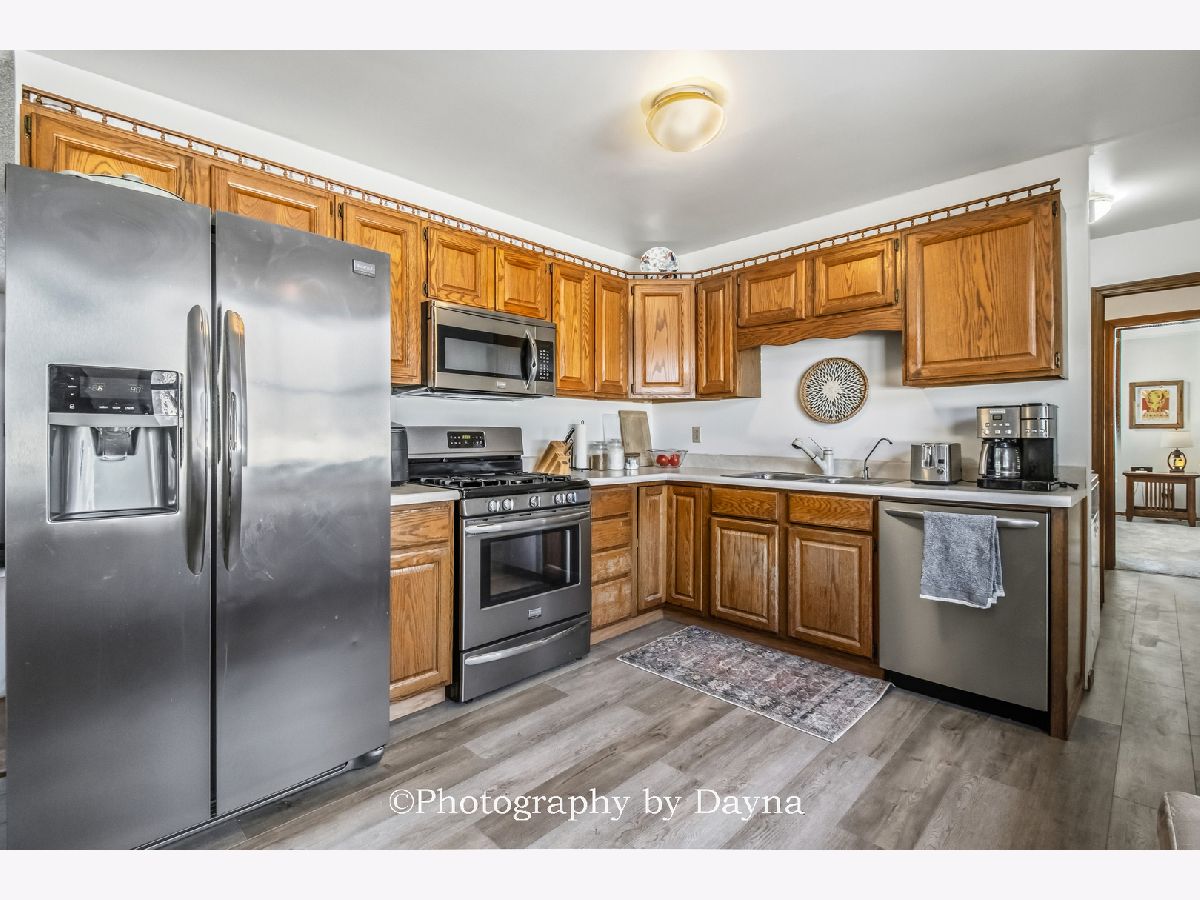 This well-maintained 3-bedroom, 1.5-bath residence is located in Bourbonnais offers a functional layout with comfortable living spaces. The family room features a cozy woodburning fireplace and carpeted flooring, while hardwood floors add warmth and character throughout the remaining living areas and 2 bedrooms. The kitchen includes new luxury vinyl plank flooring. Enjoy outdoor living on the covered patio, ideal for relaxing or entertaining. A two-car garage offers ample parking and storage. Conveniently located near parks, shopping, and local amenities.