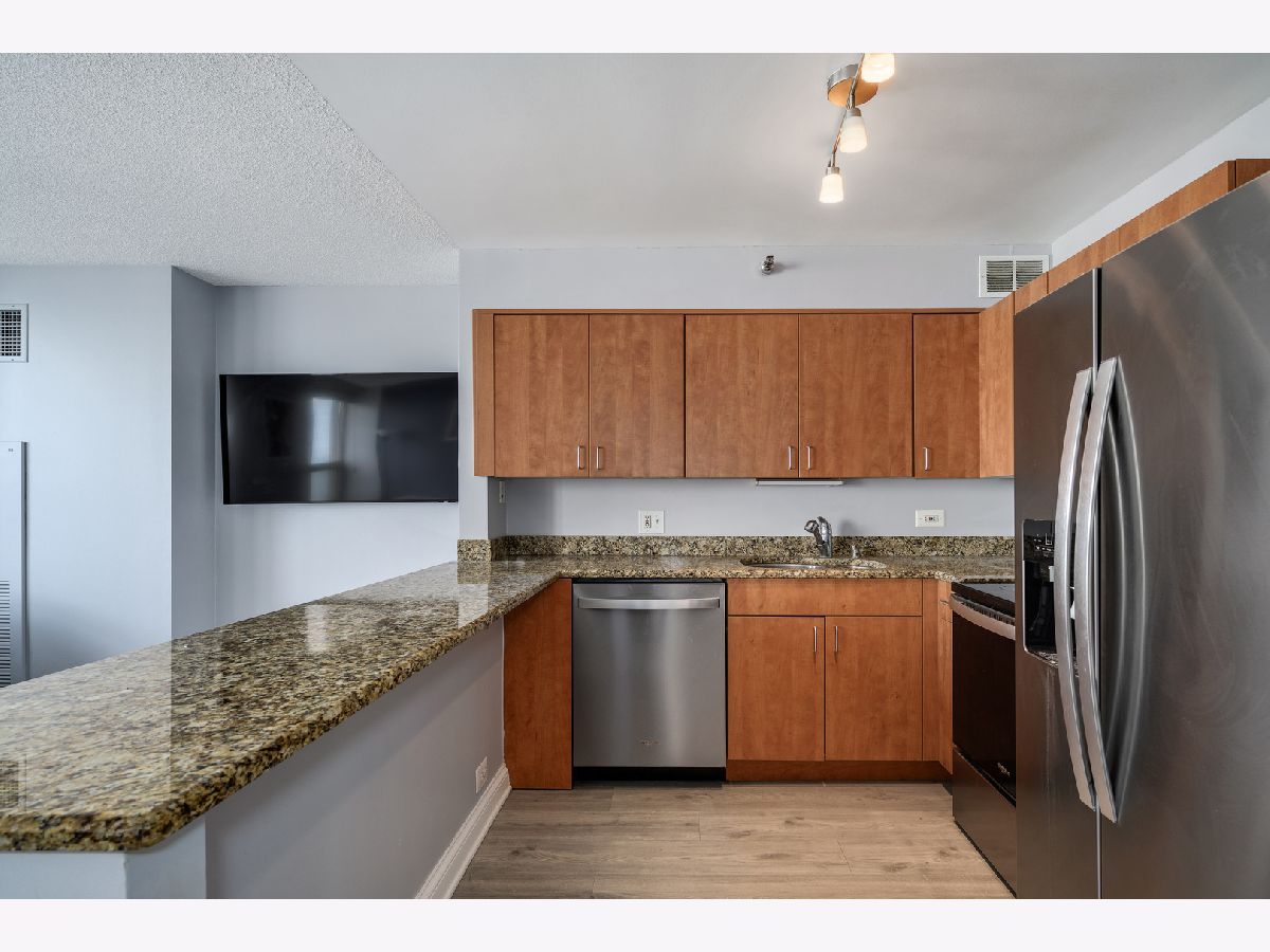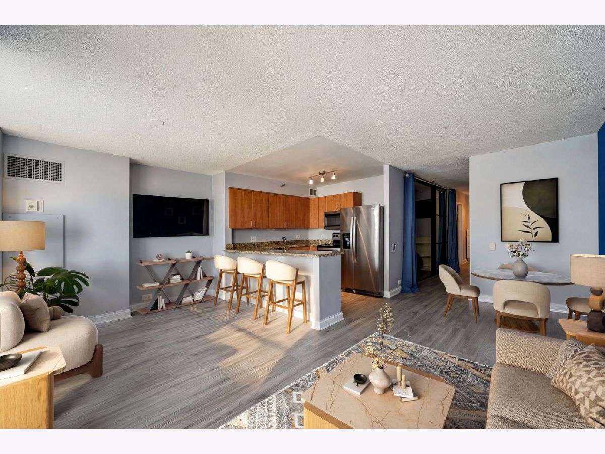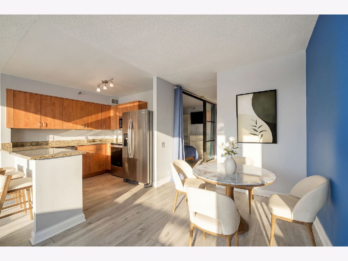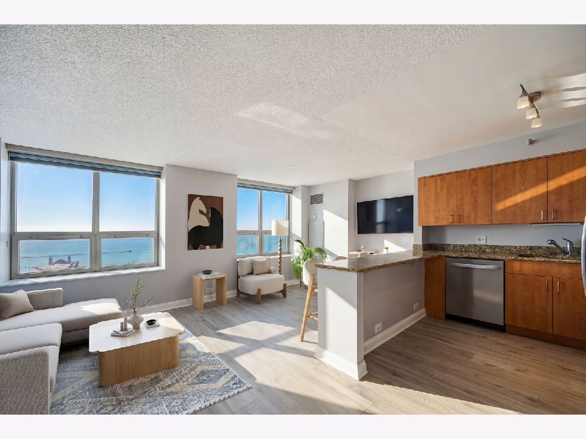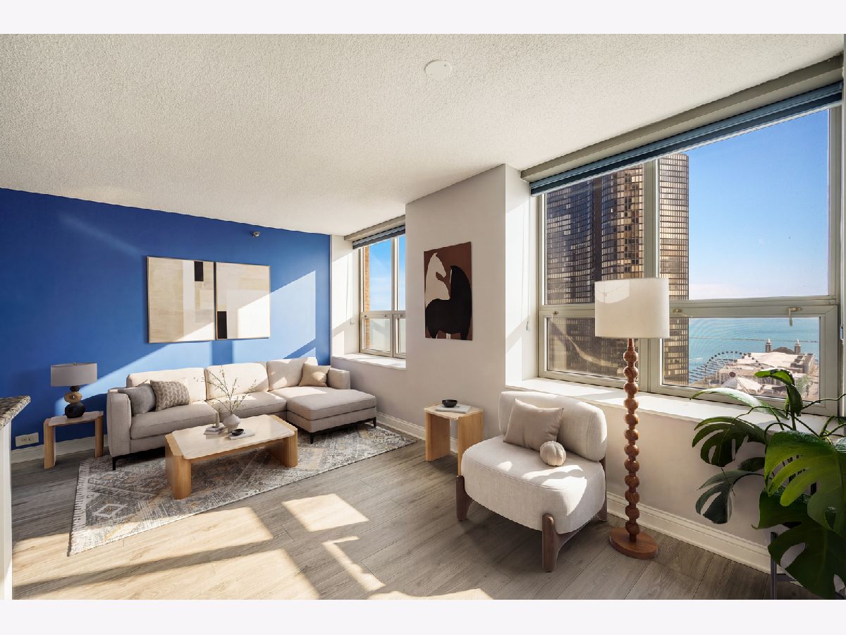 WAKE UP TO BREATHTAKING LAKE AND NAVY PIER VIEWS FROM THIS BEAUTIFULLY UPDATED EAST-FACING JUNIOR 1-BEDROOM IN THE HEART OF STREETERVILLE. Includes a rare same-floor PRIVATE storage closet, generously sized to accommodate seasonal items, luggage, and bulk storage, offering exceptional convenience without leaving the floor. Perfectly positioned in one of Chicago's most sought-after lakefront neighborhoods, this bright, thoughtfully designed home is filled with natural light and showcases iconic skyline and waterfront views from the moment you walk in. The kitchen offers a clean, modern look with granite countertops, stainless steel appliances, and a functional breakfast bar that opens seamlessly into the main living area, creating an ideal layout for both everyday living and entertaining. Floor-to-ceiling windows frame unobstructed views of Navy Pier, offering a front-row seat to the summer fireworks and the lakefront energy. Updated flooring runs throughout the home, adding a fresh, cohesive feel and elevating the overall finish. The bedroom has been fully enclosed to create a true, private retreat while still allowing natural light to flow through. Professionally organized closets line the hallway and bedroom area, maximizing storage and functionality while maintaining a clean, streamlined look. The bathroom features updated tile and timeless finishes, complemented by a convenient linen closet and in-unit washer and dryer for everyday ease. This full-amenity pet friendly building offers 24-hour door staff, a 10,000 sq ft fitness center with state-of-the-art equipment, locker rooms, an indoor lap pool, jacuzzi, steam room, and sauna, along with a beautifully designed sundeck with grills and lounge areas. Unbeatable Streeterville location just steps from Bennett Park, the lakefront, Michigan Avenue, Northwestern, and some of Chicago's best dining and shopping. Deeded garage parking space #123 included.