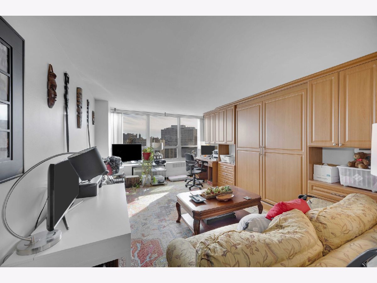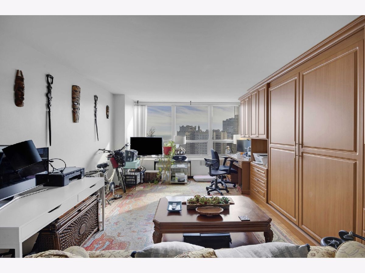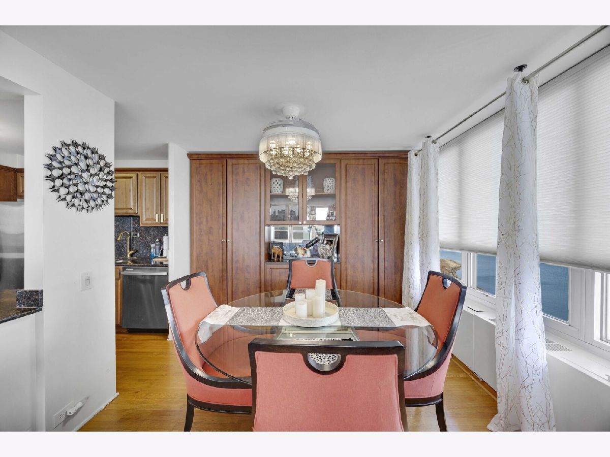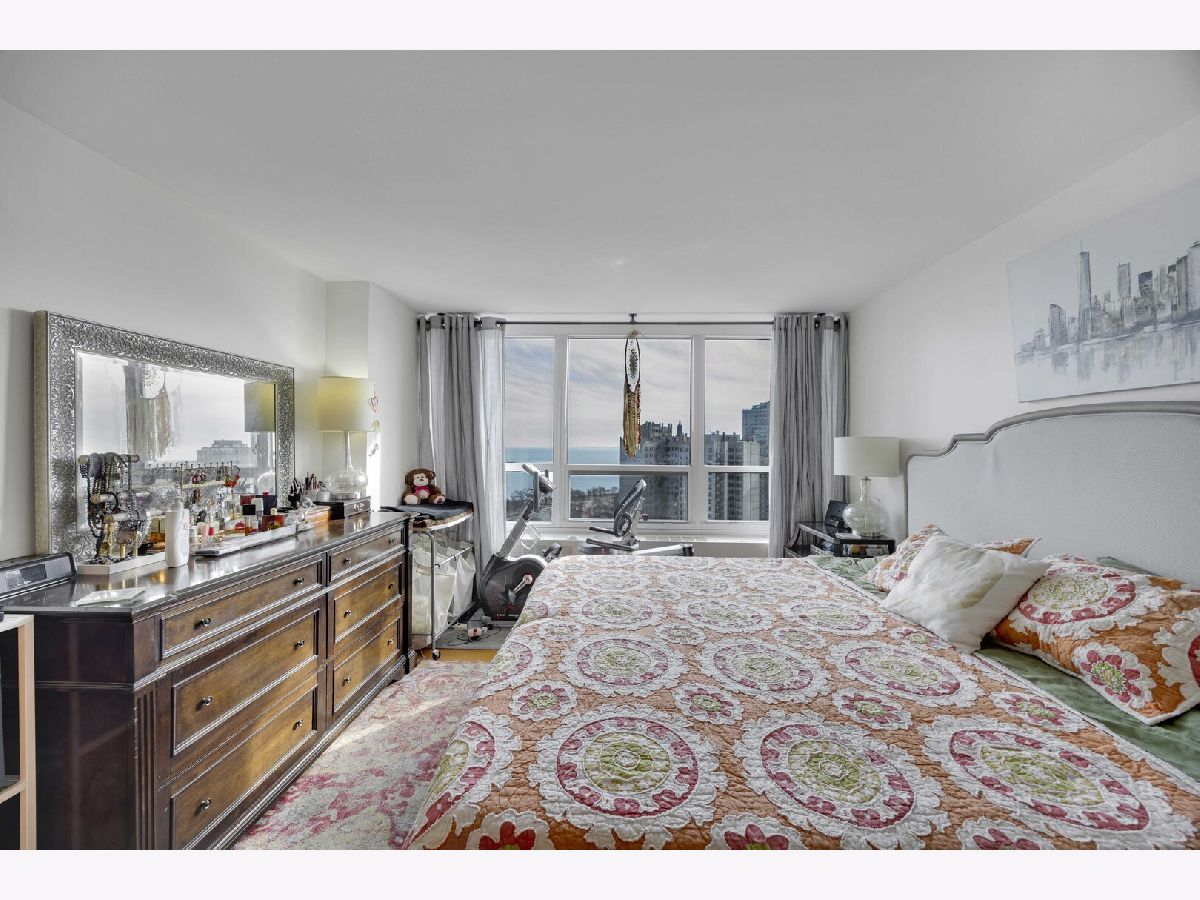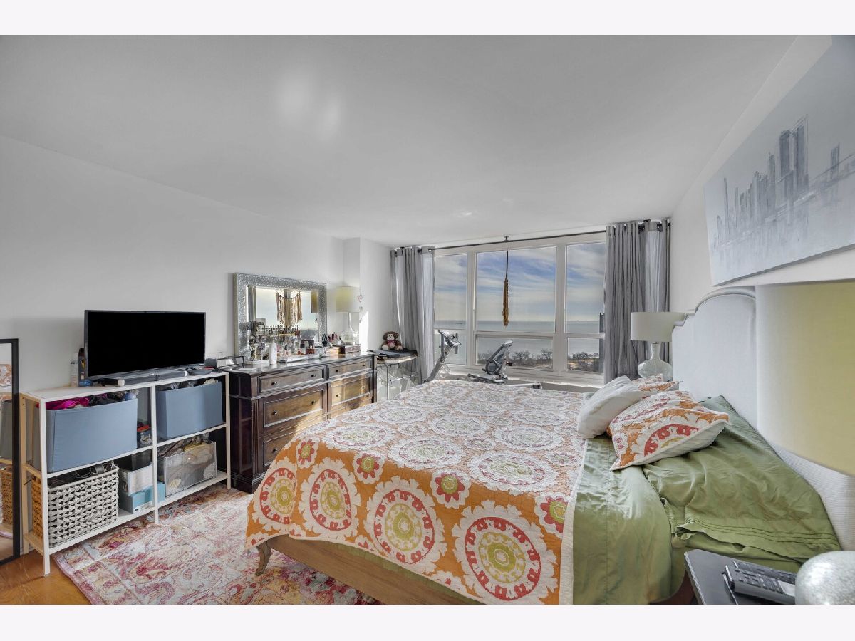 Wake up to a beautiful sunrise with views of the Lake and stunning city views. The spacious open living room and dining room is great for entertaining, quiet enjoyment, and relaxing as you watch the sun set. There are hardwood floors throughout with ceramic tiled bathroom floors. The kitchen displays granite countertops and stainless steel appliances. The huge master bedroom suite is complete with a walk-in closet and a private bathroom. It also includes a wall of custom cabinet and a modern MURPHEY BED. THIS CONDO INCLUDES ONE INDOOR HEATED VALET PARKING SPACE. BRING YOUR CREATIVE TOUCH AND YOUR CREATIVE IDEAS. ** The building has great amenities... 24-hour doorman, on-site management/engineer, receiving room for mail and packages, free basic cable and internet, common laundry on the lower level, a roof-top deck, a health club that includes an indoor pool, sauna, jacuzzi, and exercise room, a free shuttle bus to local transportation hubs, neighborhood grocery stores and shopping areas. This unit is conveniently located near Chicago's lakefront, restaurants, metro station, museums, and the University of Chicago.