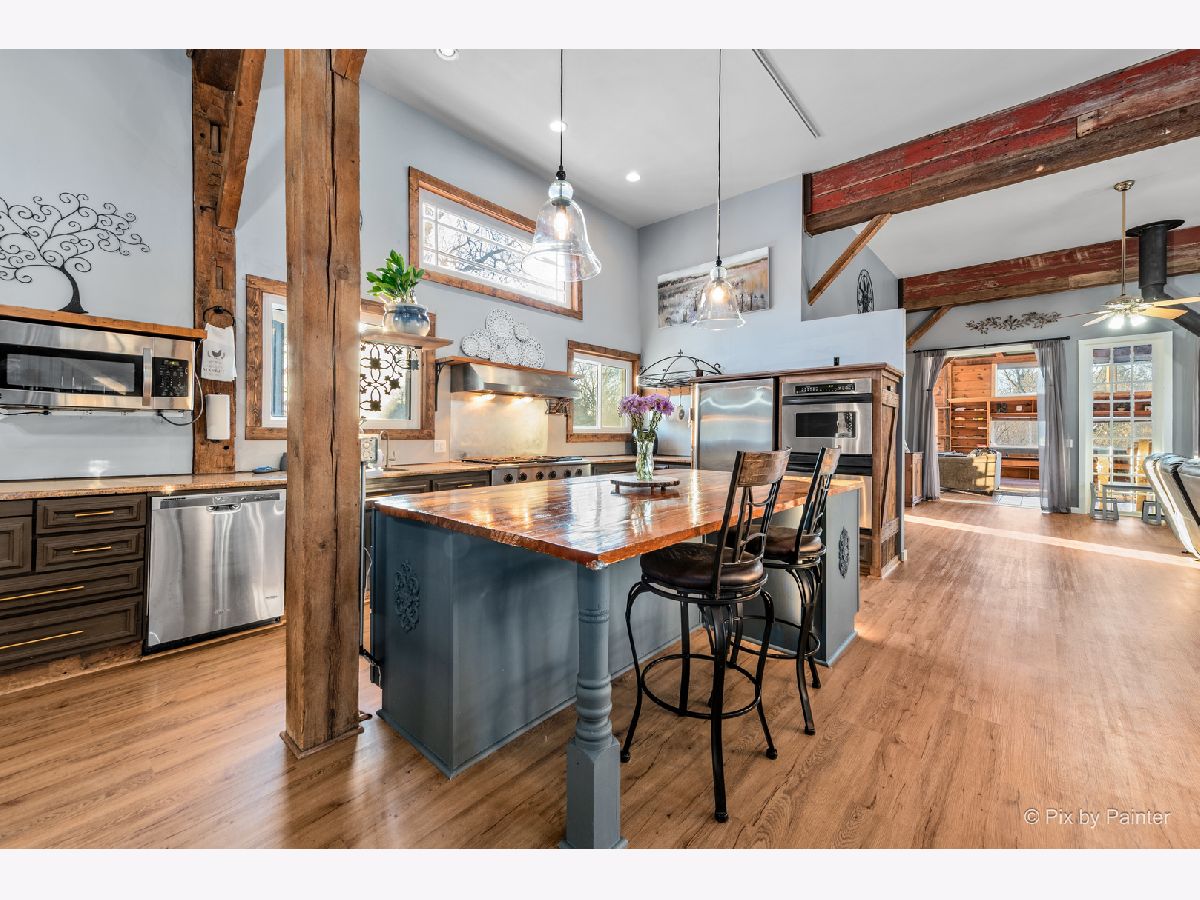 TRUE BARNDOMINIUM-REIMAGINED AND RENOVATED TO PERFECTION. Tired of cookie-cutter homes? This one-of-a-kind converted dairy barn is among the most distinctive and impressive residences in the Crystal Lake area. Blending rustic character with modern luxury, this home delivers an unforgettable living experience. The expansive main level showcases radiant heated floors throughout, a highly sought-after open floor plan, and dramatic cathedral ceilings. The gourmet kitchen is a true showpiece, featuring stainless steel commercial-grade appliances, granite countertops, a custom barnwood island, and bespoke cabinetry that honors the home's heritage while offering contemporary functionality. The main level also includes a spacious primary suite and a second bedroom, along with a versatile lofted area ideal for a kid playroom, or additional storage. Step outside to the gazebo with a gas fireplace-perfect for year-round entertaining. Designed for hosting on a grand scale, the 957 sq ft Great Room stuns with soaring 30+ foot ceilings and endless possibilities for gatherings and events. With approximately 3,400 sq ft of finished living space on the main level alone, there's room to grow-plus an additional 1,500 sq ft on the upper level of finished entertainment space. The walk-out lower level features a third bedroom and offers both interior and exterior access, making it ideal for an in-law suite, guest quarters, or private retreat. This is not just a home-it's a statement. Come experience this truly exceptional property for yourself.