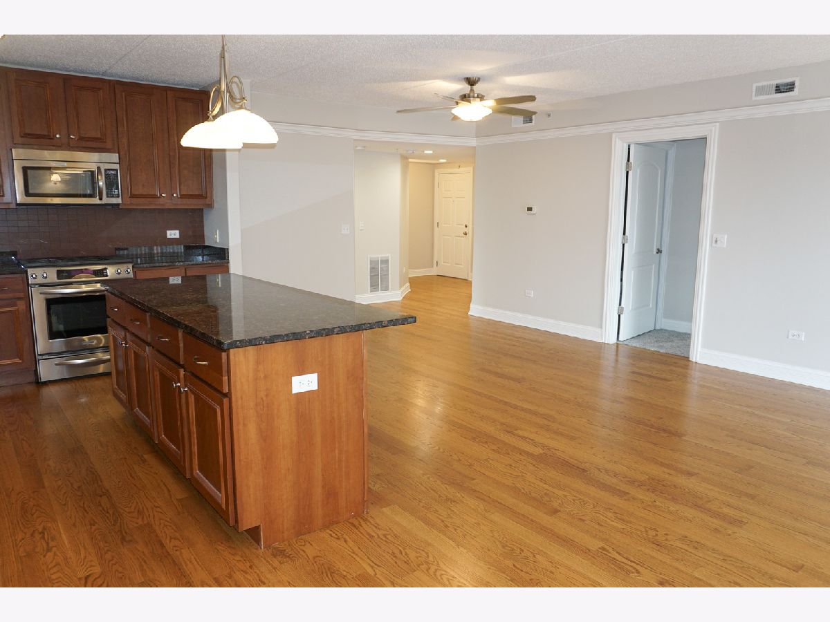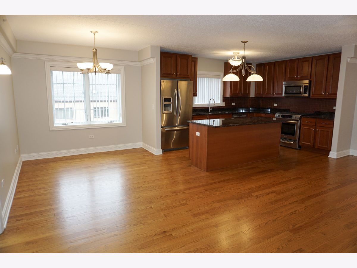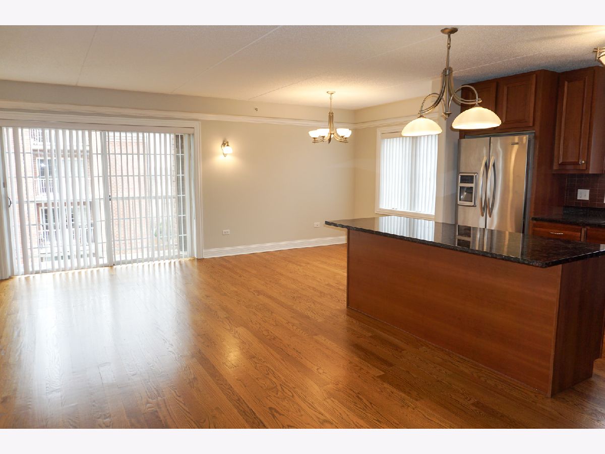 Step into this incredible corner unit in the highly sought-after Clock Tower Pointe of Harwood Heights complex! A welcoming foyer leads into a bright, open-concept layout designed for both comfort and functionality. The gourmet kitchen is a standout feature, boasting granite countertops, a stylish backsplash, all stainless steel appliances, and an oversized island-perfect for cooking, entertaining, or casual dining. The unit offers a dedicated dining area with a window, filling the space with natural light. Hardwood floors flow seamlessly throughout the living and dining areas, adding warmth and elegance. The spacious primary suite features a luxurious whirlpool tub, creating the perfect retreat at the end of the day. Flooded with natural light from its corner exposure, this impeccably maintained home also includes two private balconies. Additional highlights include an in-unit laundry room, indoor heated parking, and a private storage room for added convenience. Monthly assessments cover heat, cooking gas, internet, and premium television services, providing exceptional value. Located within the highly regarded Maine South School District, this pristine, move-in-ready condo offers the perfect blend of luxury, comfort, and convenience in one of Harwood Heights' premier buildings.